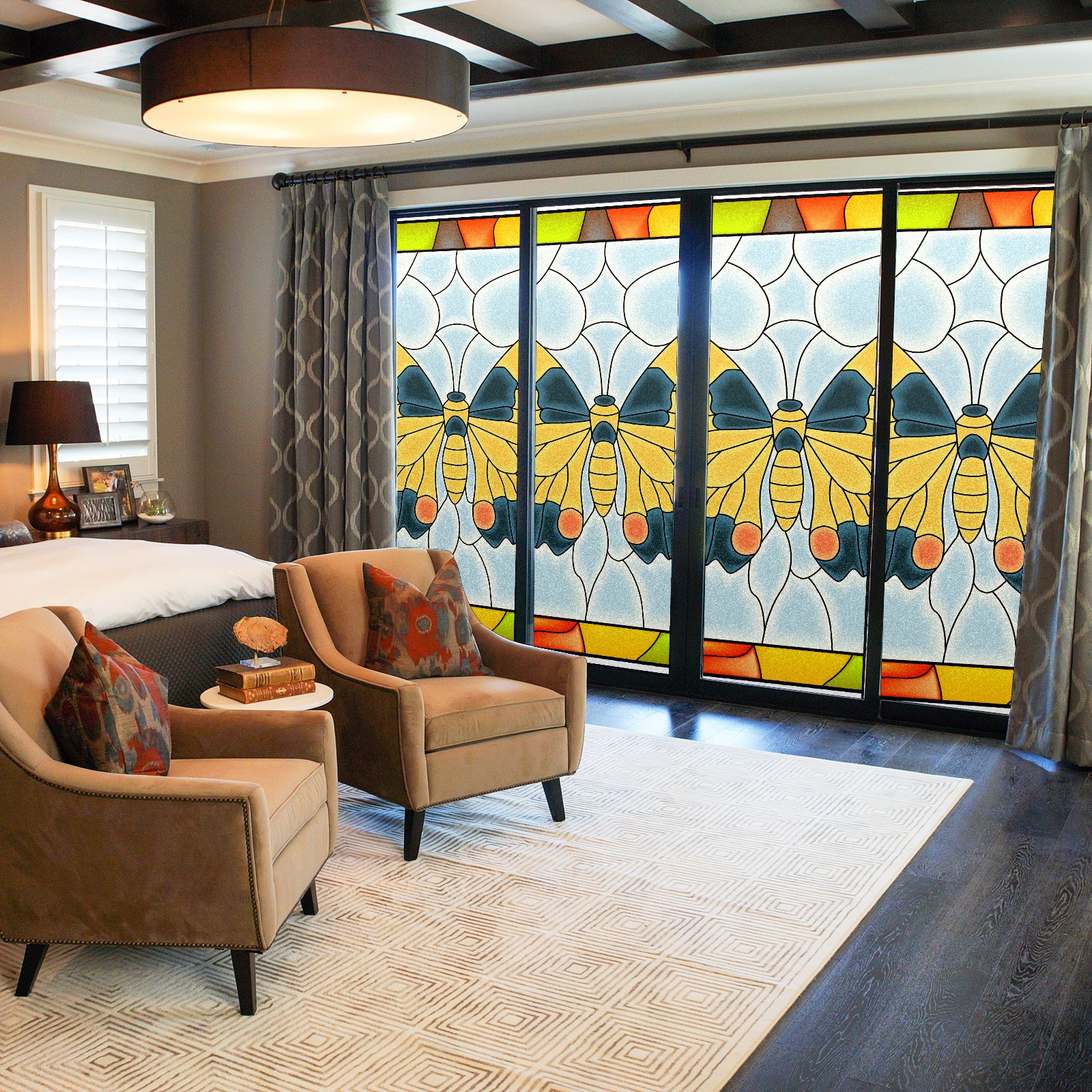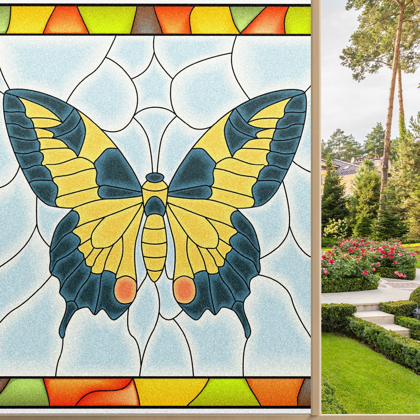 Static Cling Decorative Window Film Frosted Privacy Film Window Clings for Glass Windows No Glue Window Sticker for Bathroom Bedroom Office Colorful Butterfly Stained Glass