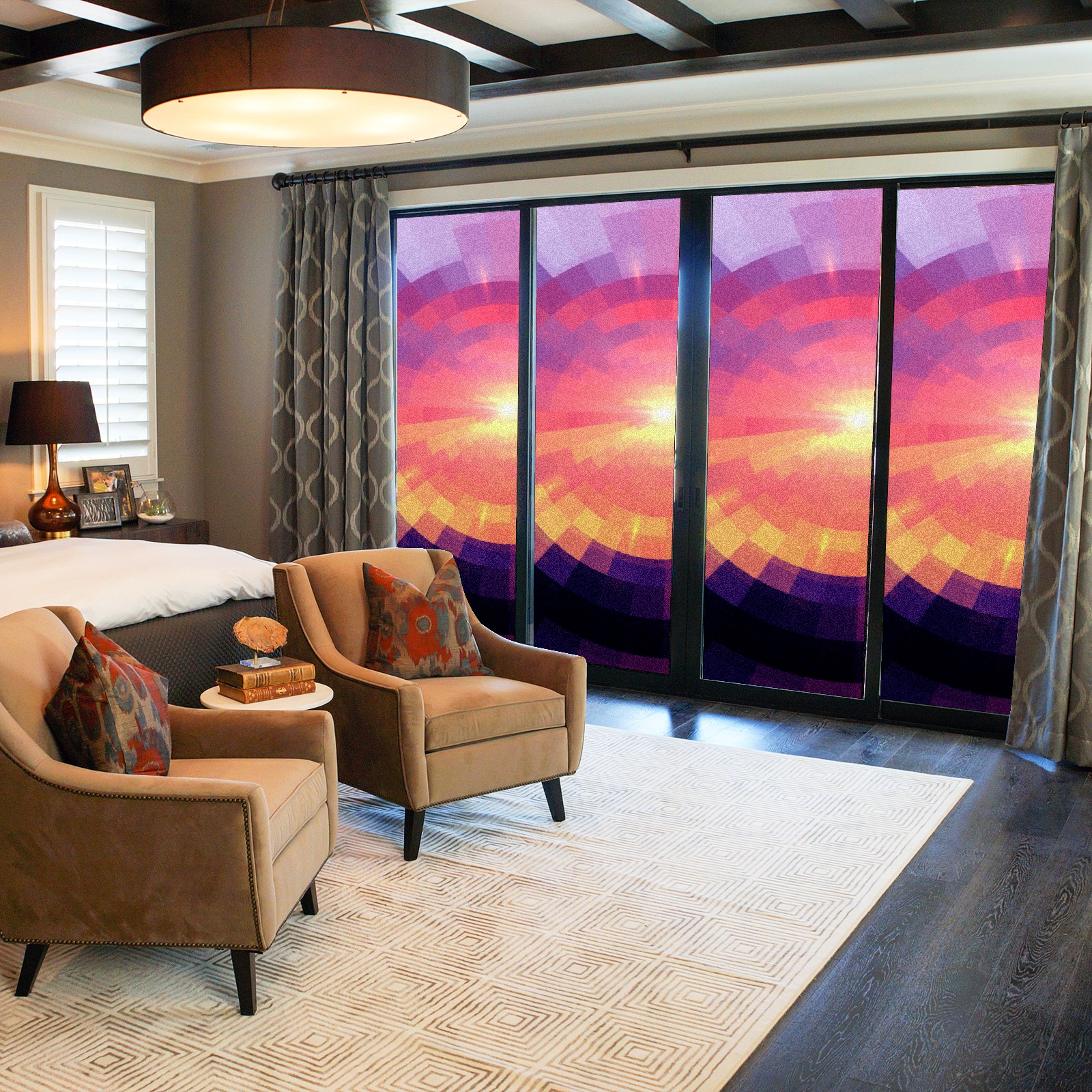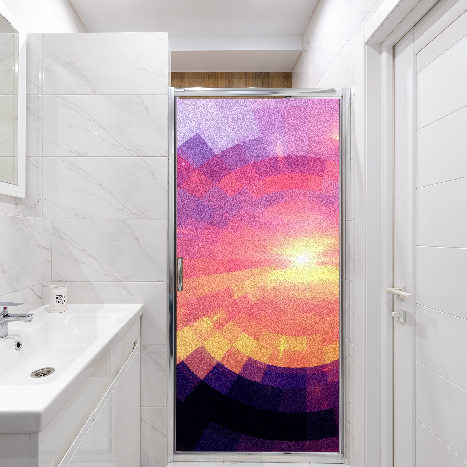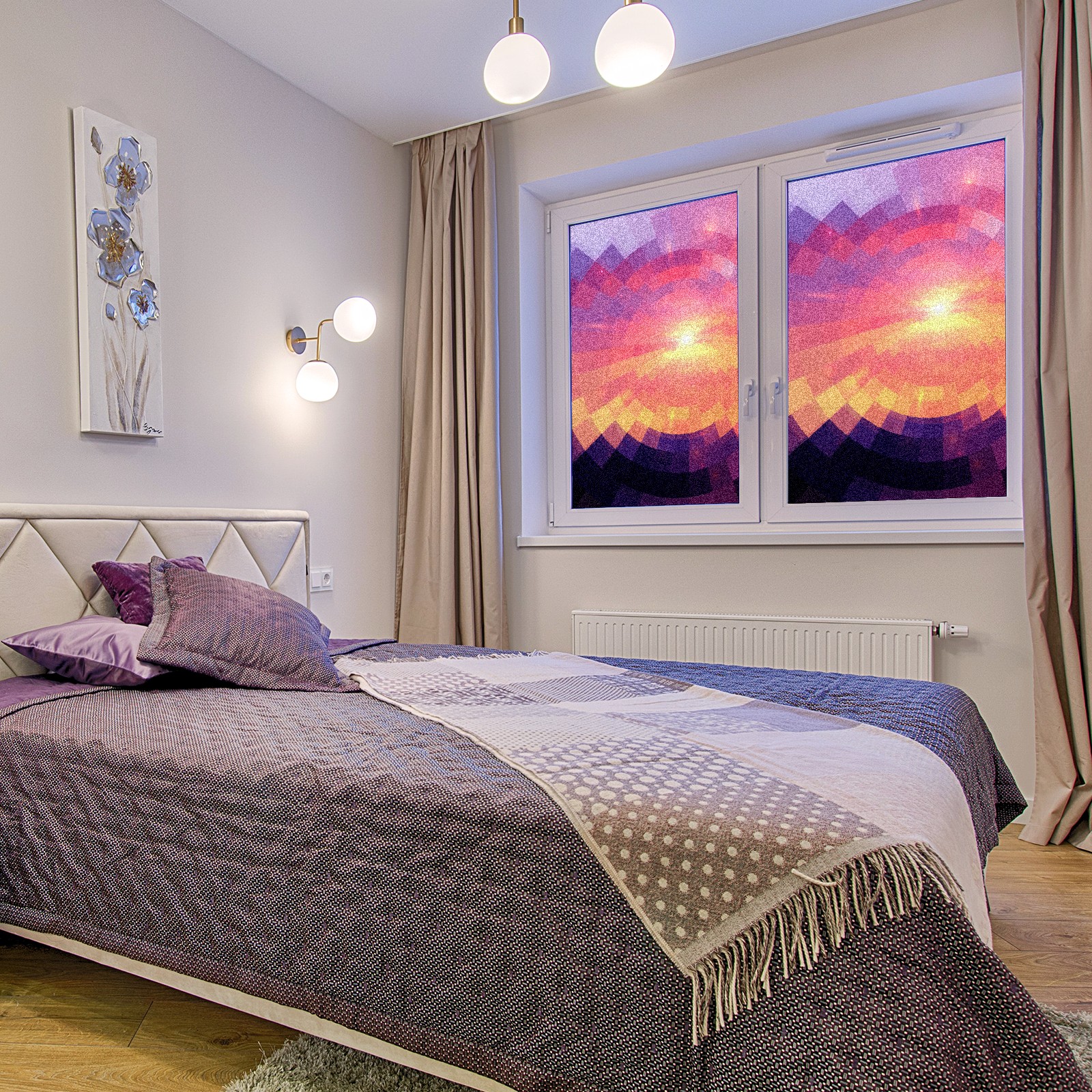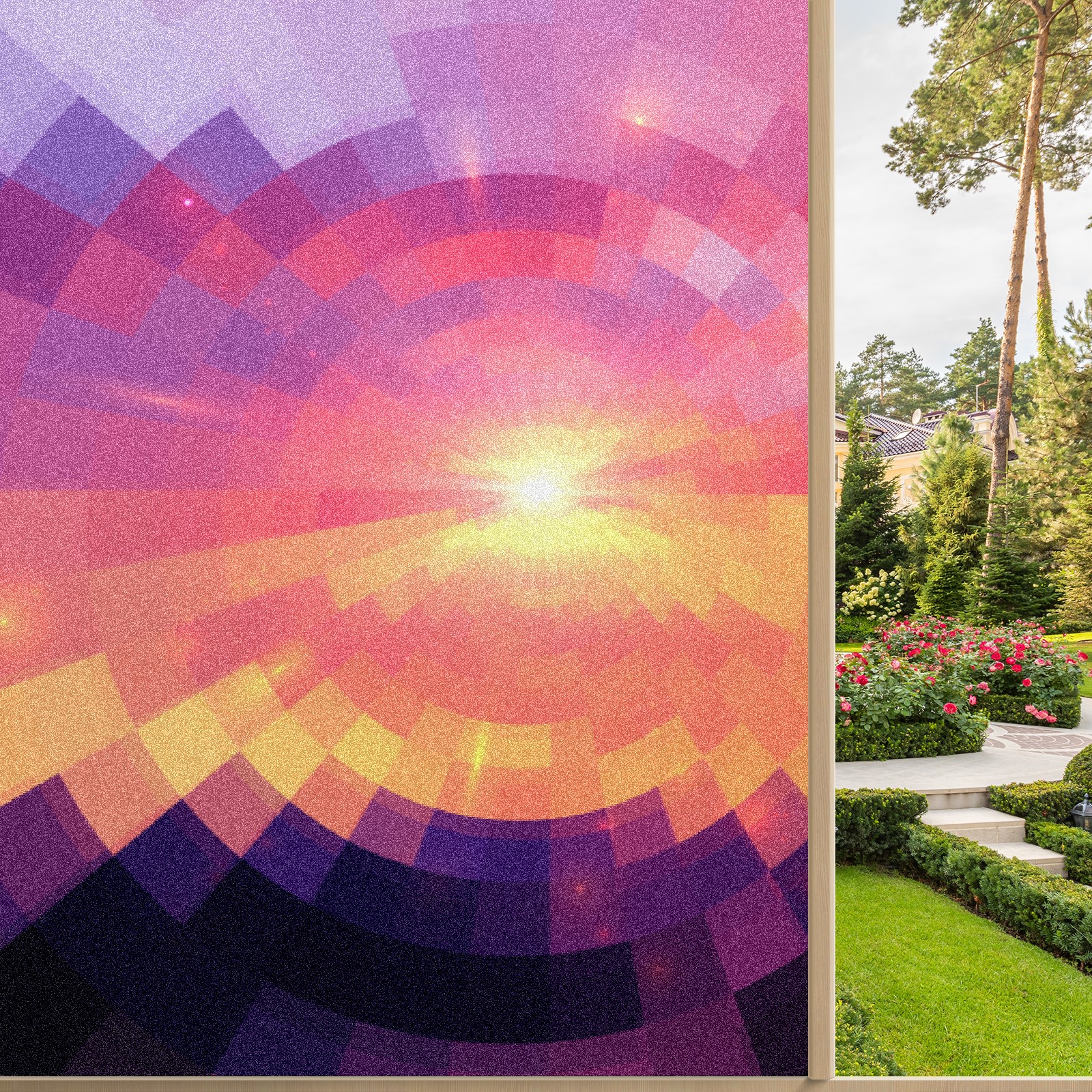 Static Cling Decorative Window Film Frosted Privacy Film Window Clings for Glass Windows No Glue Window Sticker for Bathroom Bedroom Office Sunset Stained Glass