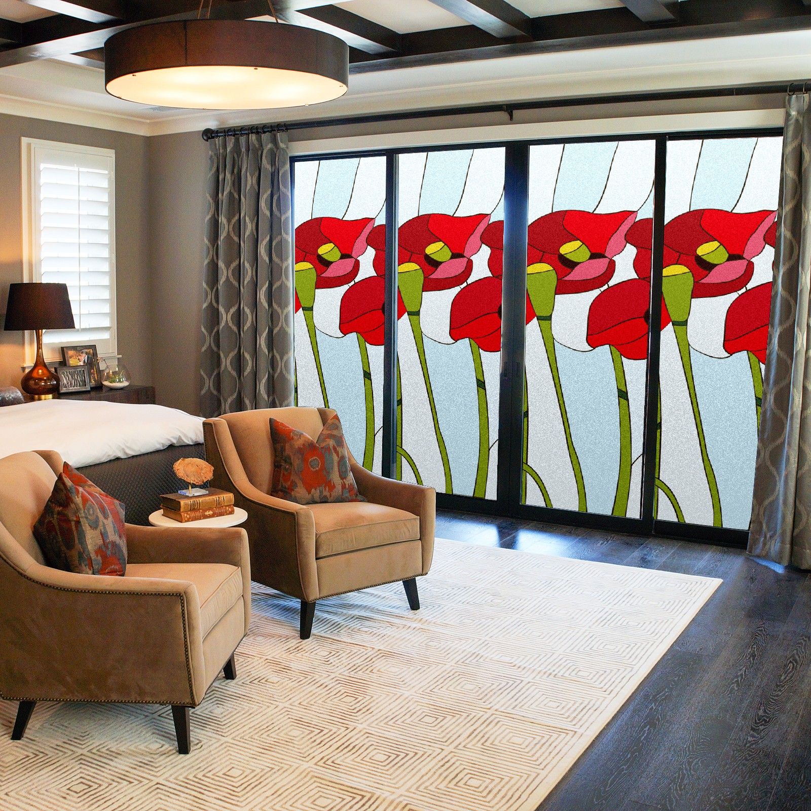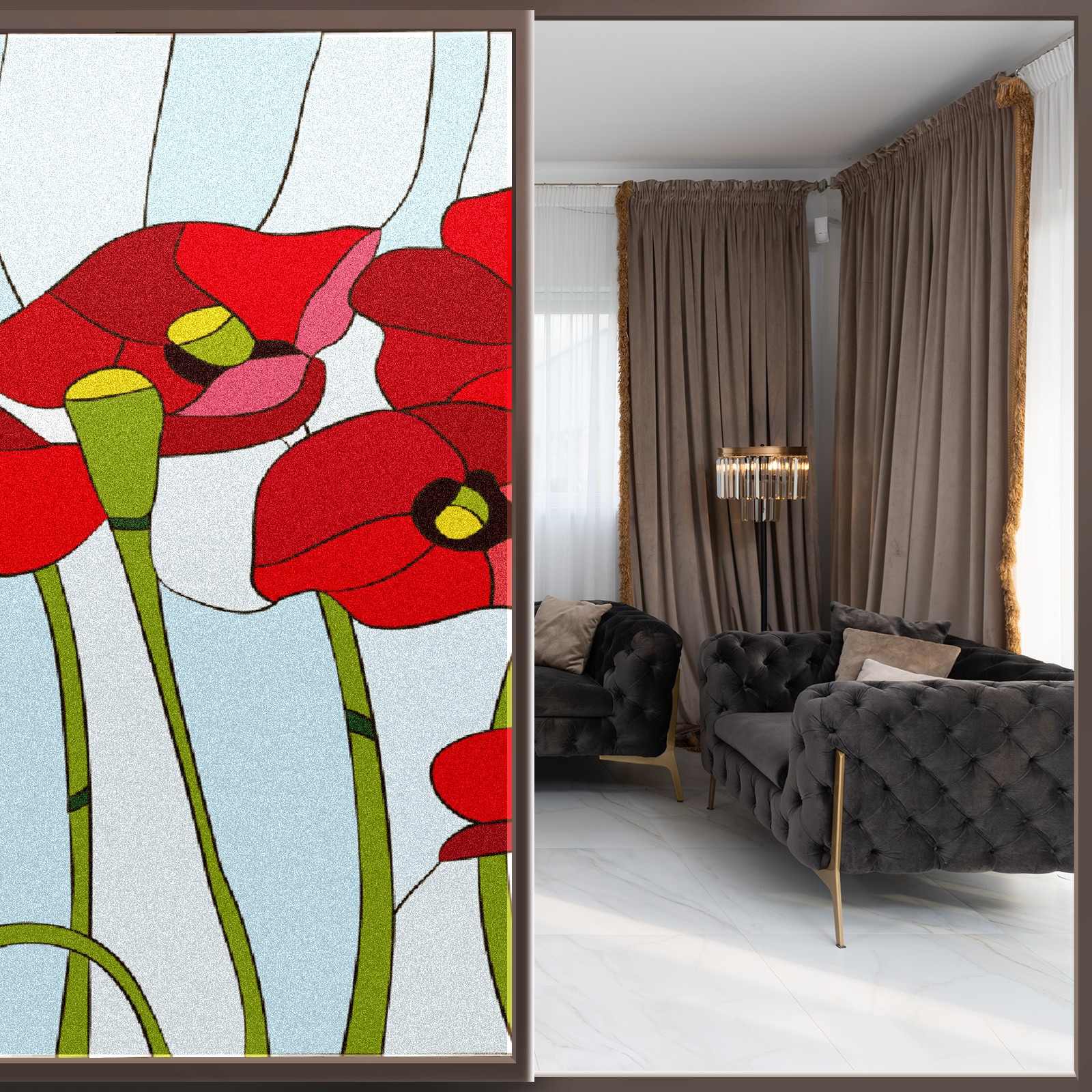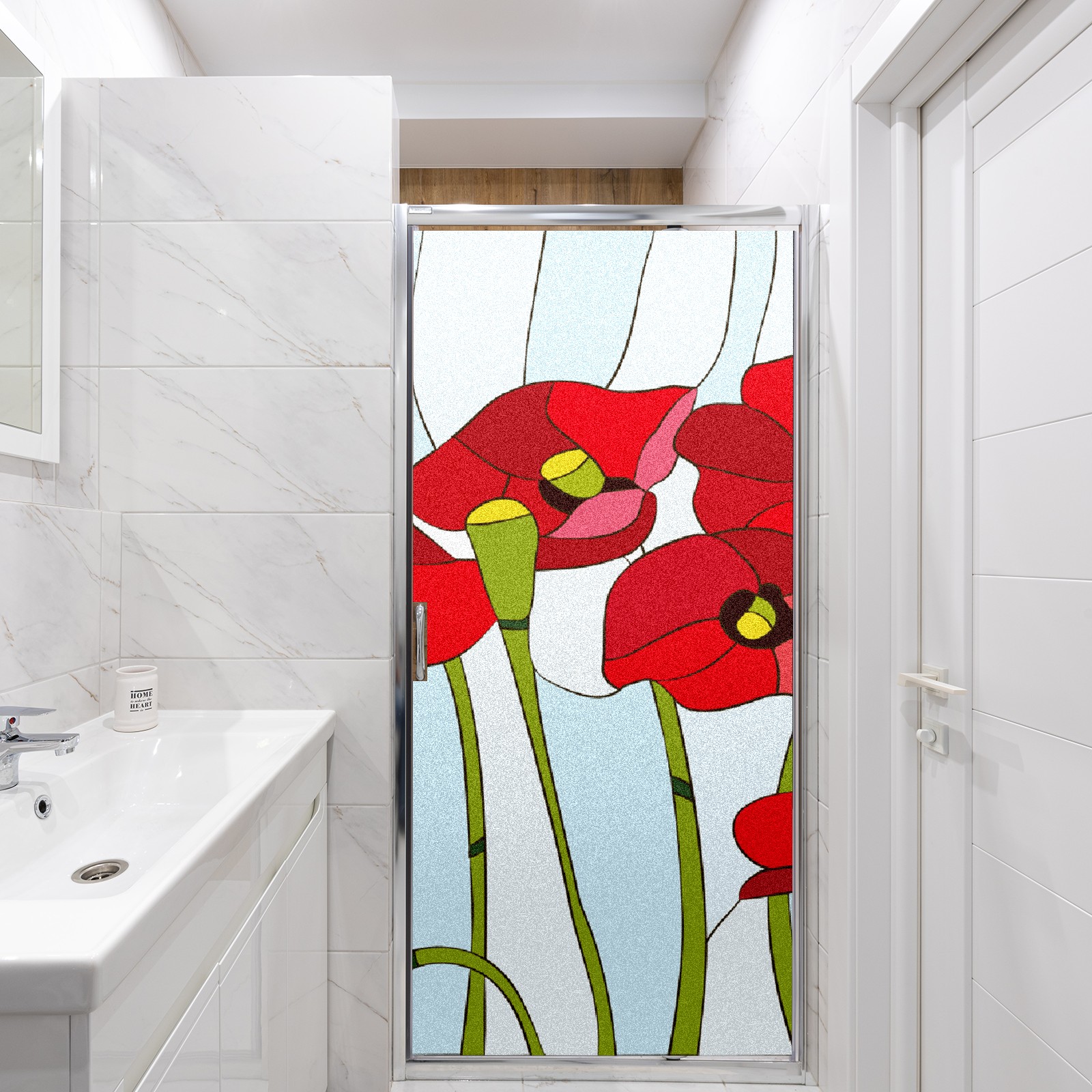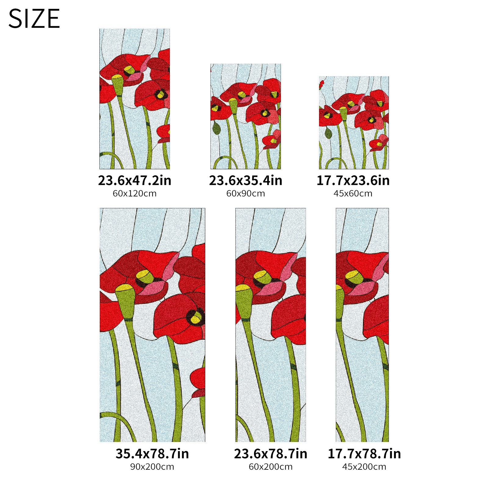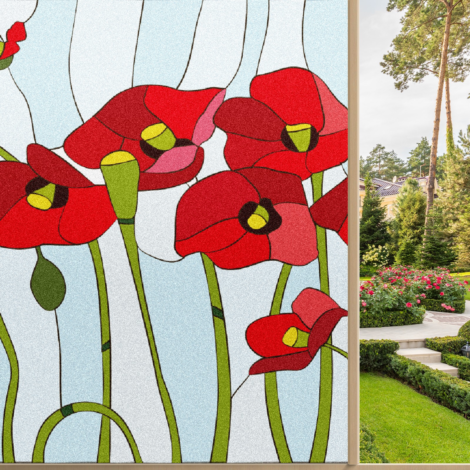Static Cling Decorative Window Film Frosted Privacy Film Window Clings for Glass Windows No Glue Window Sticker for Bathroom Bedroom Office Poppies Stained Glass