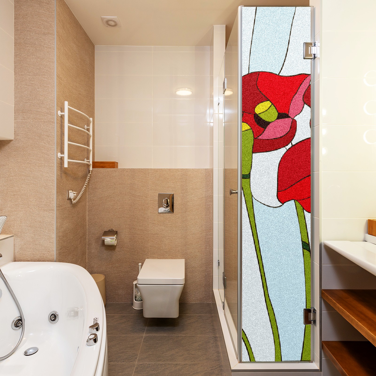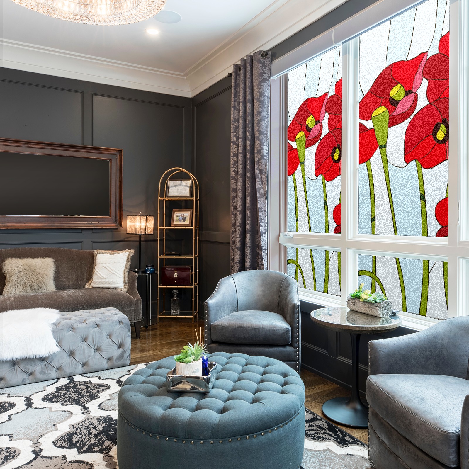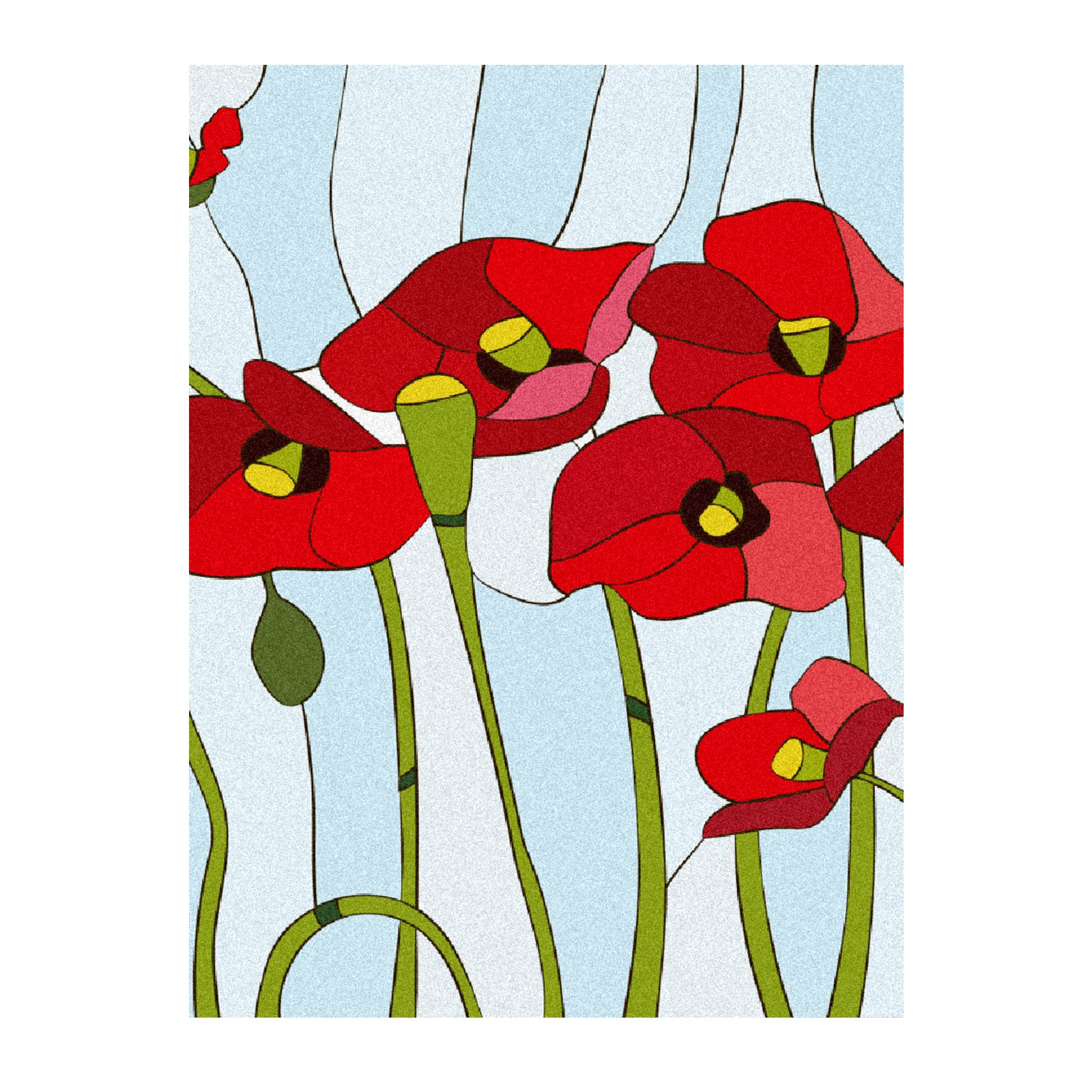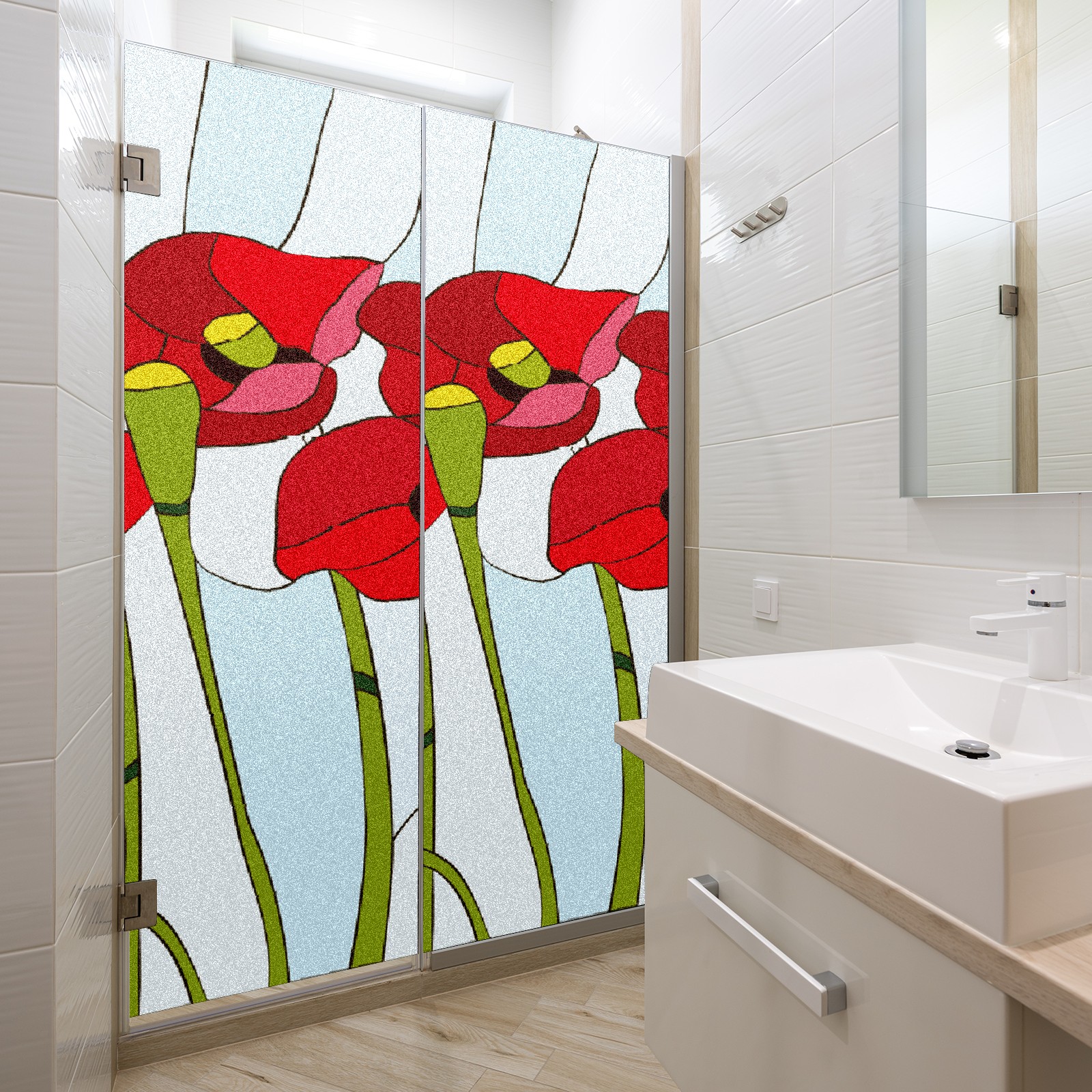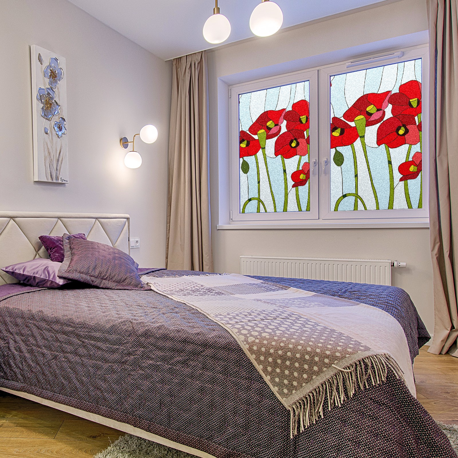 Static Cling Decorative Window Film Frosted Privacy Film Window Clings for Glass Windows No Glue Window Sticker for Bathroom Bedroom Office Poppies Stained Glass