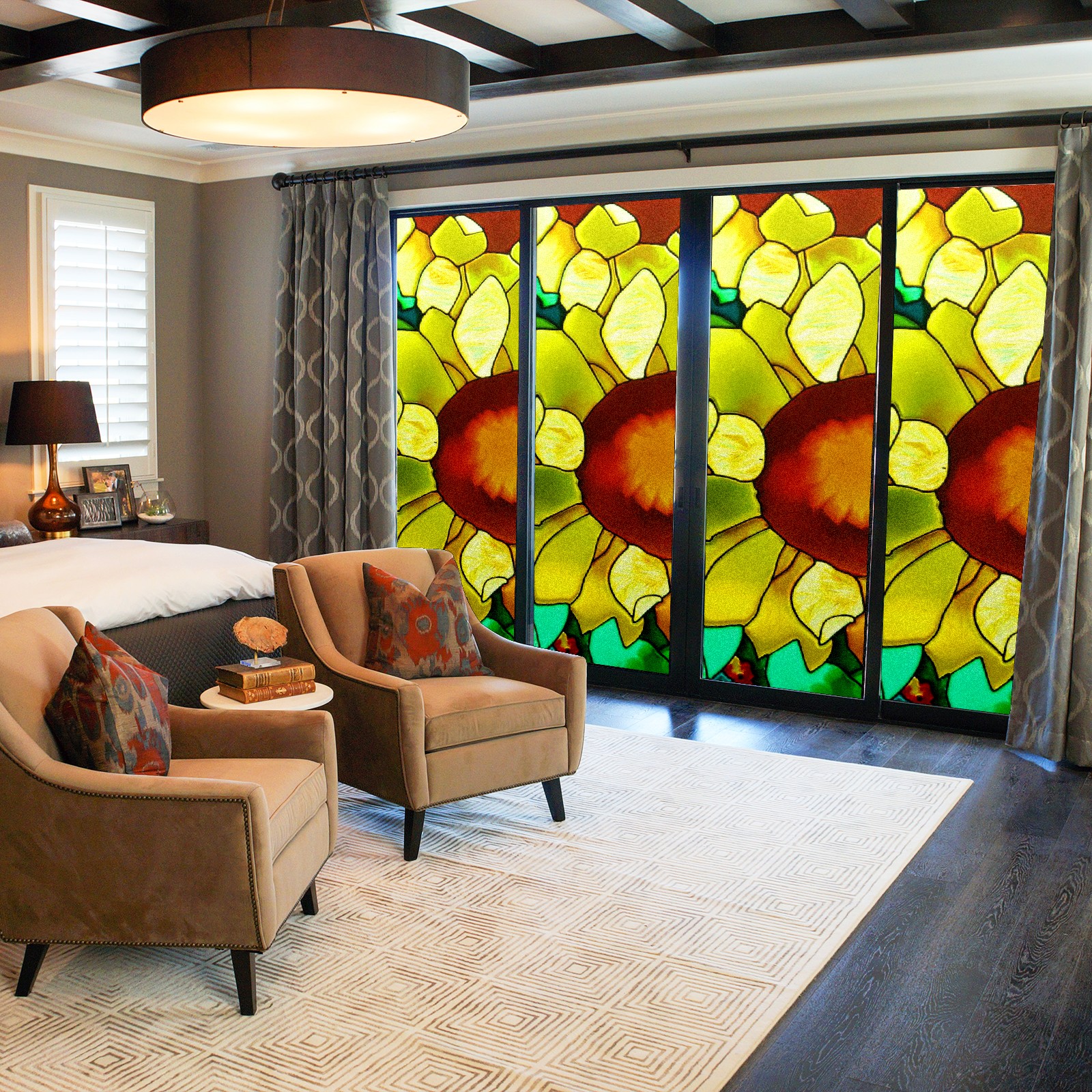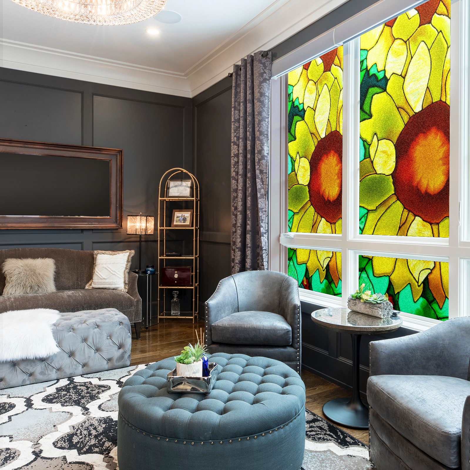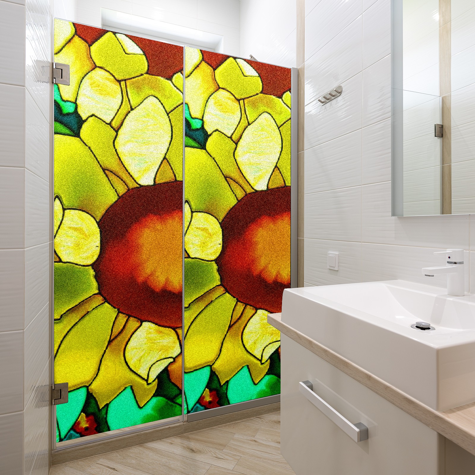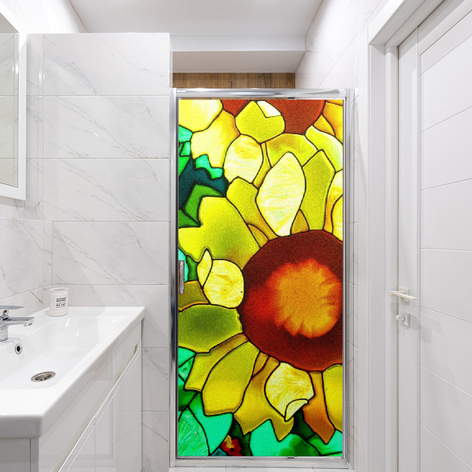 Static Cling Decorative Window Film Frosted Privacy Film Window Clings for Glass Windows No Glue Window Sticker for Bathroom Bedroom Office Sunflower Stained Glass