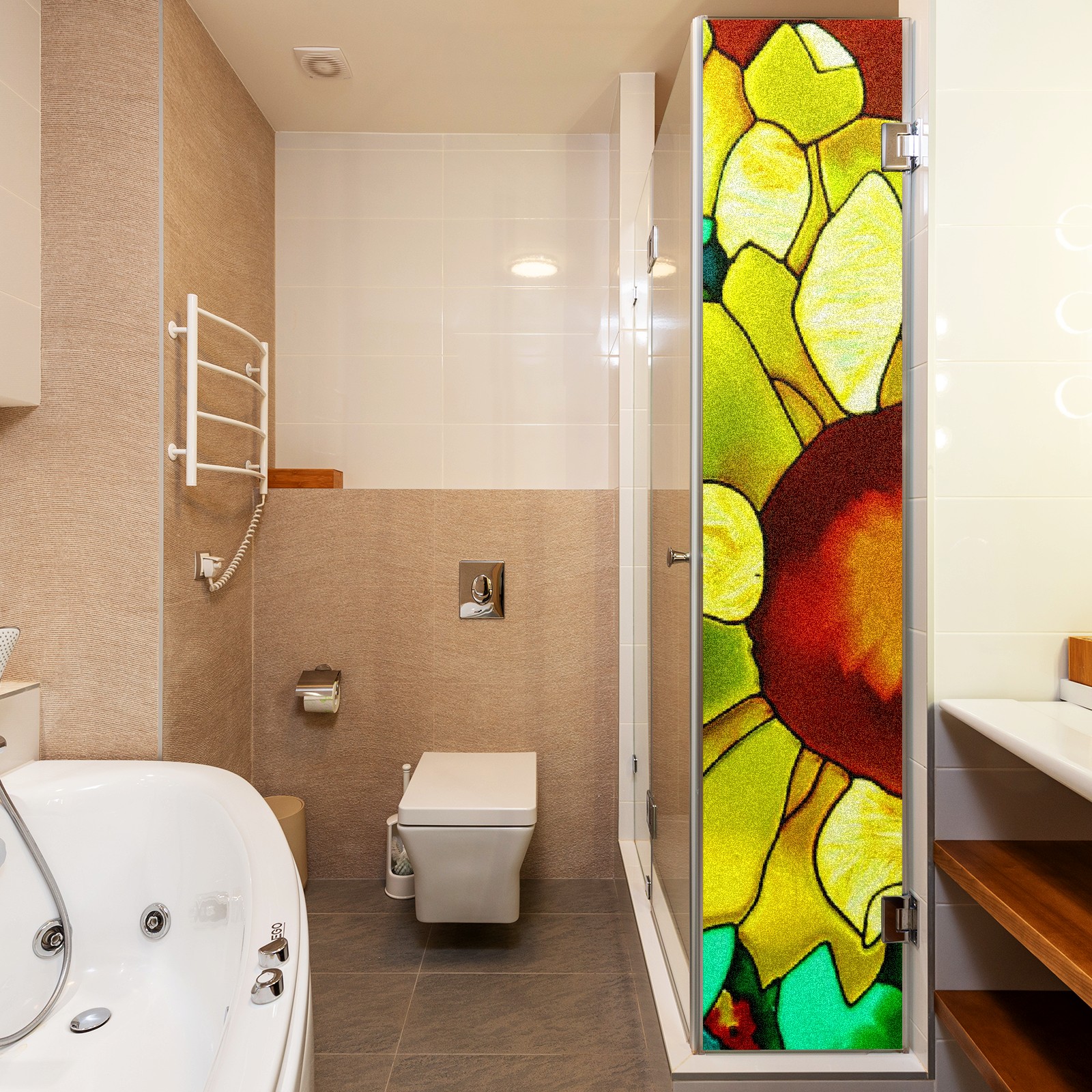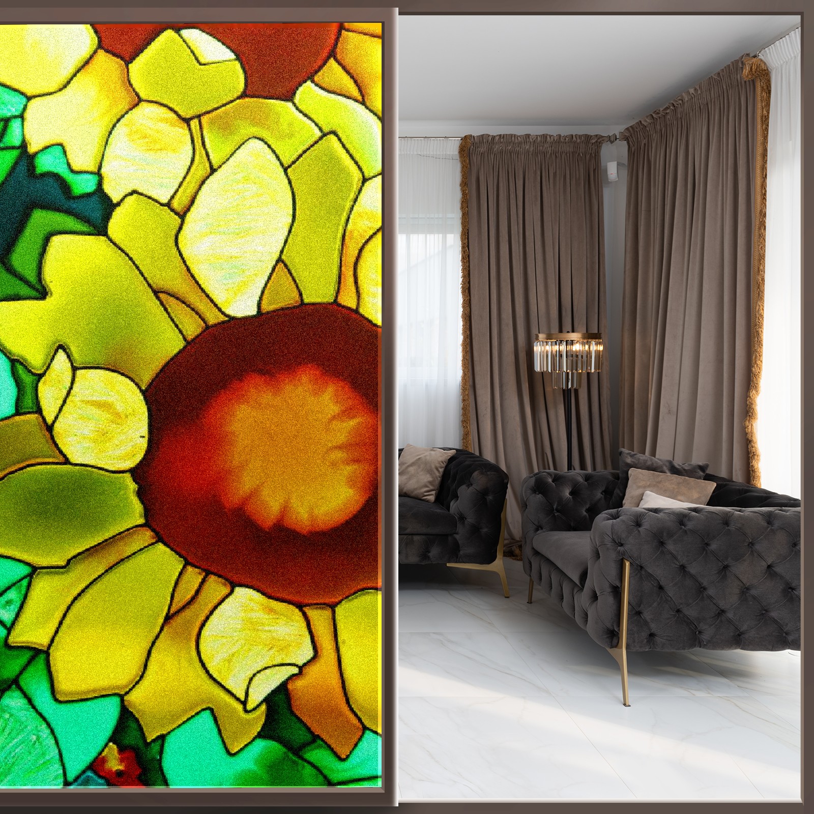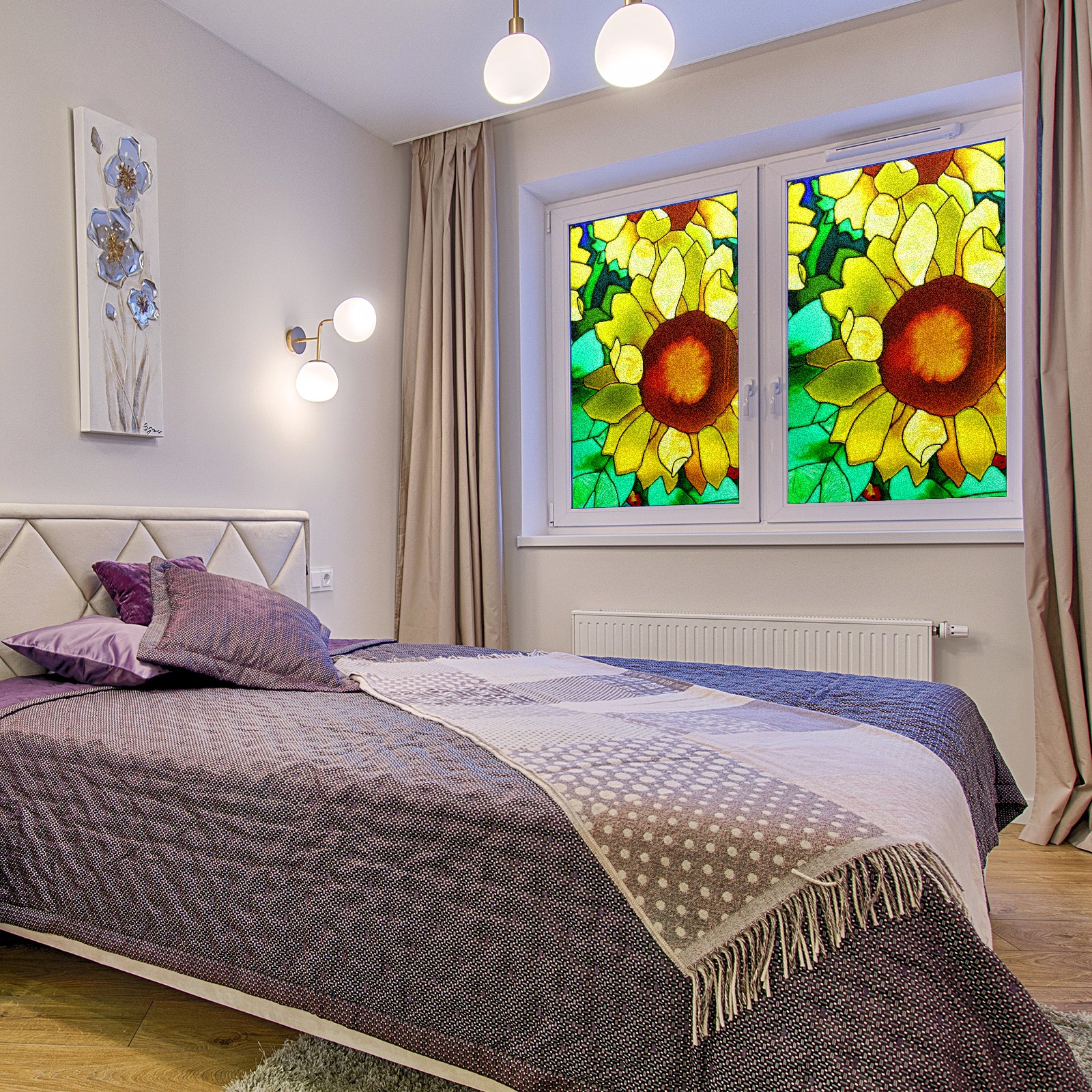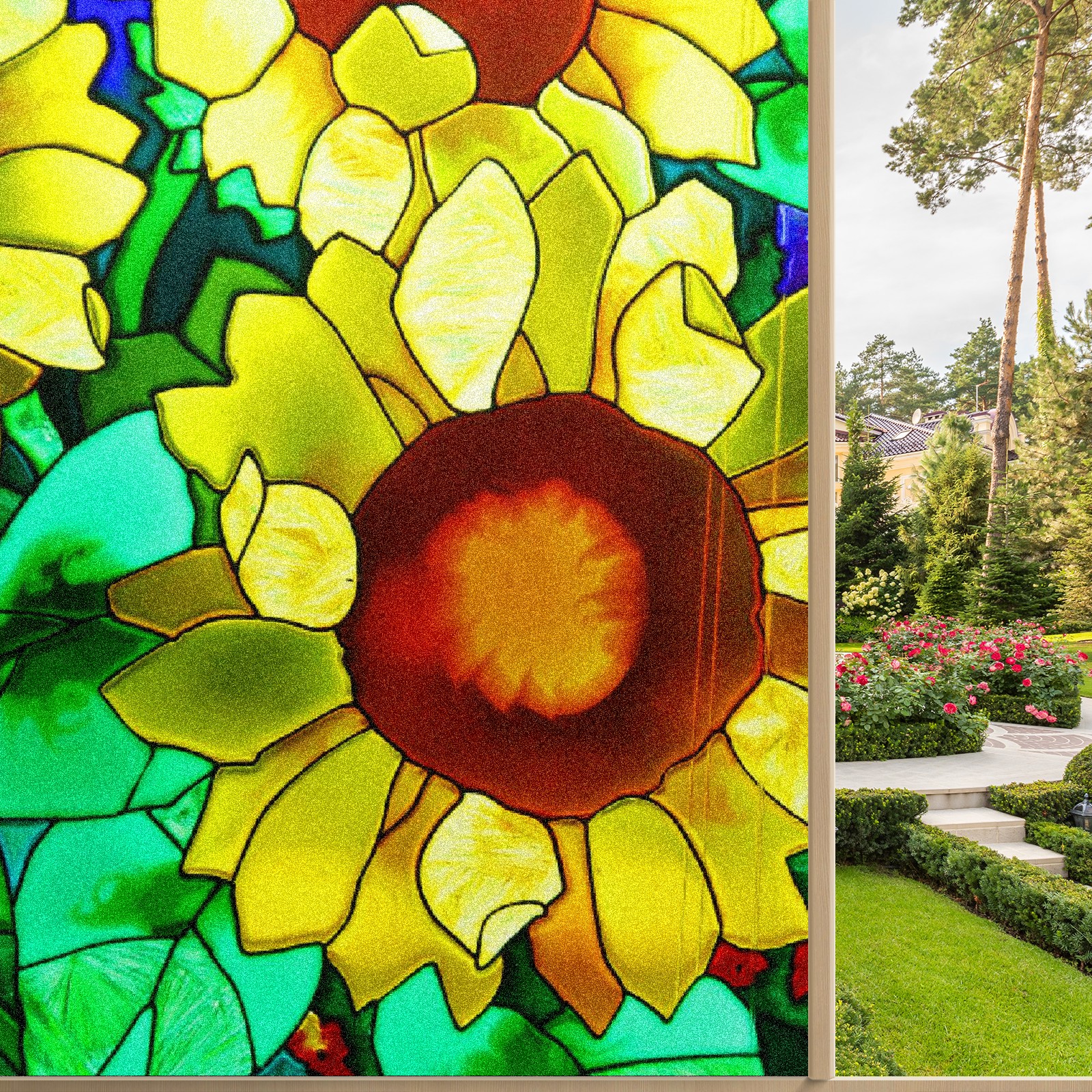 Static Cling Decorative Window Film Frosted Privacy Film Window Clings for Glass Windows No Glue Window Sticker for Bathroom Bedroom Office Sunflower Stained Glass