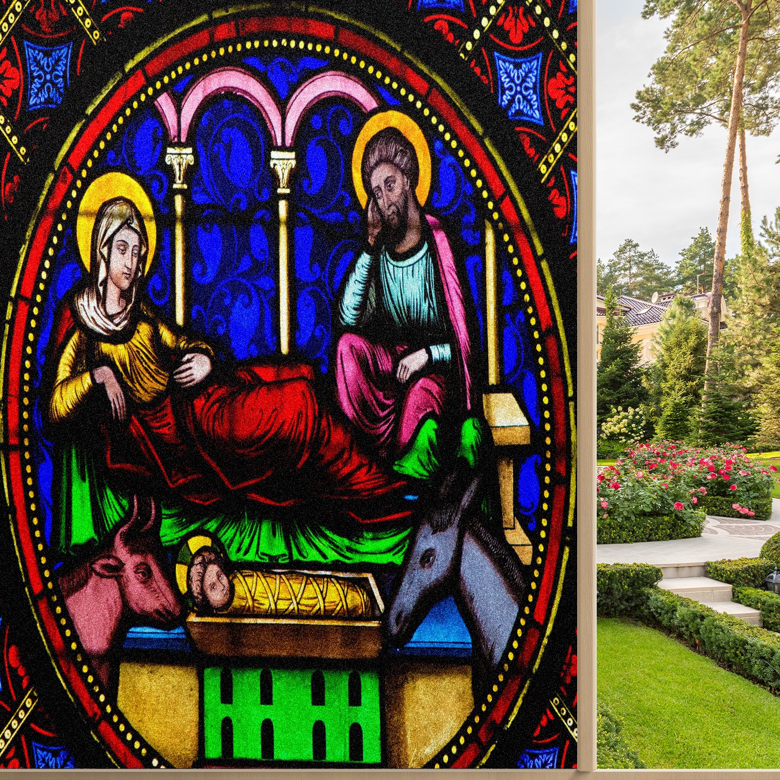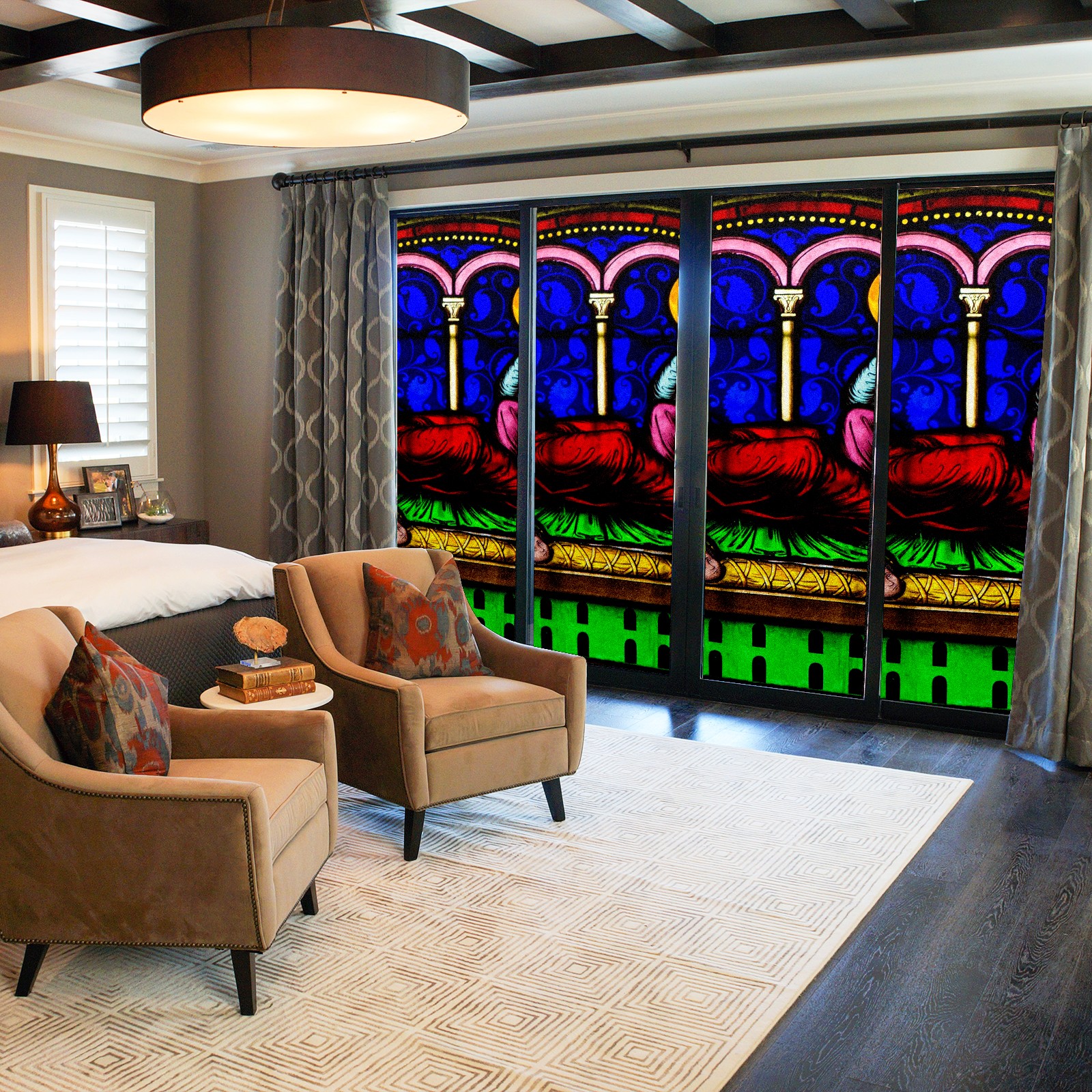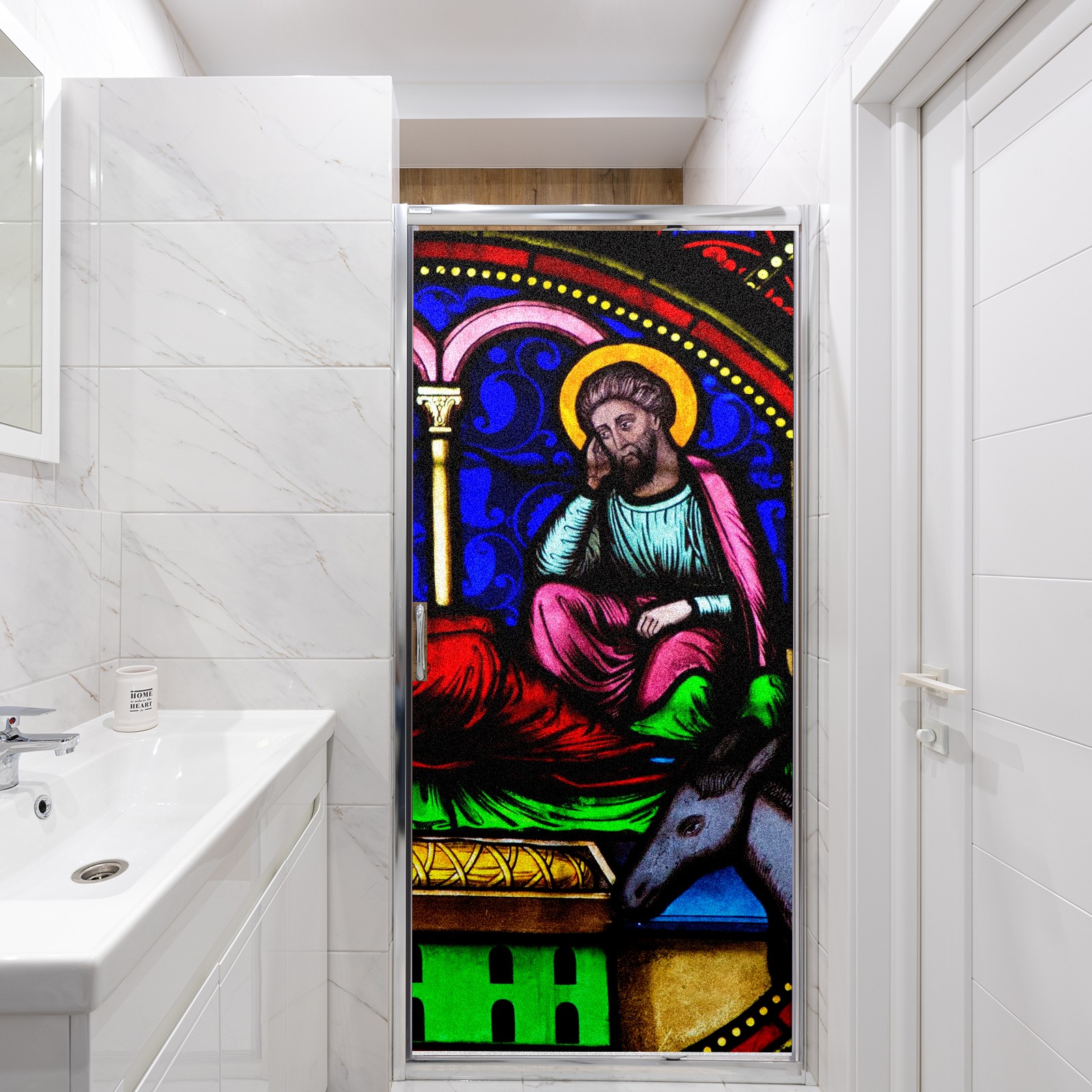 Static Cling Decorative Window Film Frosted Privacy Film Window Clings for Glass Windows No Glue Window Sticker for Bathroom Bedroom Office Stained Glass Window Nativity Bayeux Cathedral