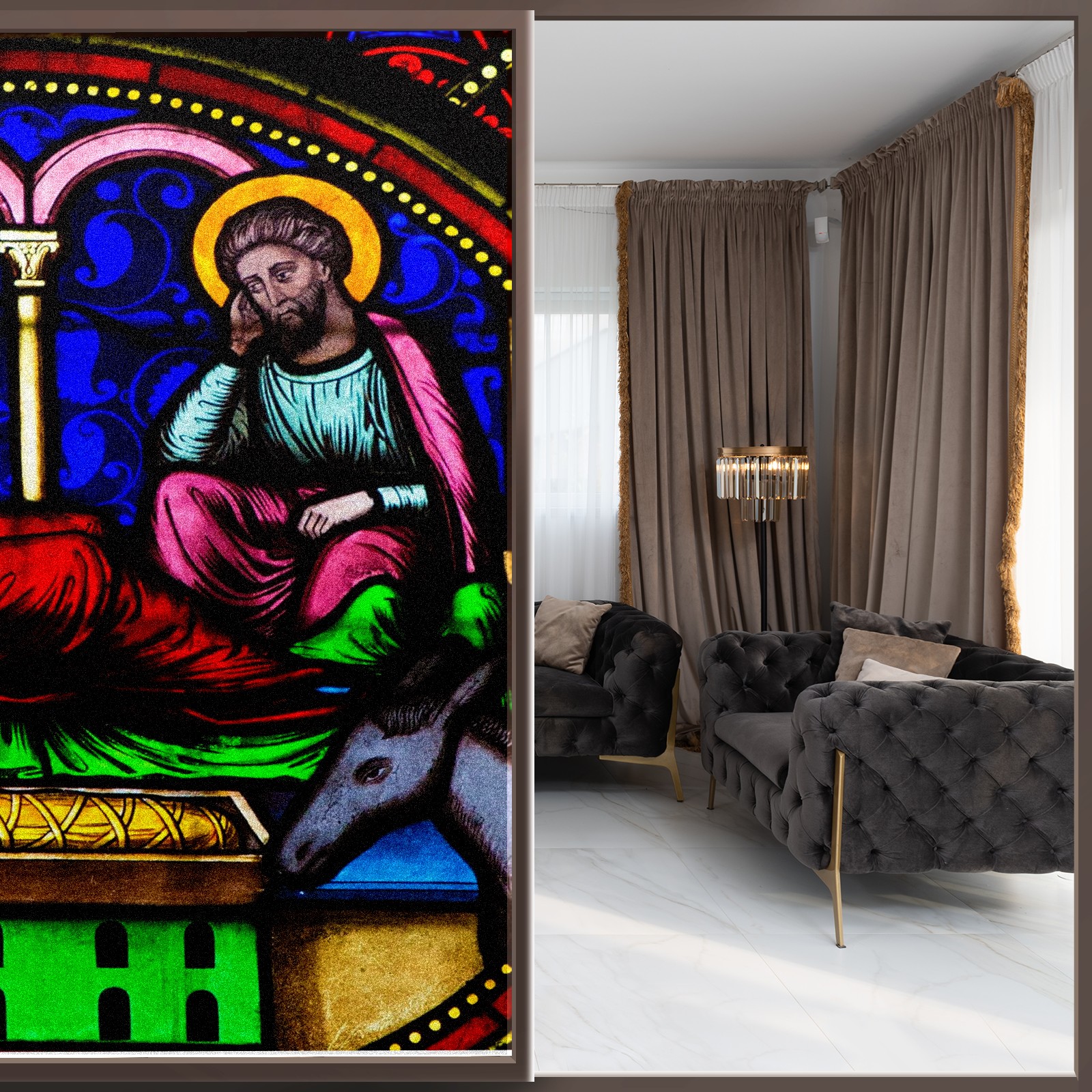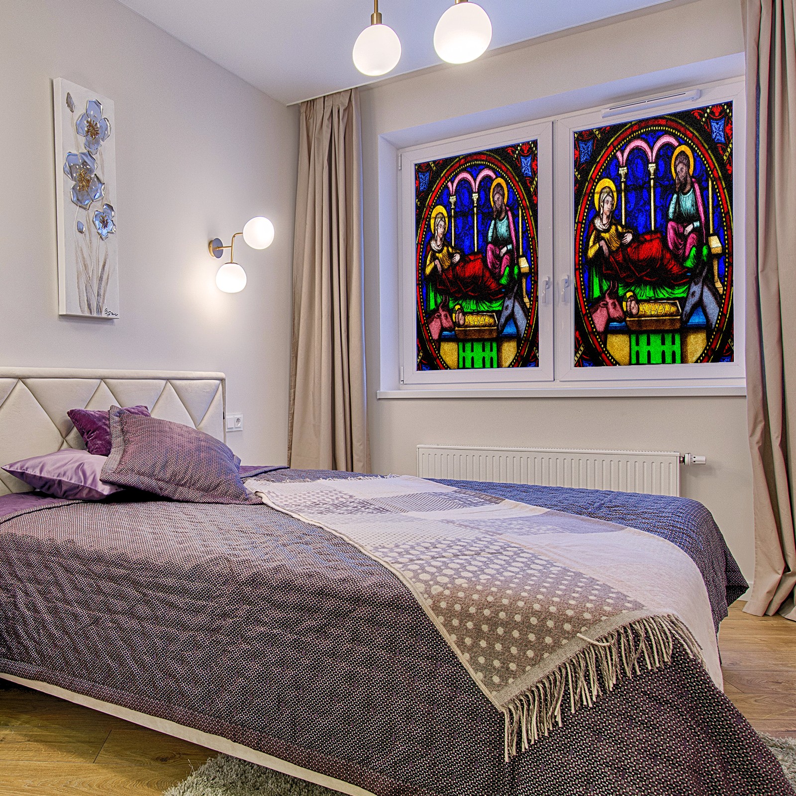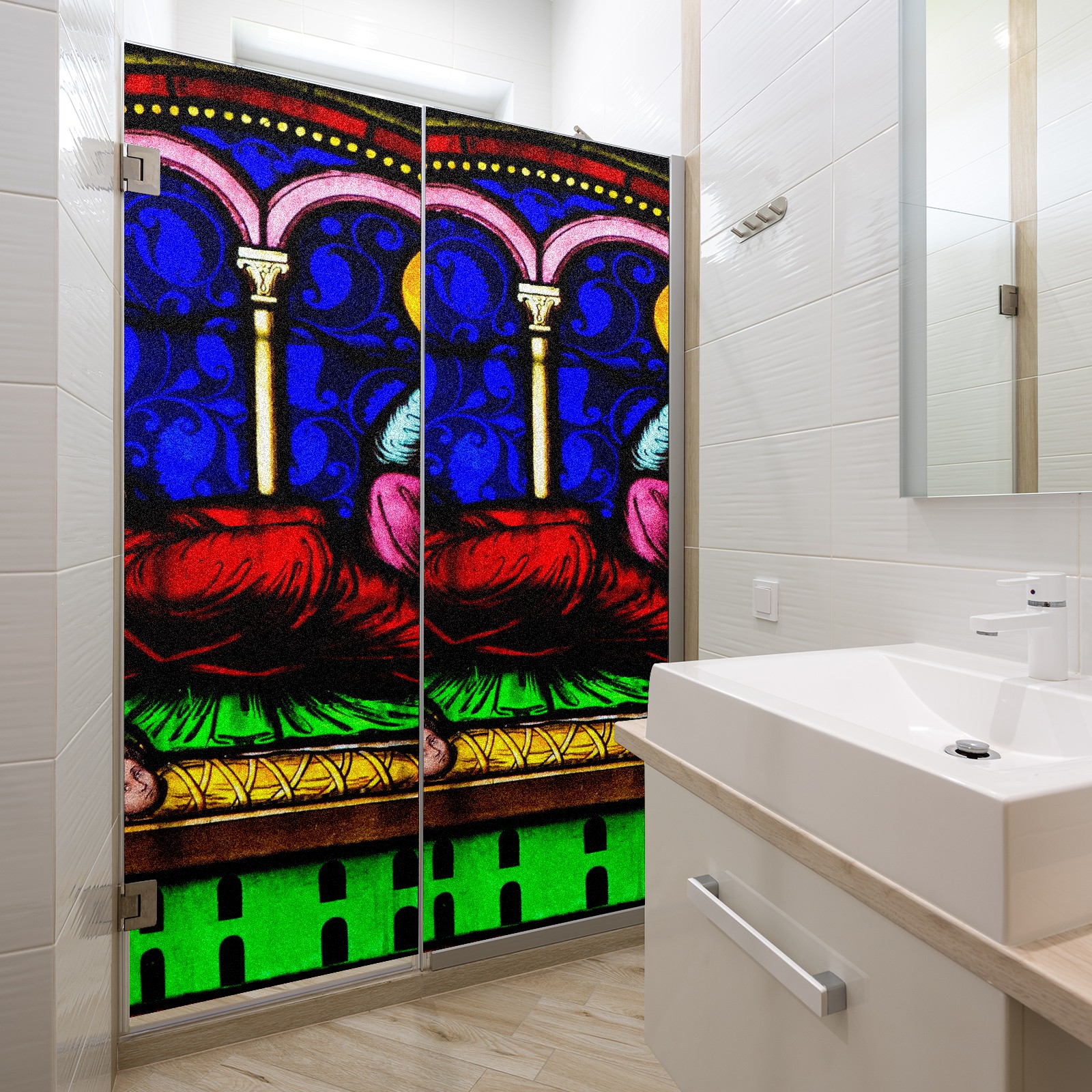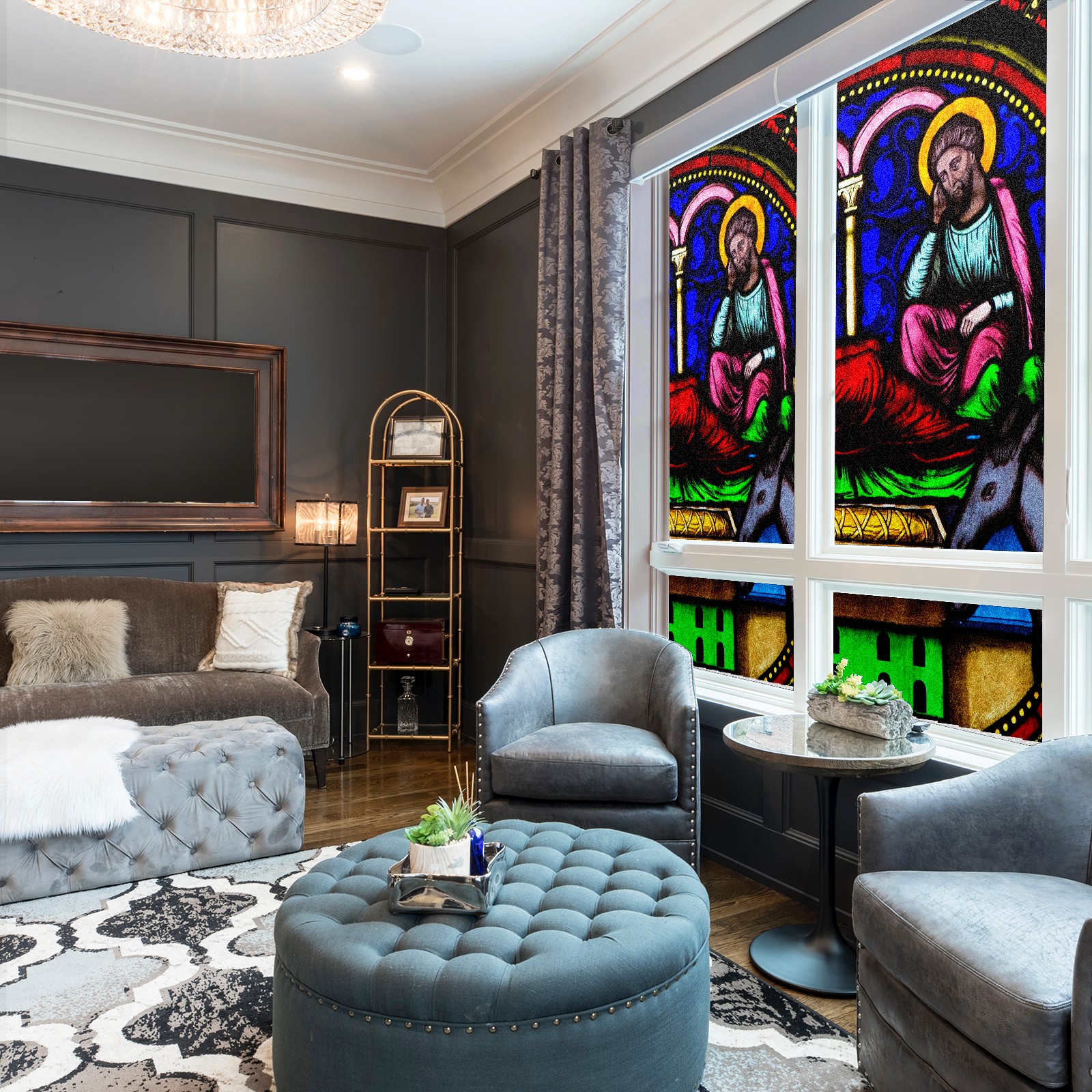 Static Cling Decorative Window Film Frosted Privacy Film Window Clings for Glass Windows No Glue Window Sticker for Bathroom Bedroom Office Stained Glass Window Nativity Bayeux Cathedral