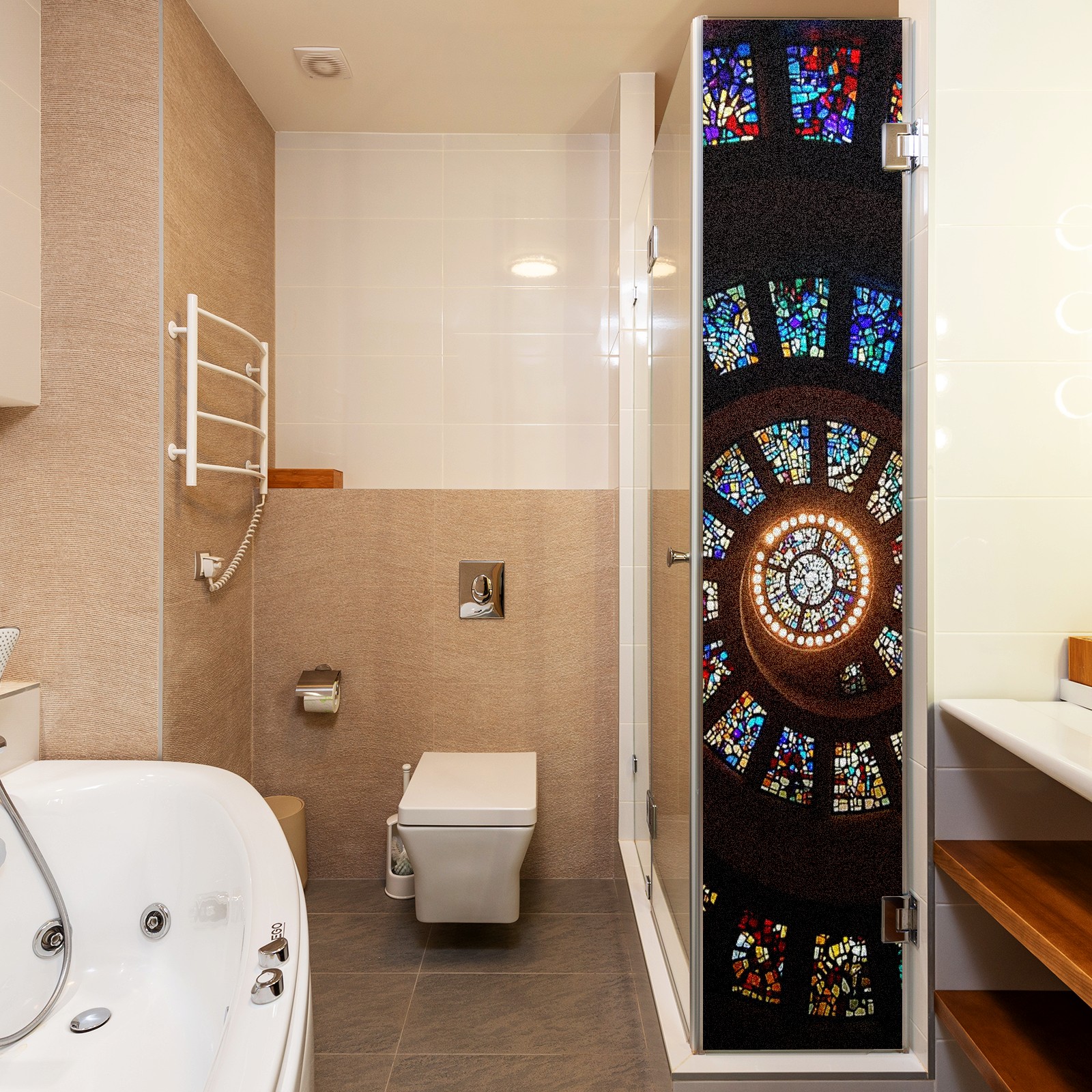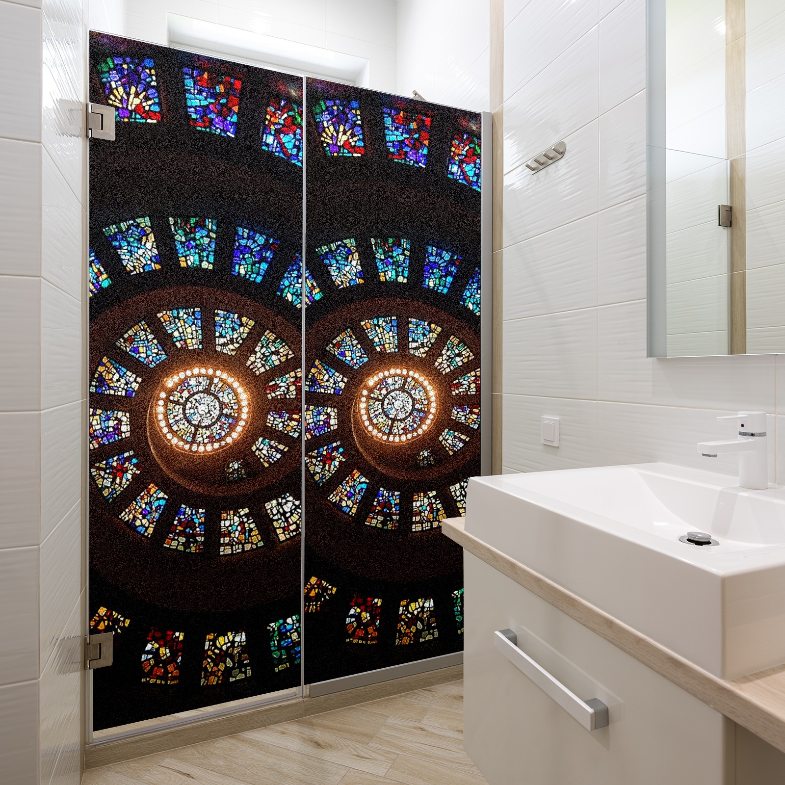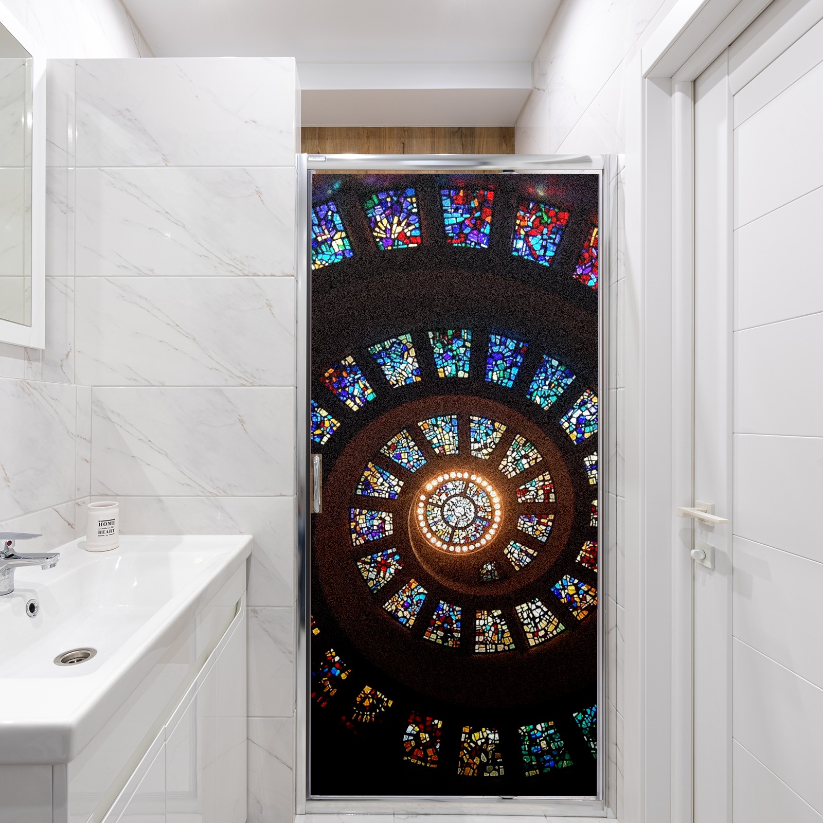 Static Cling Decorative Window Film Frosted Privacy Film Window Clings for Glass Windows No Glue Window Sticker for Bathroom Bedroom Office Spiral Stained Glass
