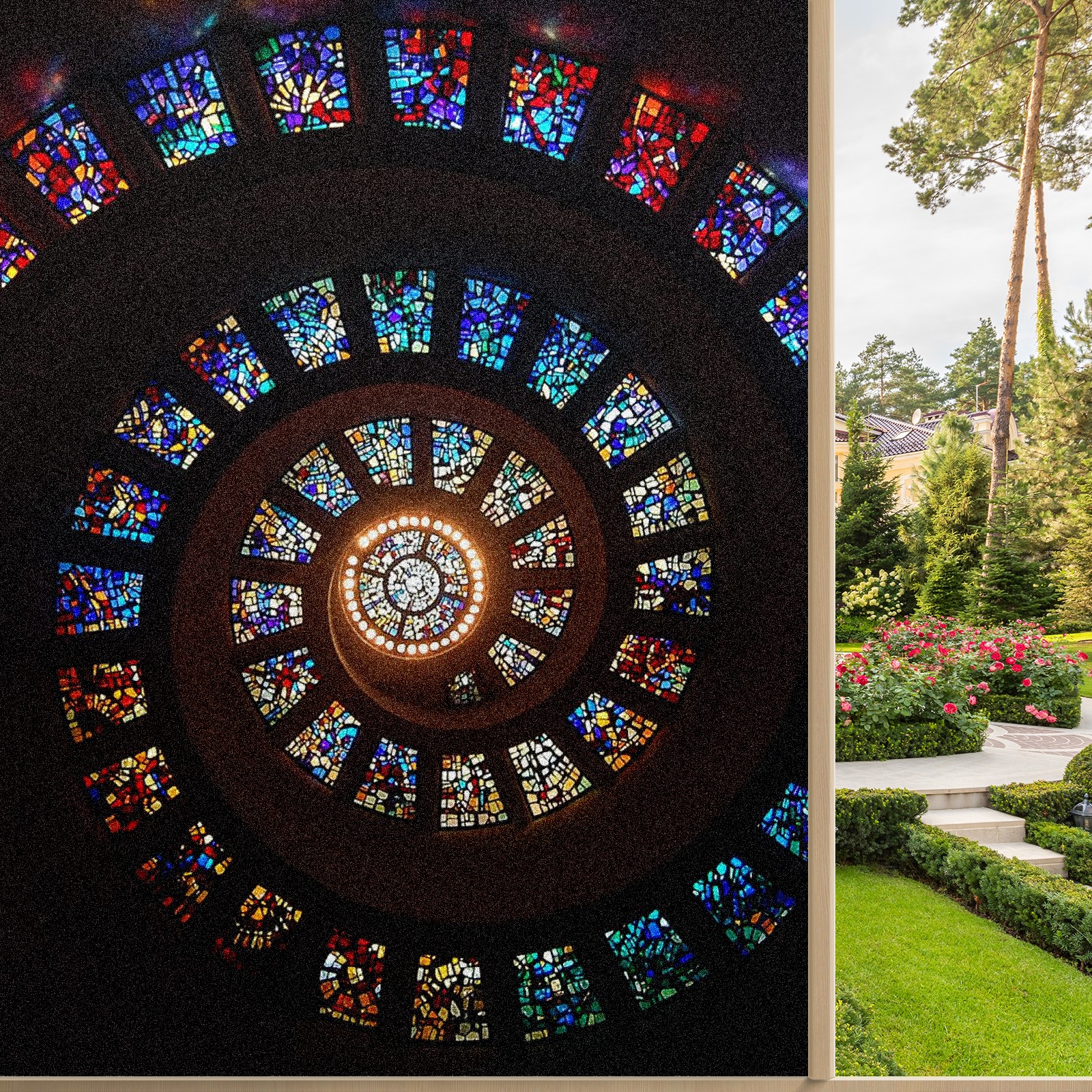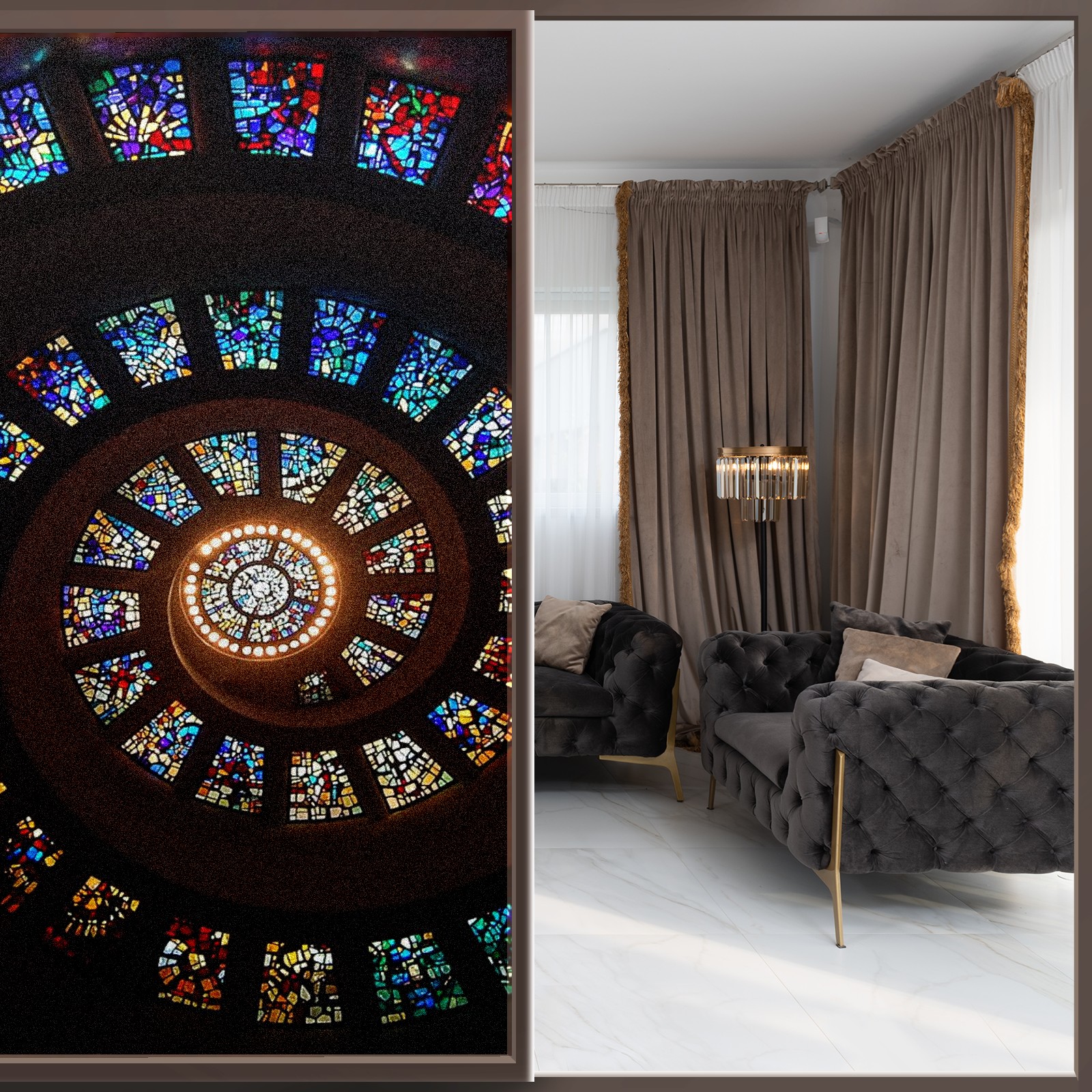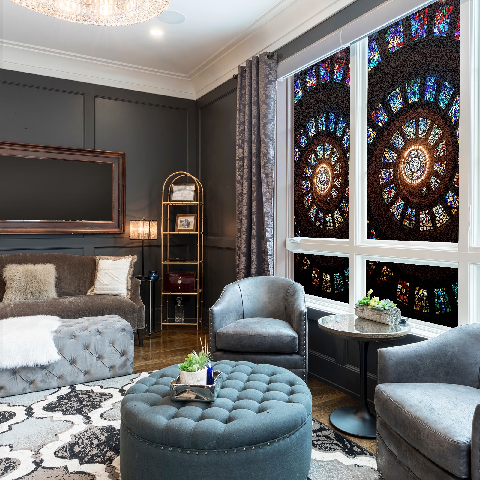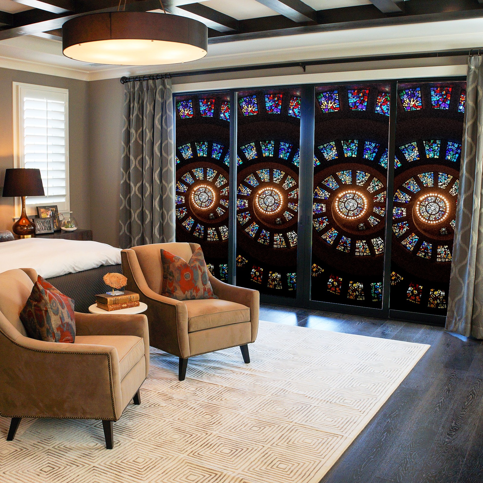 Static Cling Decorative Window Film Frosted Privacy Film Window Clings for Glass Windows No Glue Window Sticker for Bathroom Bedroom Office Spiral Stained Glass
