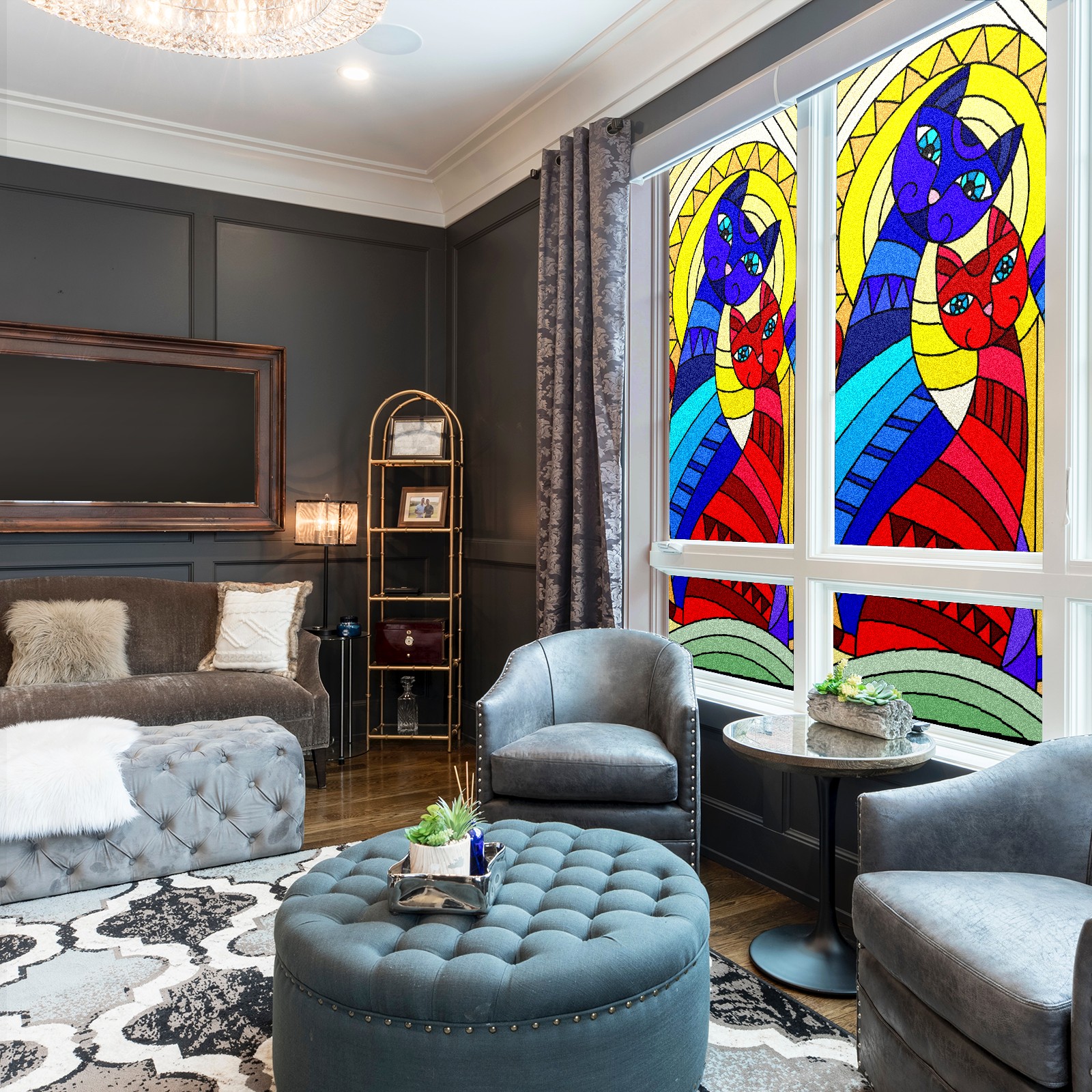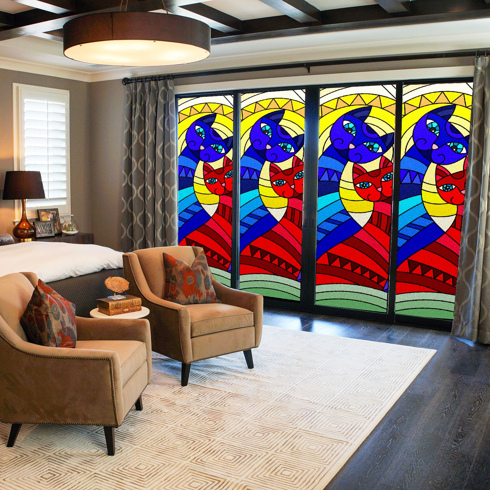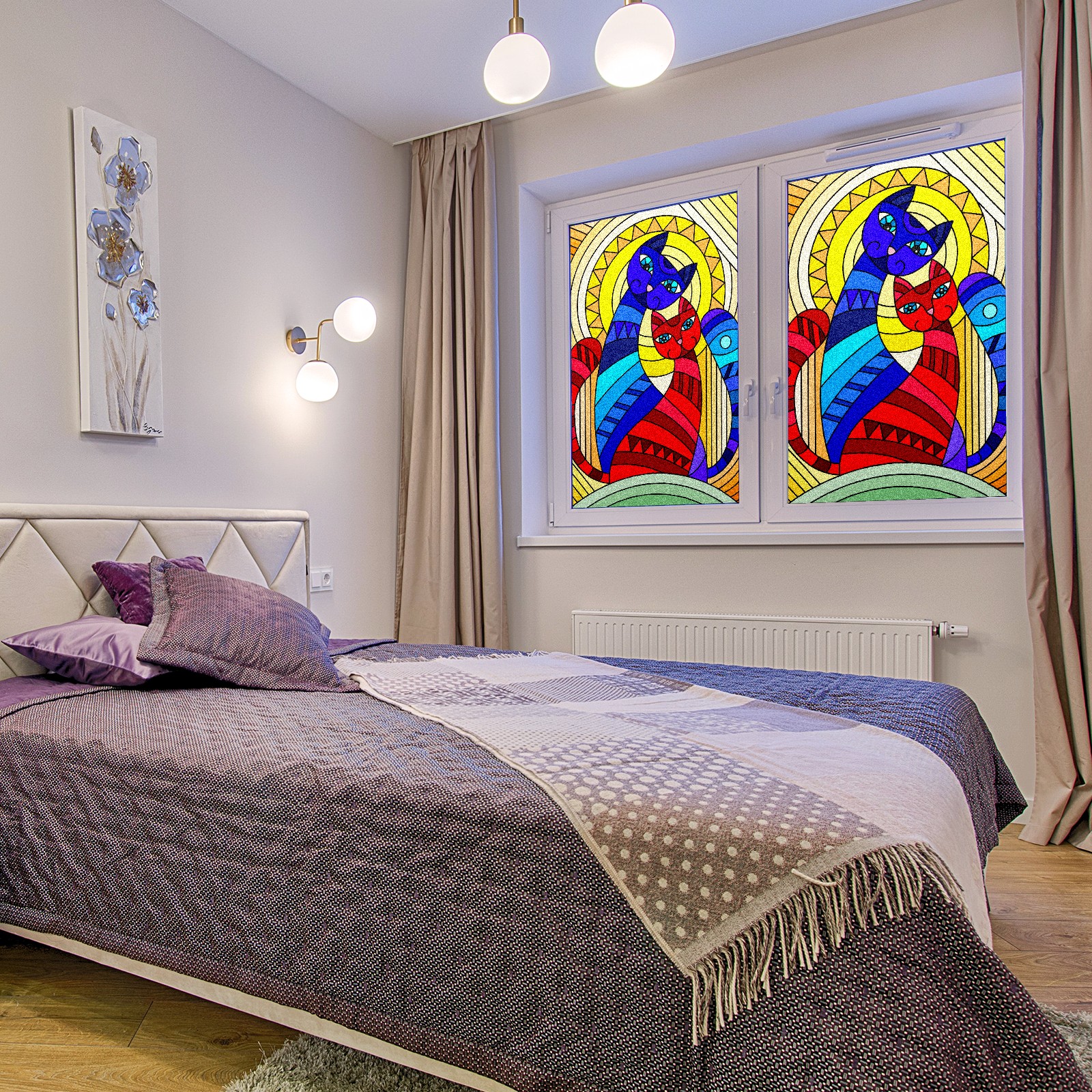 Static Cling Decorative Window Film Frosted Privacy Film Window Clings for Glass Windows No Glue Window Sticker for Bathroom Bedroom Office Stained Glass Cat Couple Moon