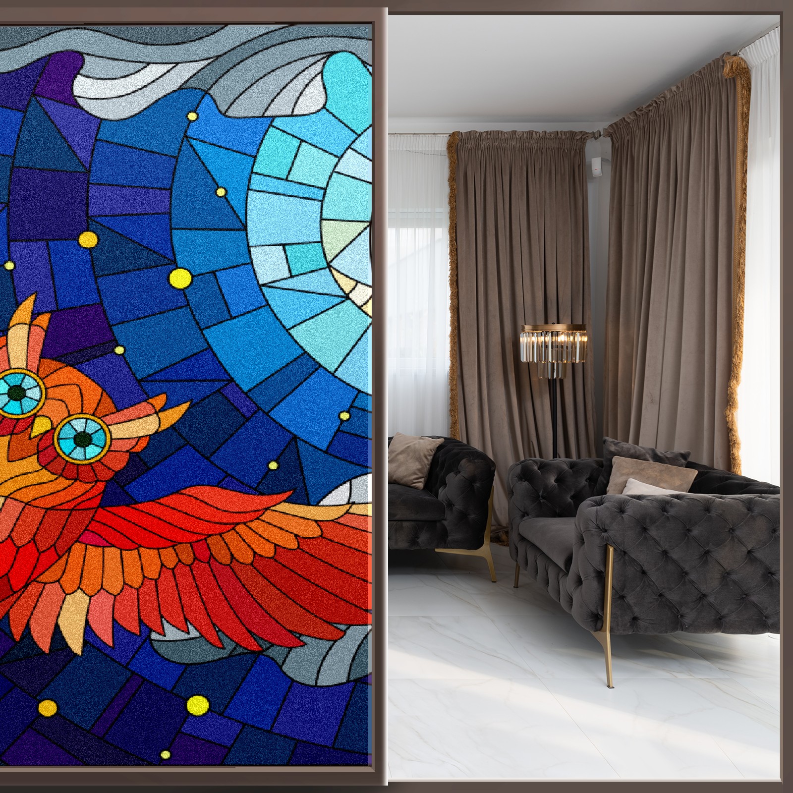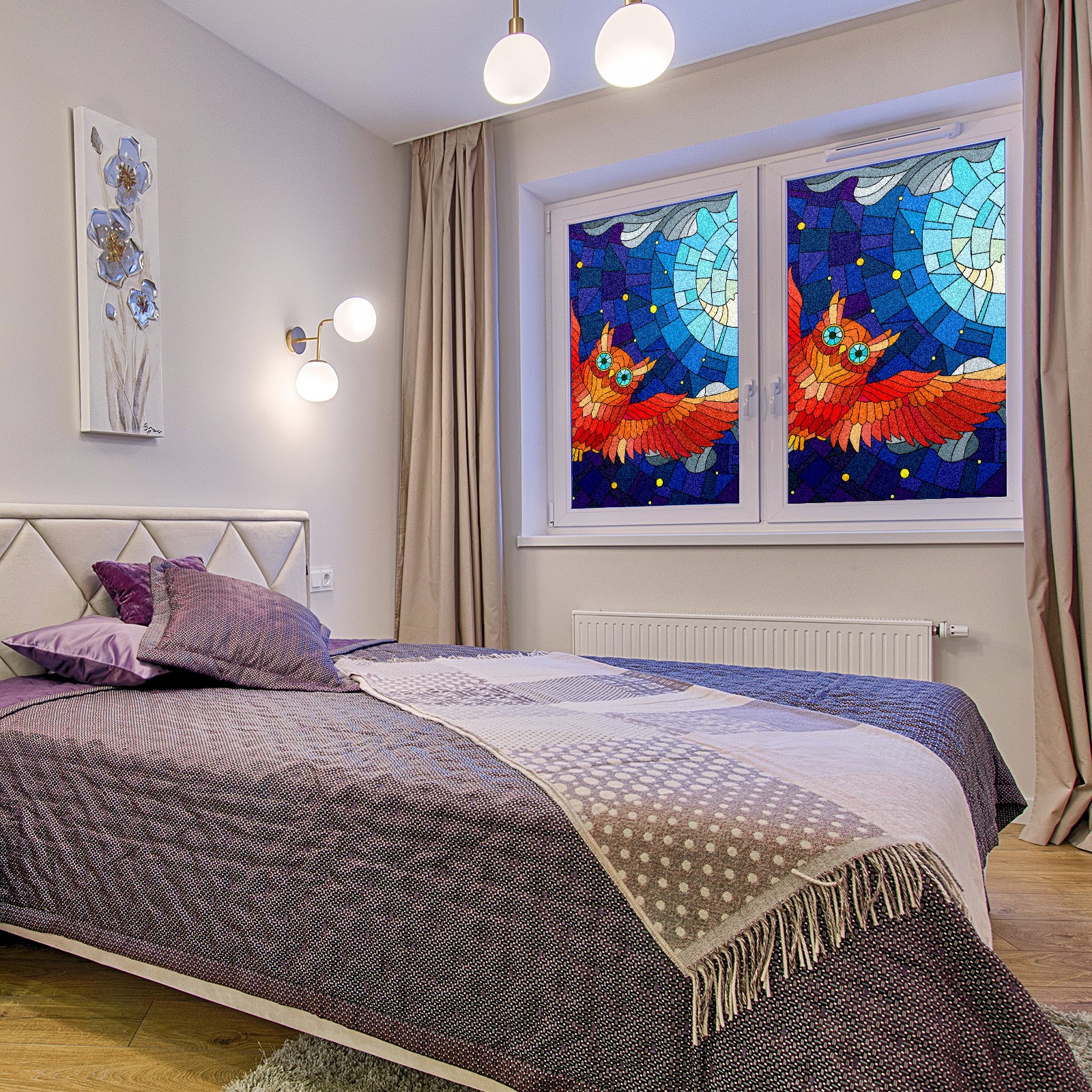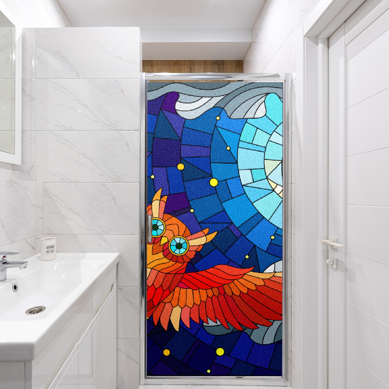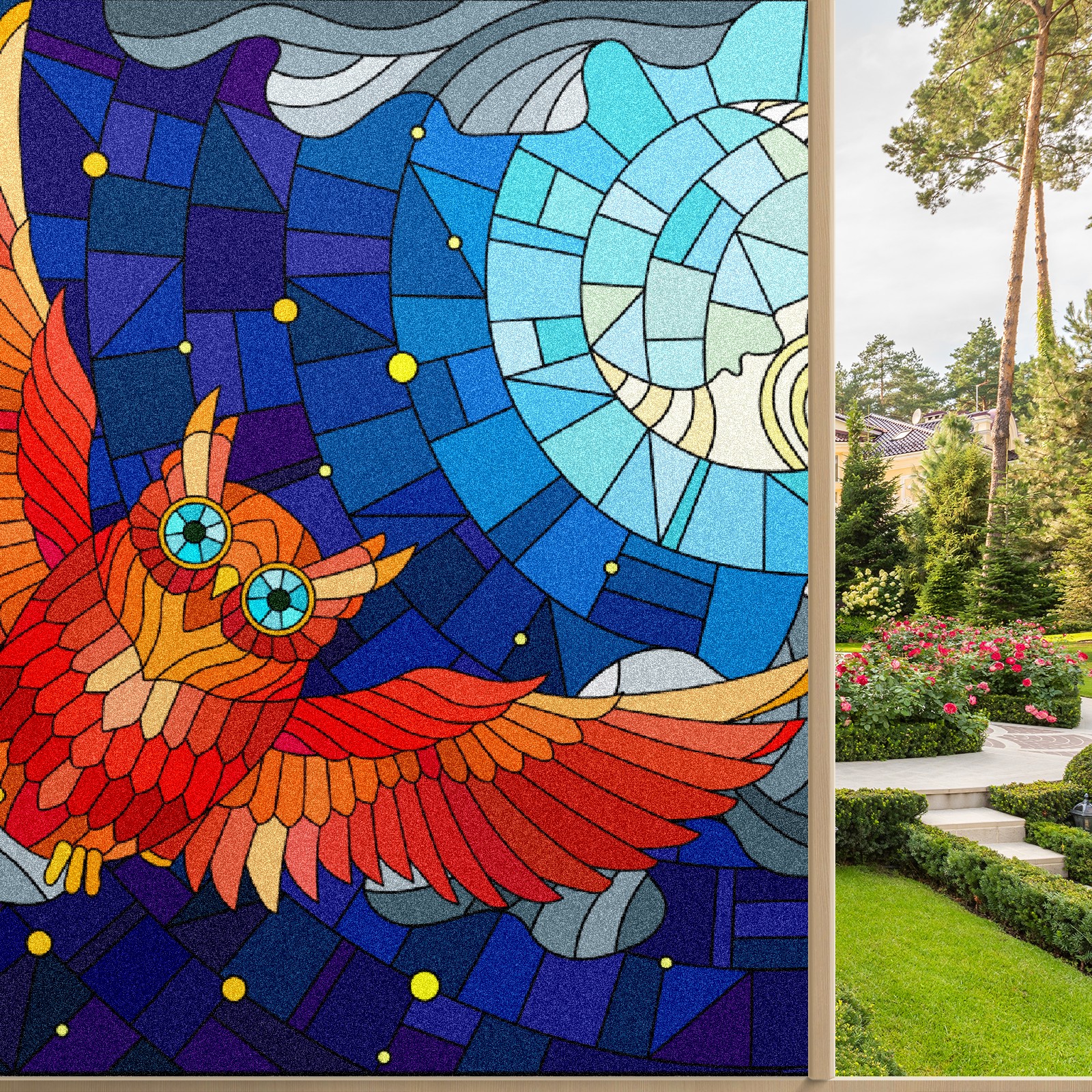 Static Cling Decorative Window Film Frosted Privacy Film Window Clings for Glass Windows No Glue Window Sticker for Bathroom Bedroom Office Owl Stained Glass