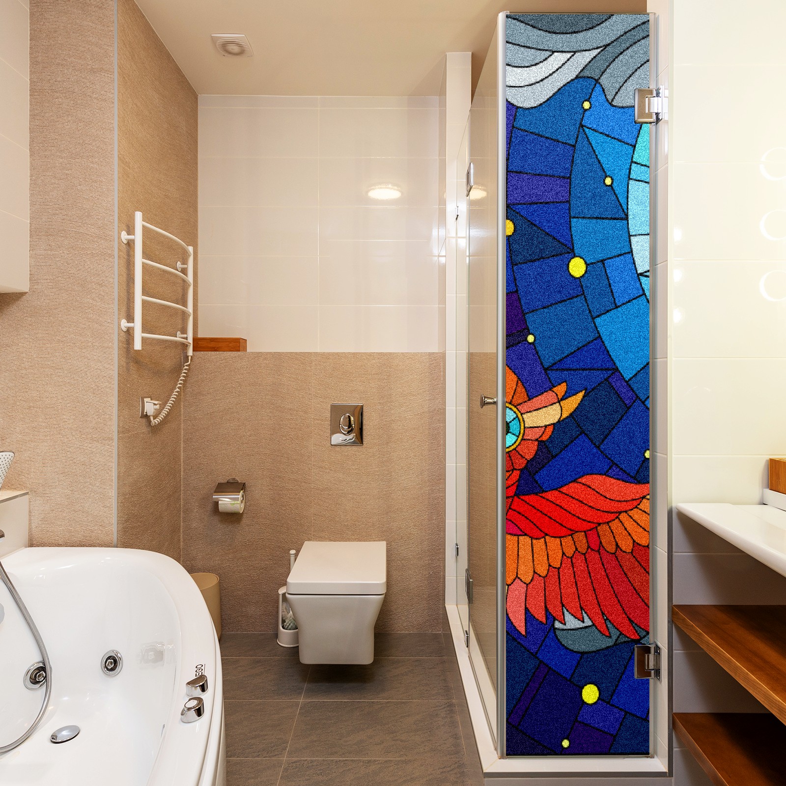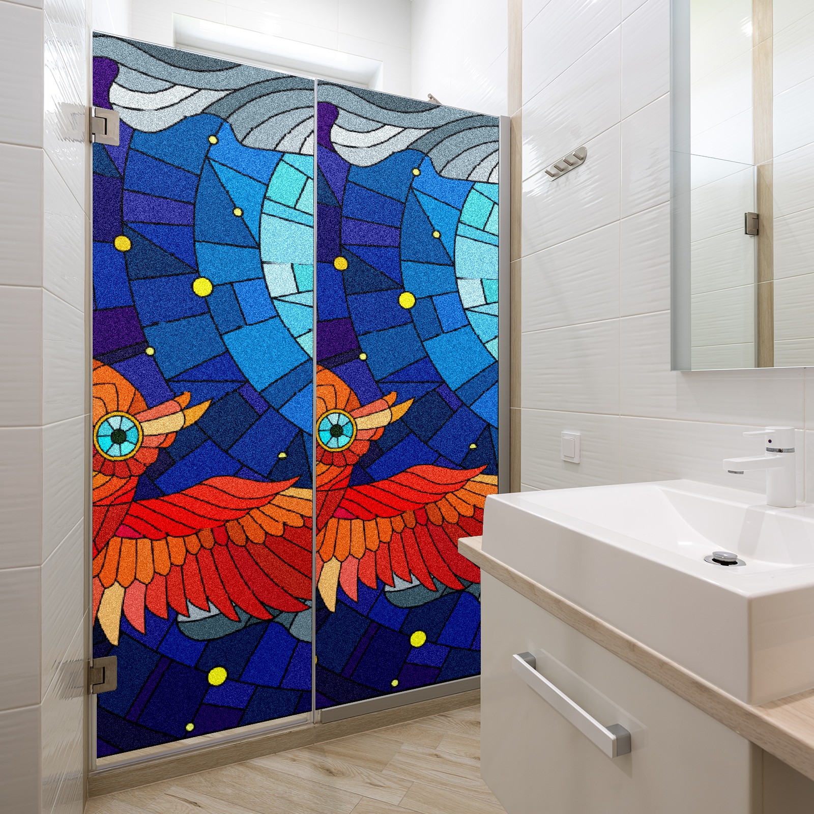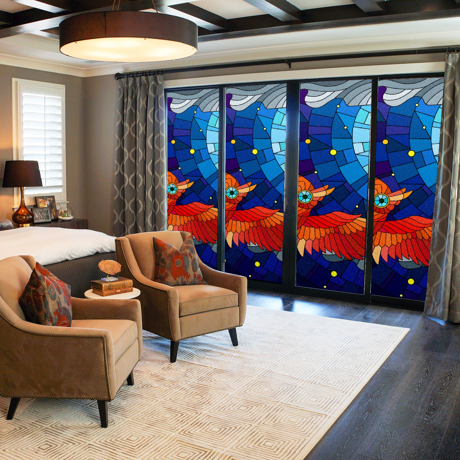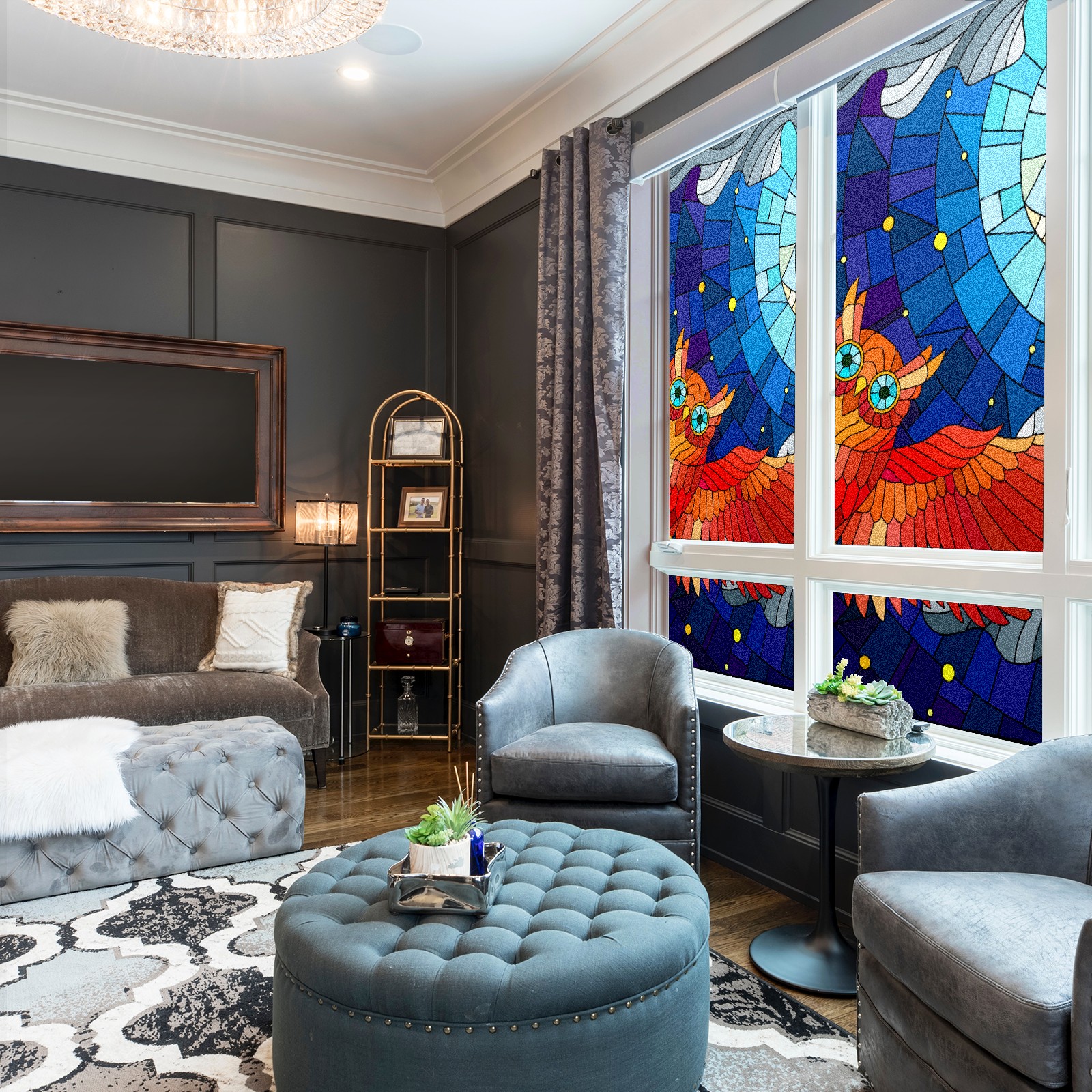 Static Cling Decorative Window Film Frosted Privacy Film Window Clings for Glass Windows No Glue Window Sticker for Bathroom Bedroom Office Owl Stained Glass