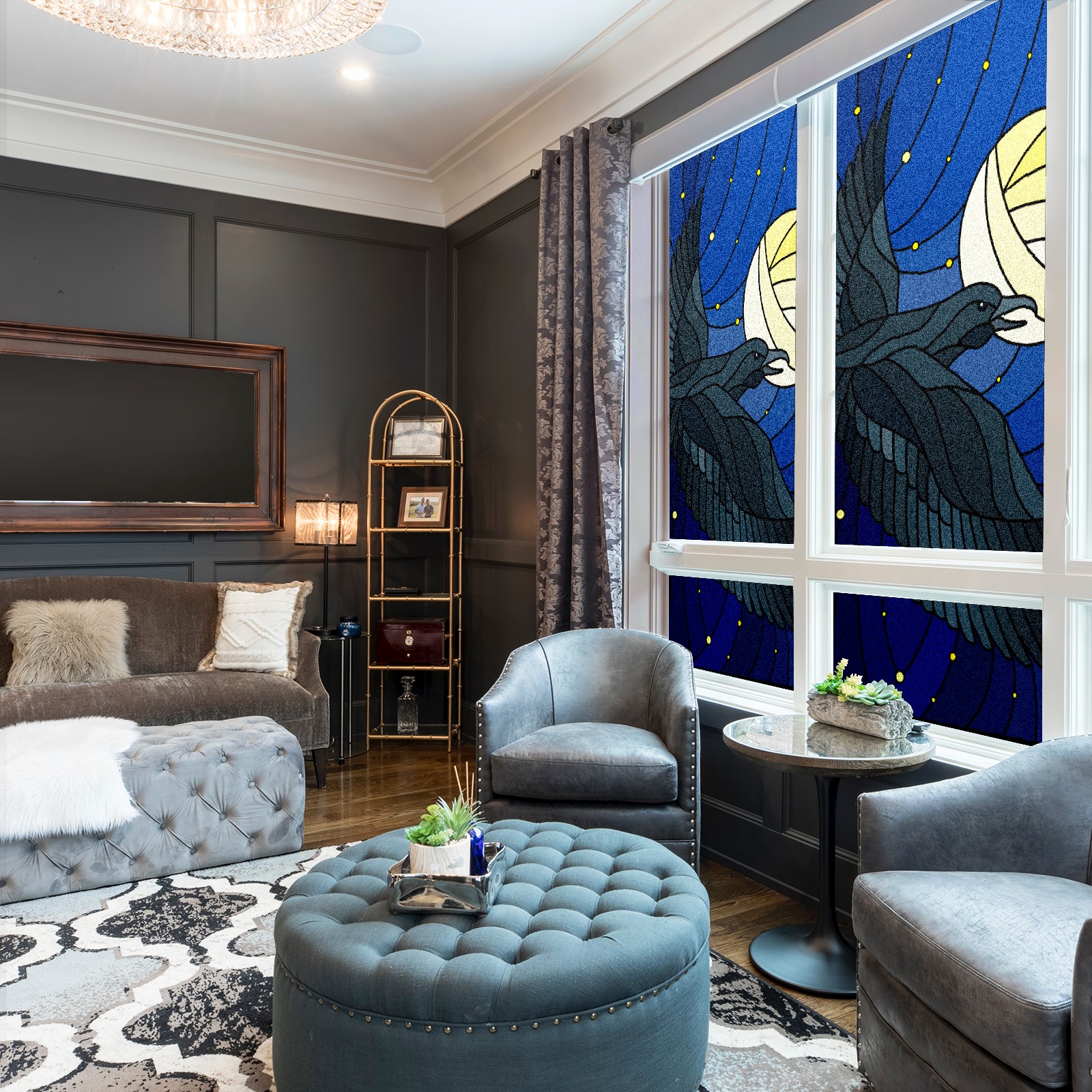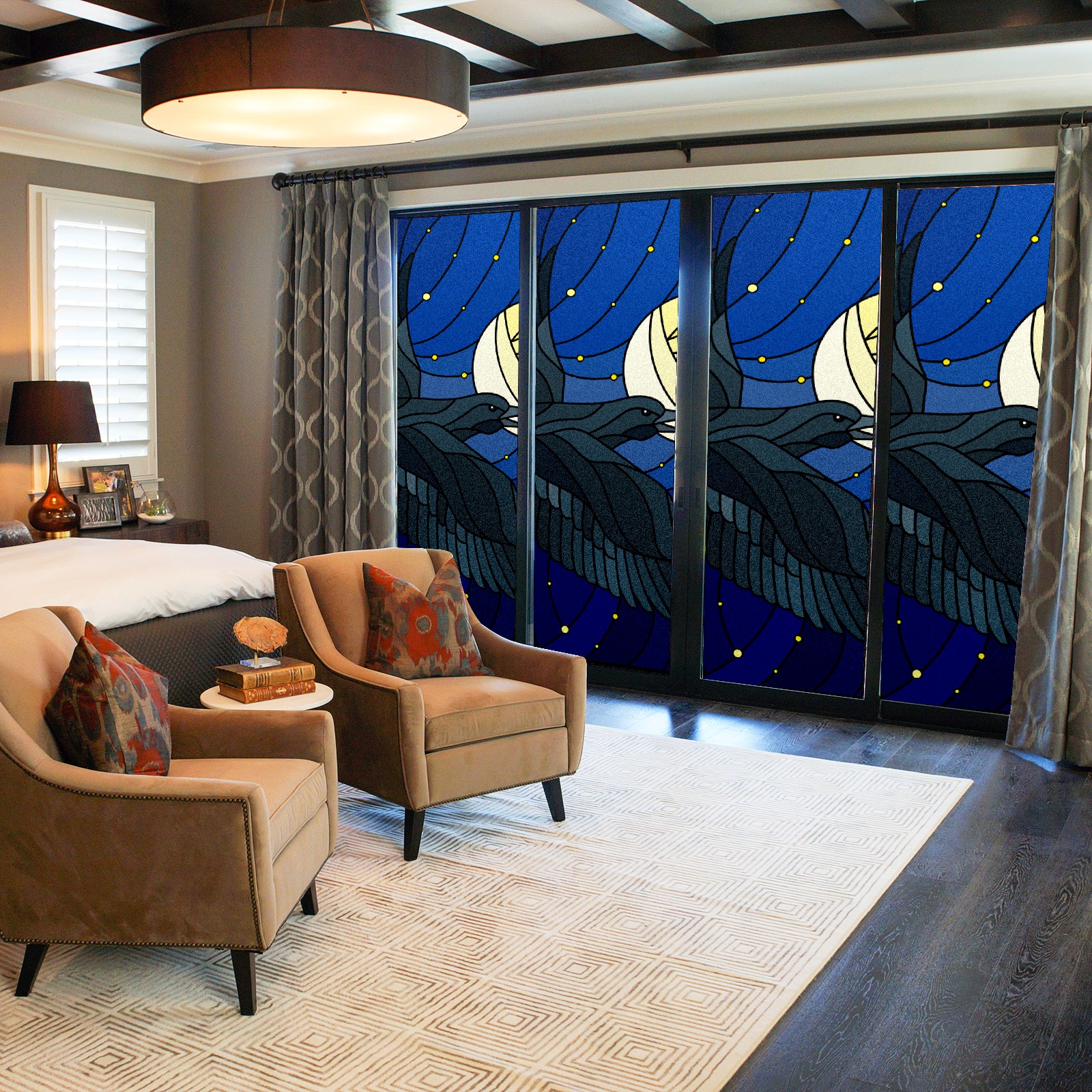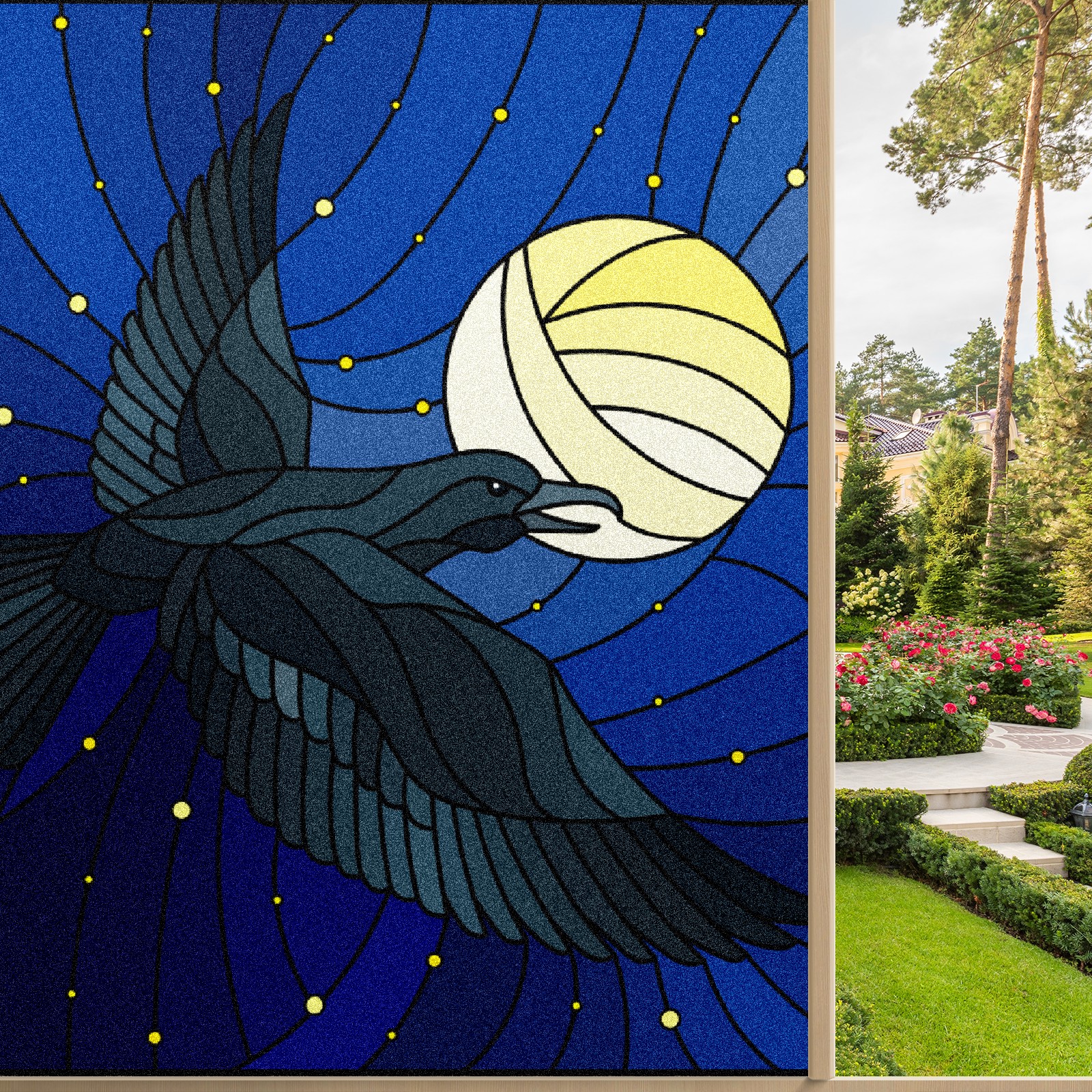 Static Cling Decorative Window Film Frosted Privacy Film Window Clings for Glass Windows No Glue Window Sticker for Bathroom Bedroom Office Eagle Stained Glass