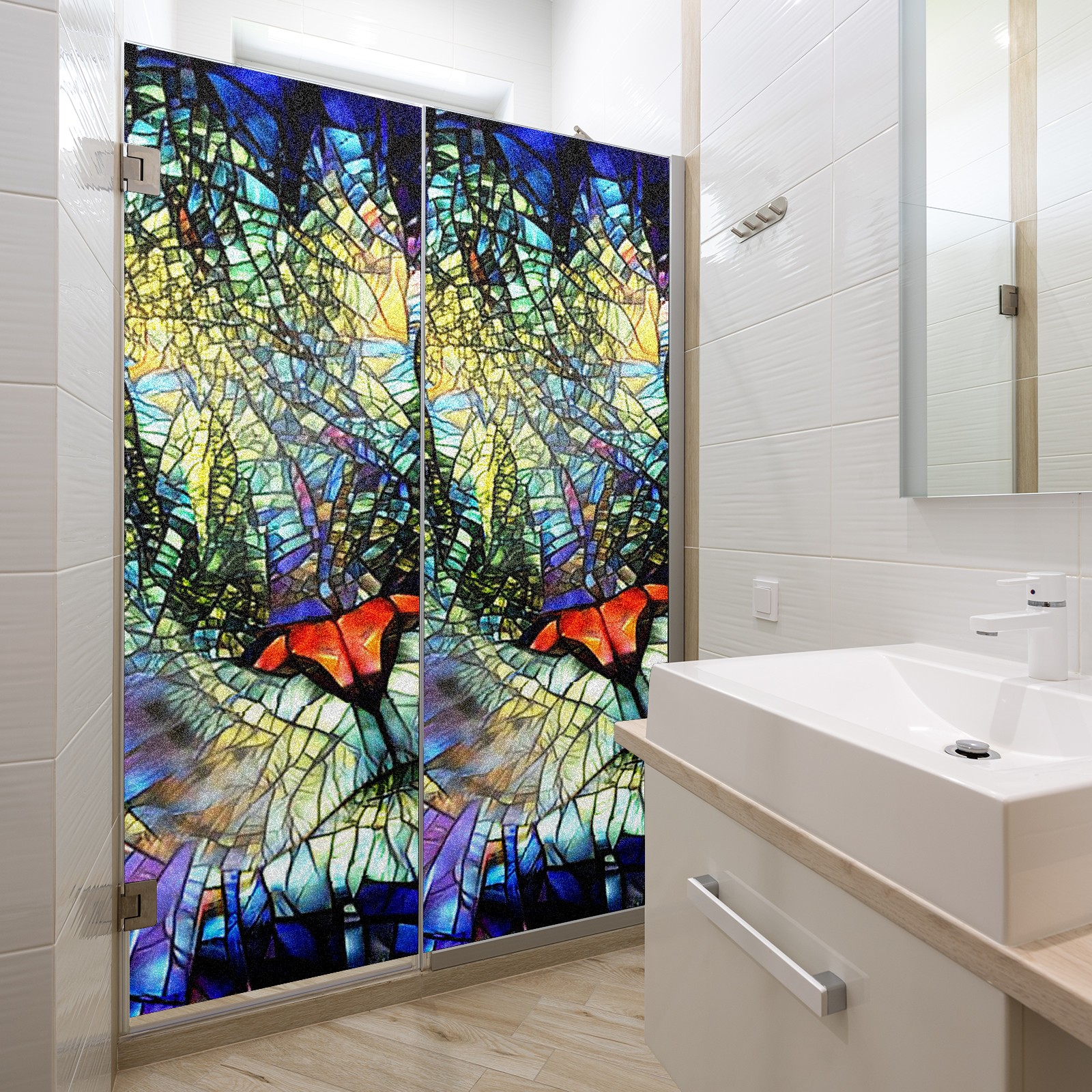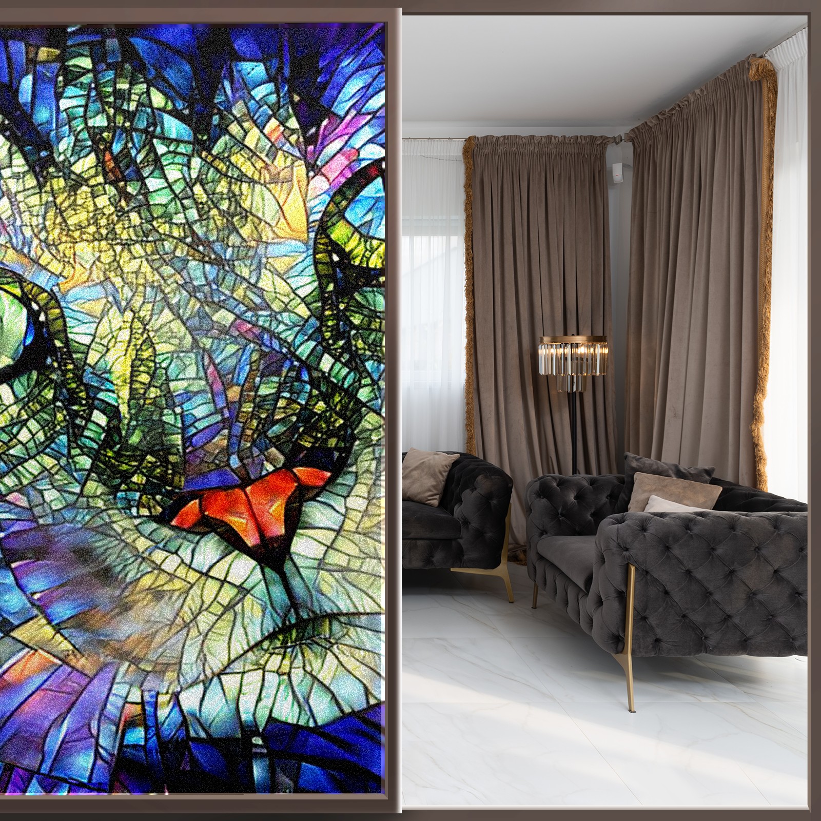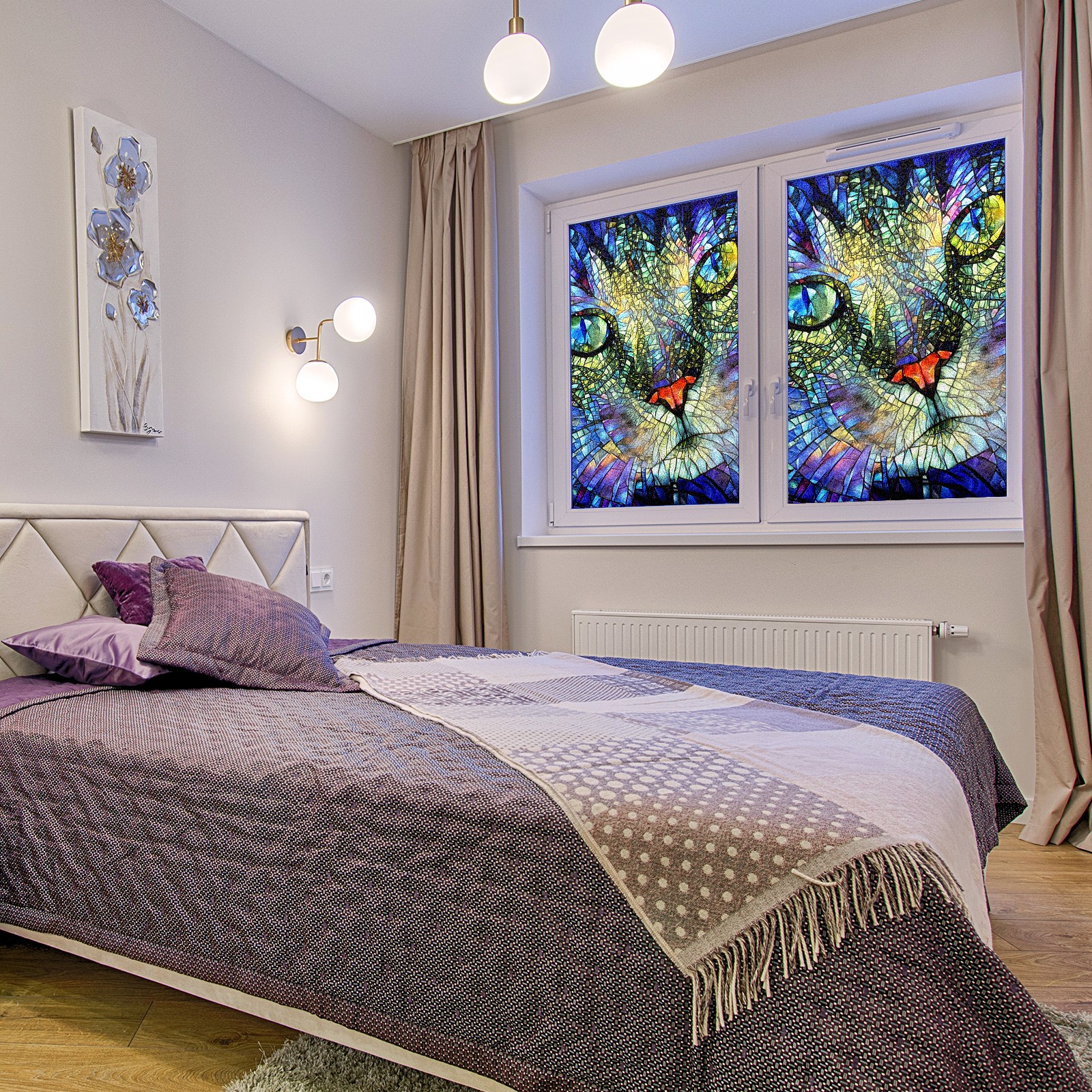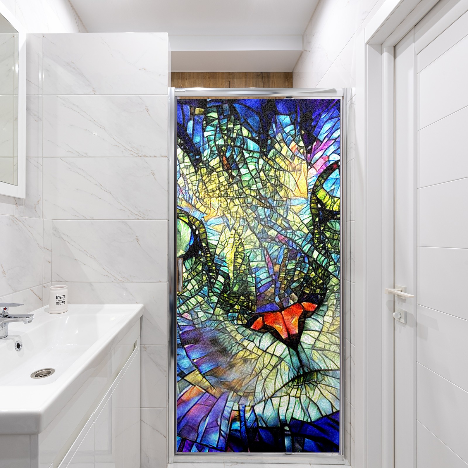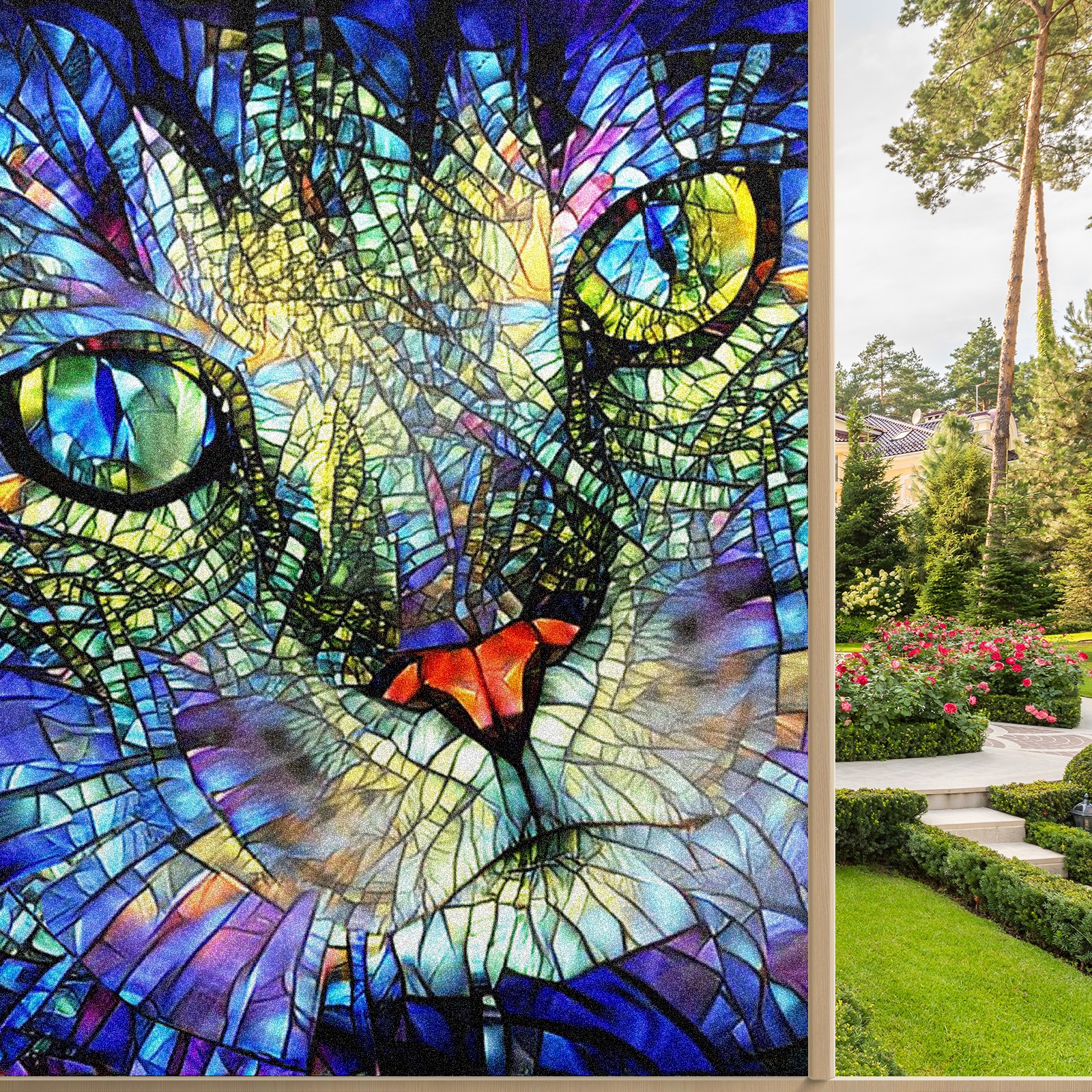 Static Cling Decorative Window Film Frosted Privacy Film Window Clings for Glass Windows No Glue Window Sticker for Bathroom Bedroom Office Stained Glass Cat