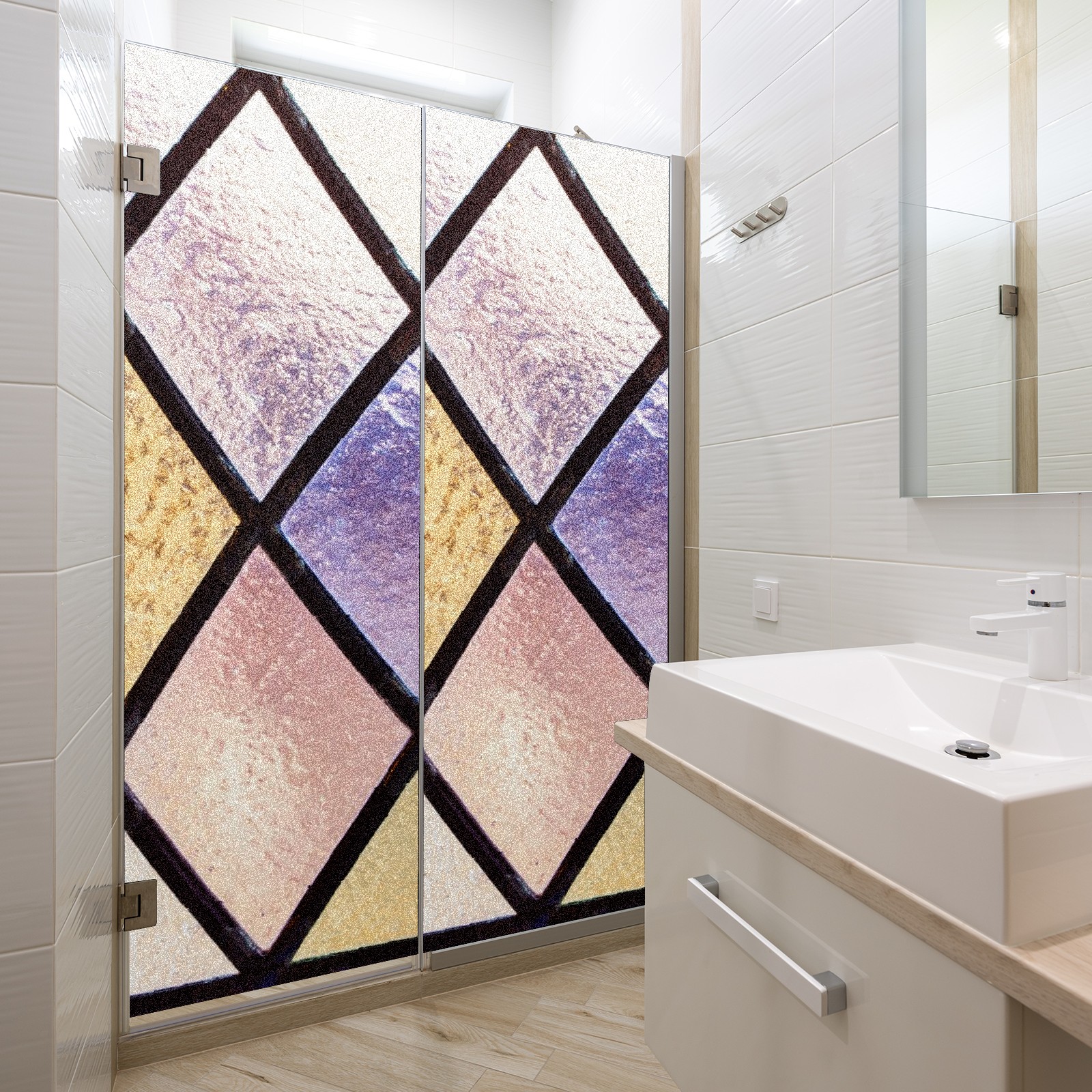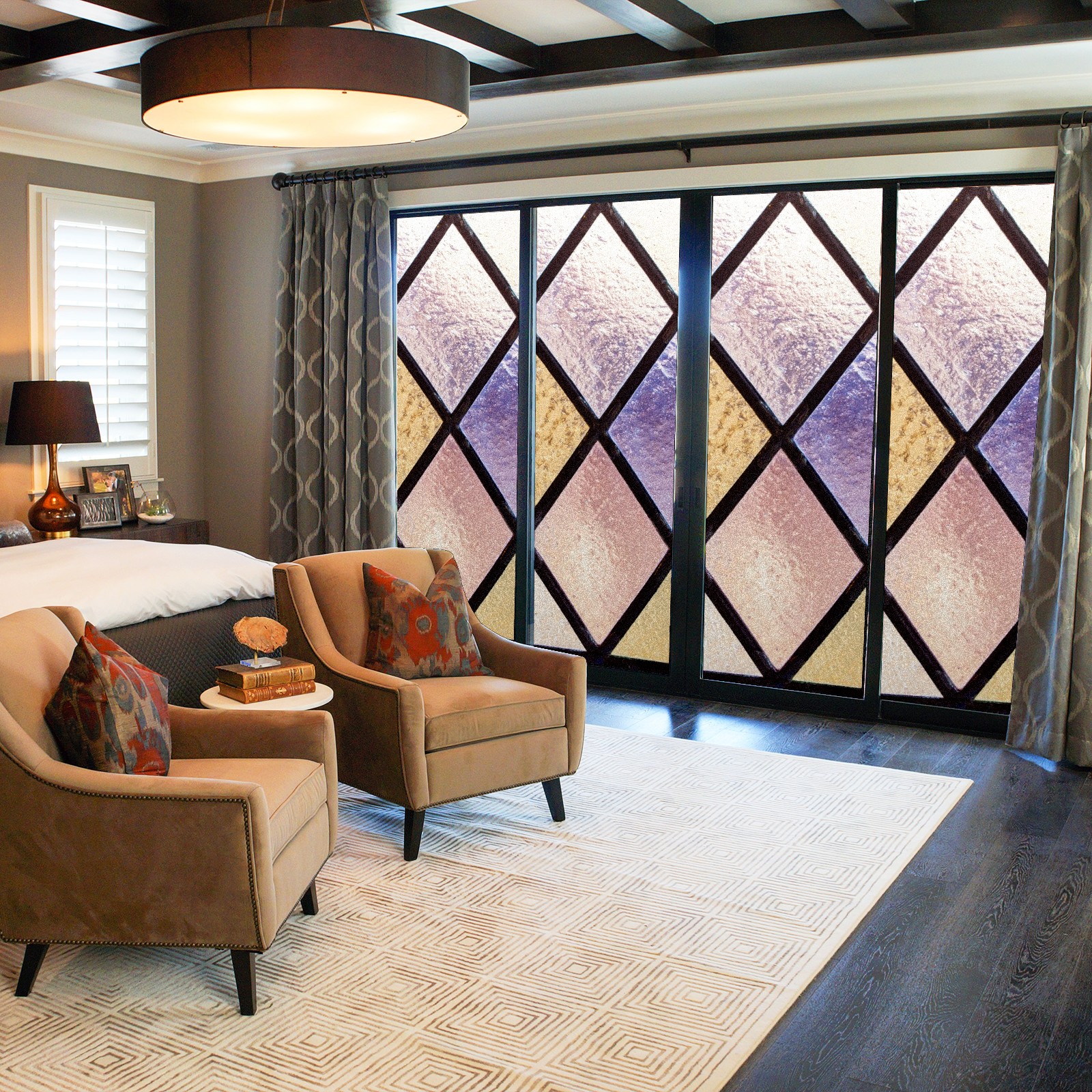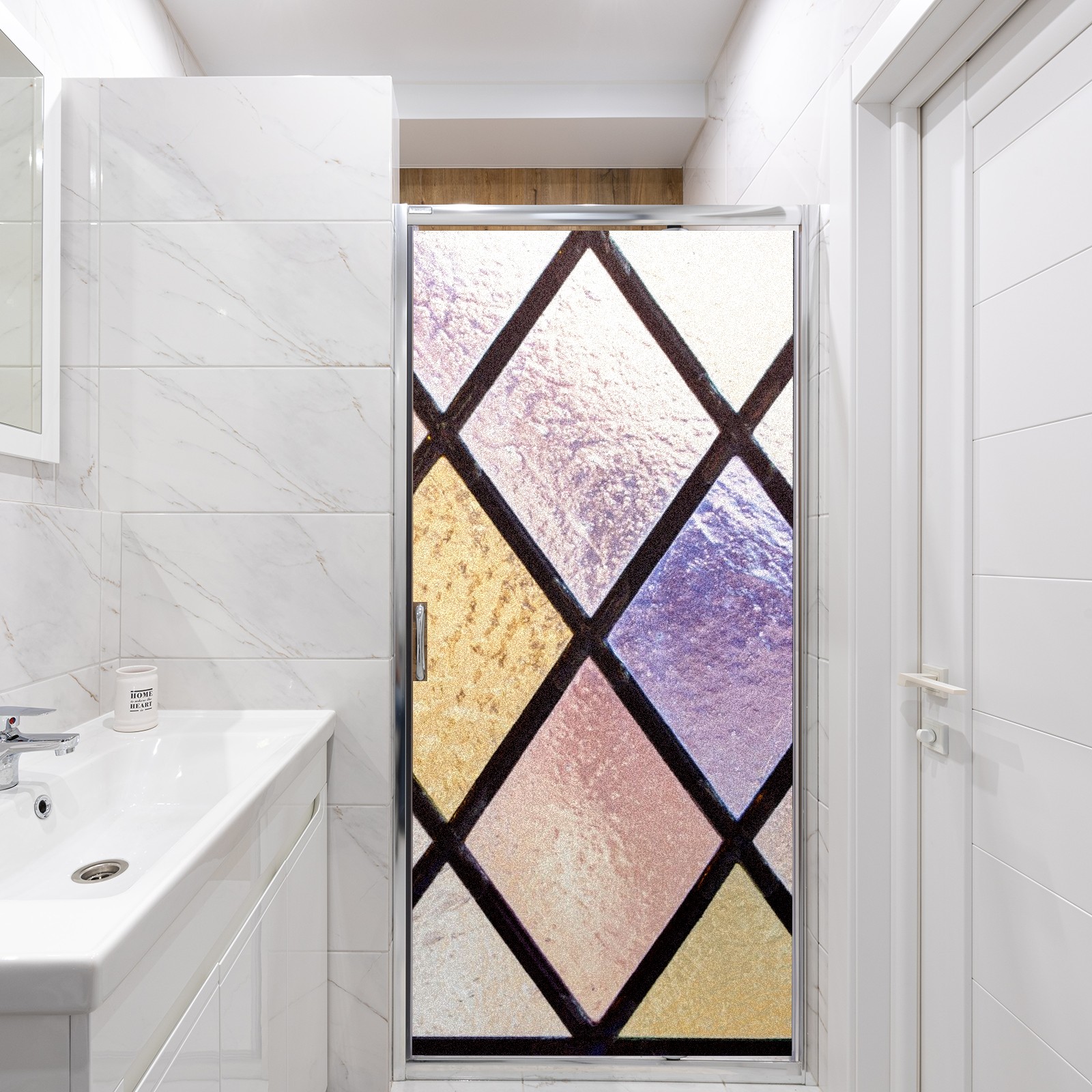 Static Cling Decorative Window Film Frosted Privacy Film Window Clings for Glass Windows No Glue Window Sticker for Bathroom Bedroom Office Purple Pink Stained Glass