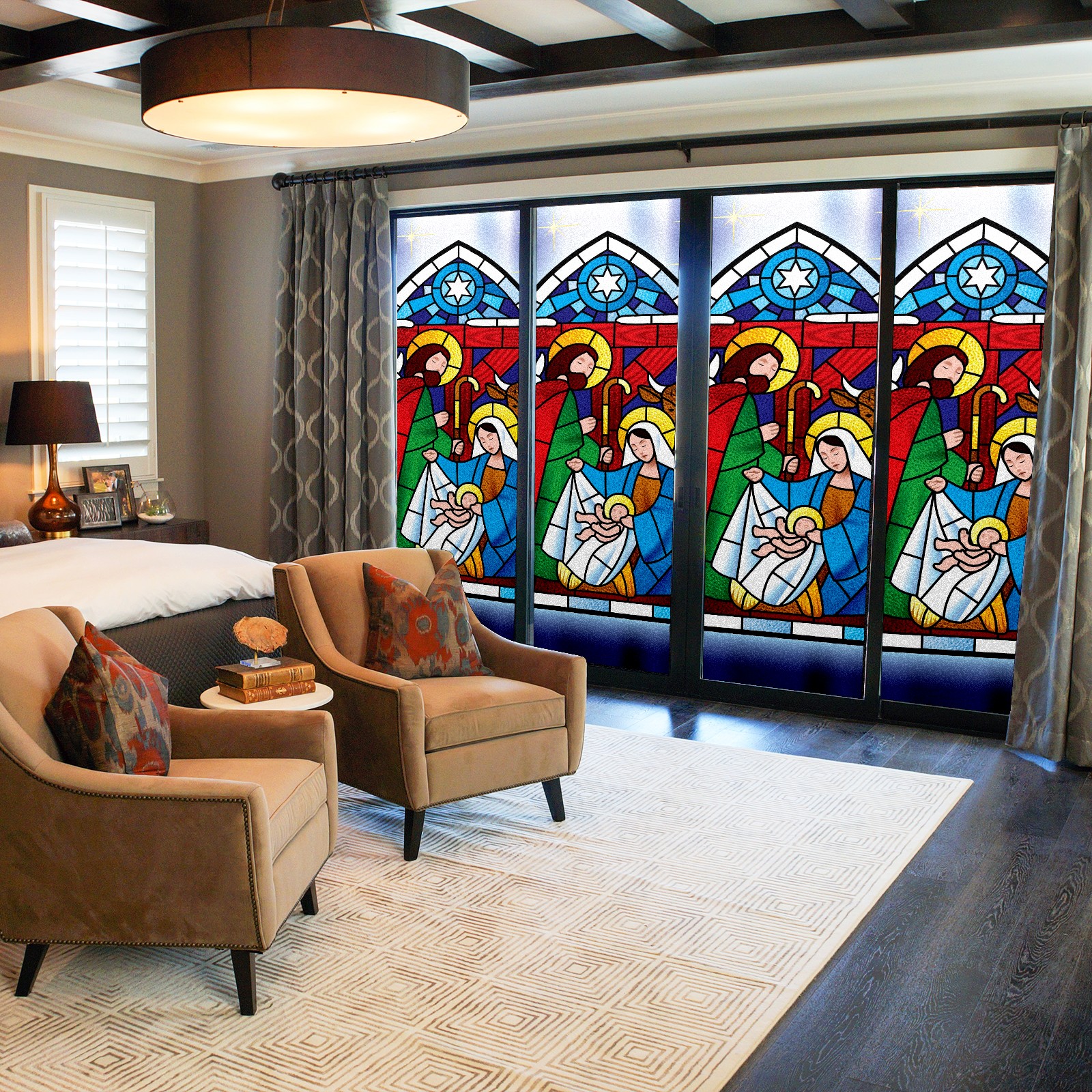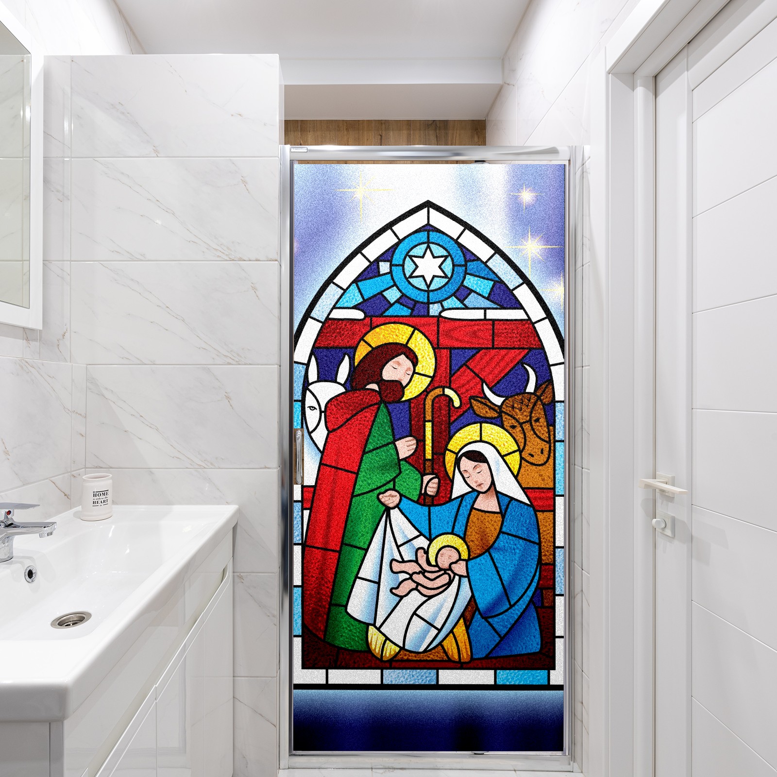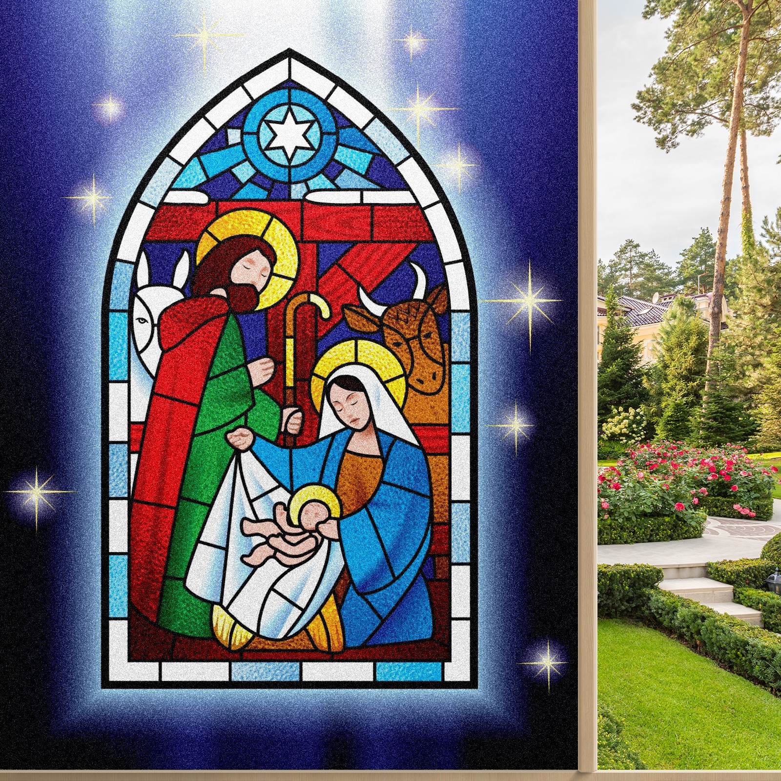 Static Cling Decorative Window Film Frosted Privacy Film Window Clings for Glass Windows No Glue Window Sticker for Bathroom Bedroom Office Christmas Stained Glass