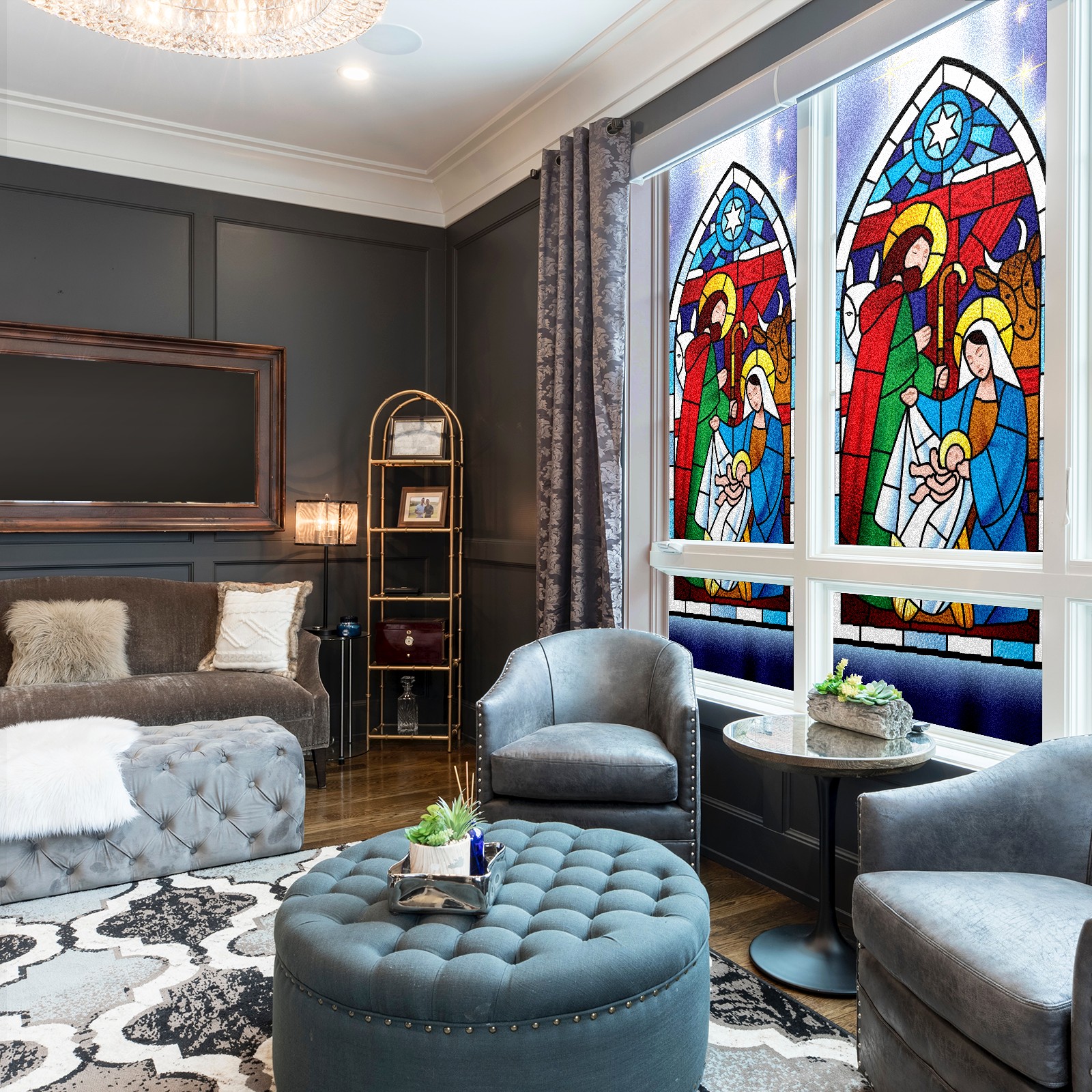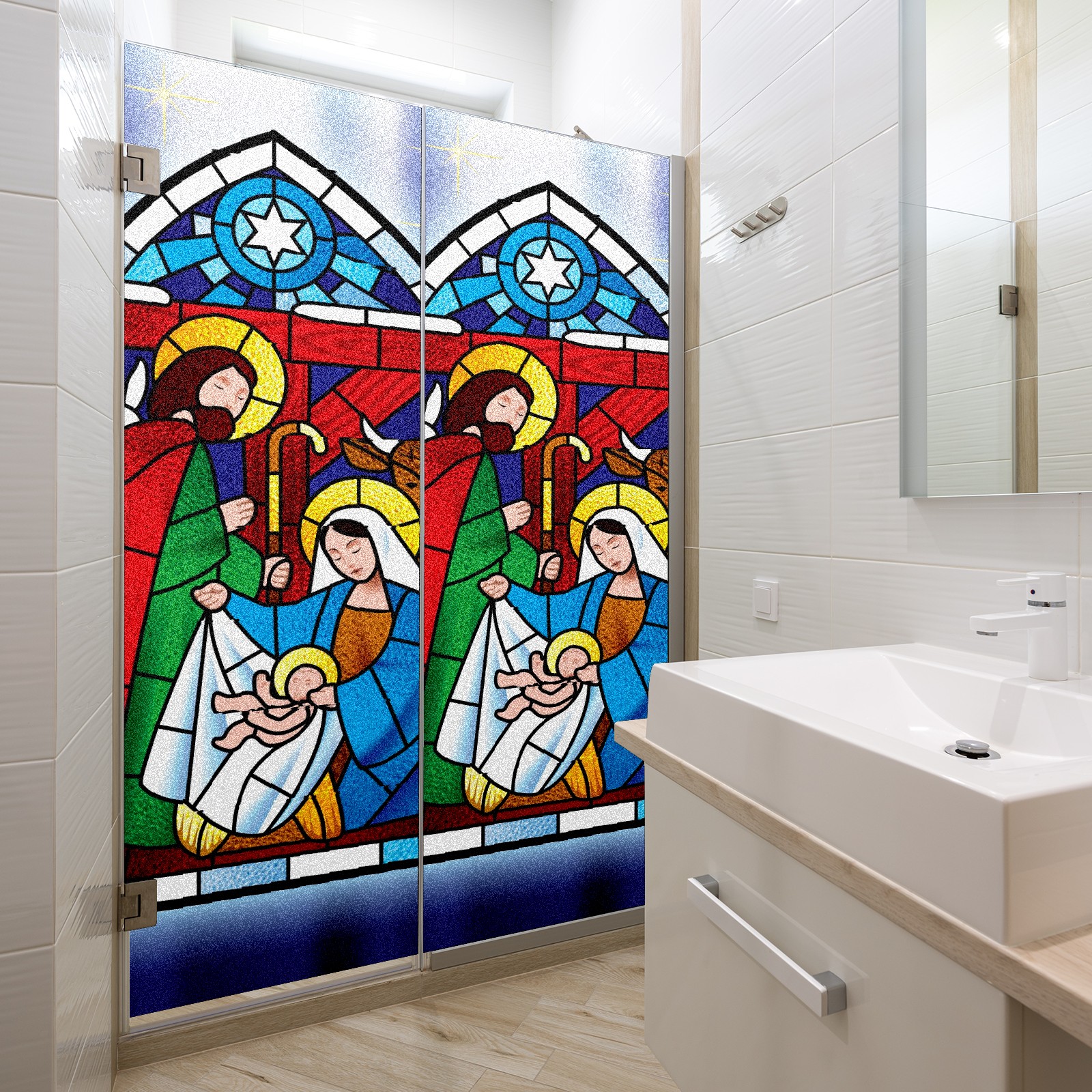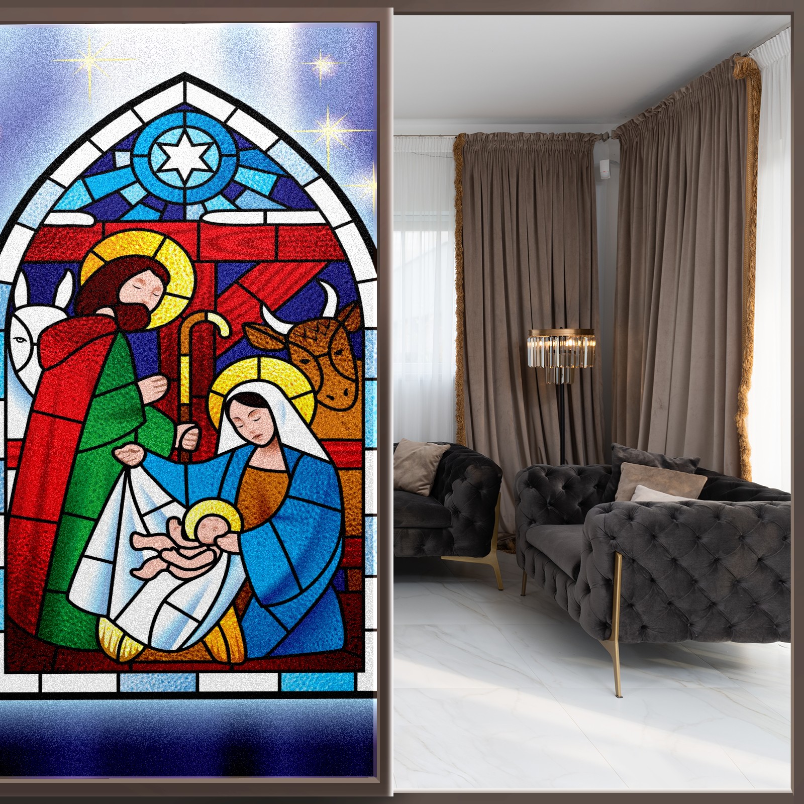 Static Cling Decorative Window Film Frosted Privacy Film Window Clings for Glass Windows No Glue Window Sticker for Bathroom Bedroom Office Christmas Stained Glass