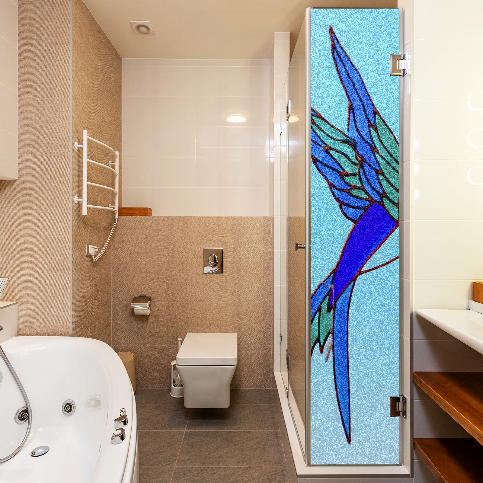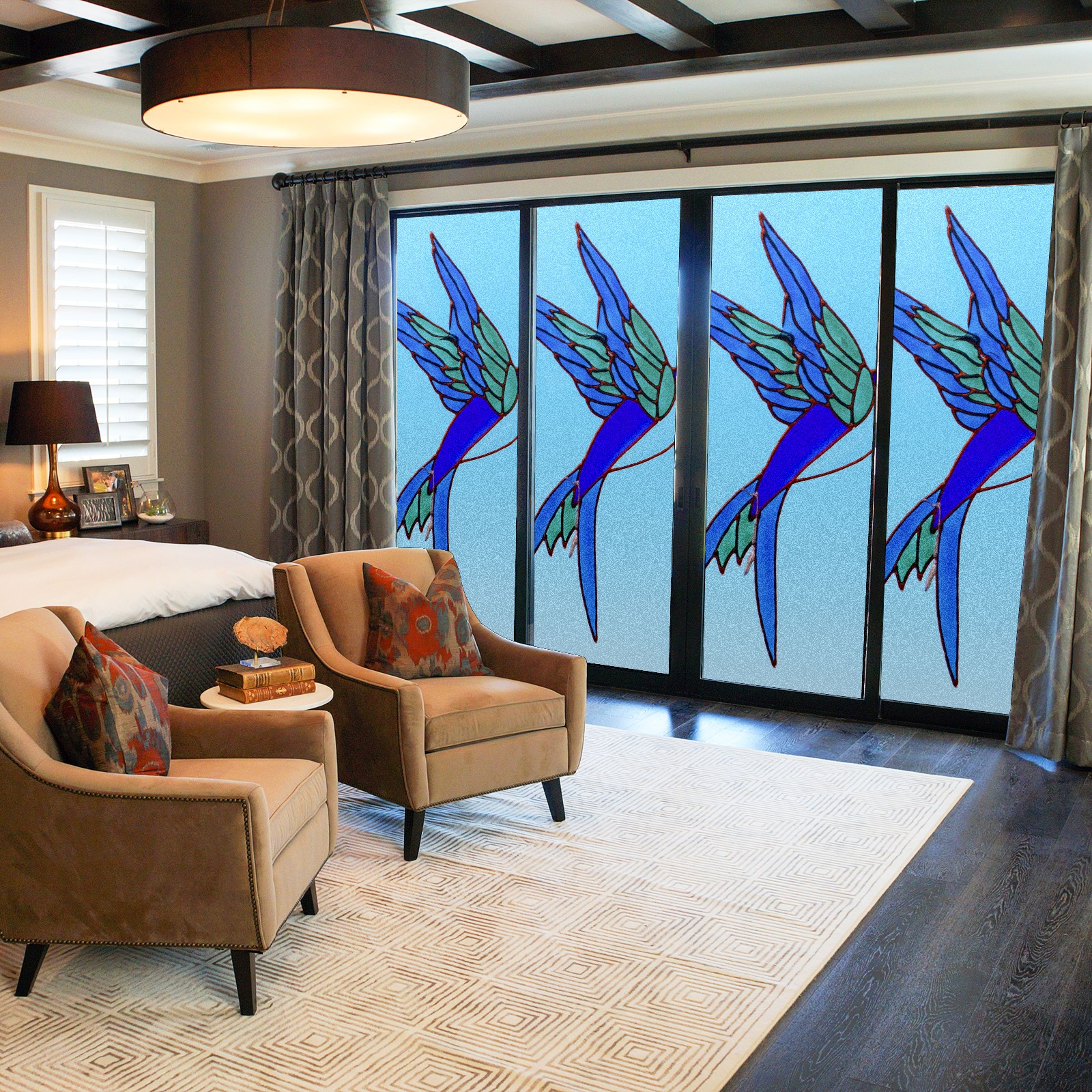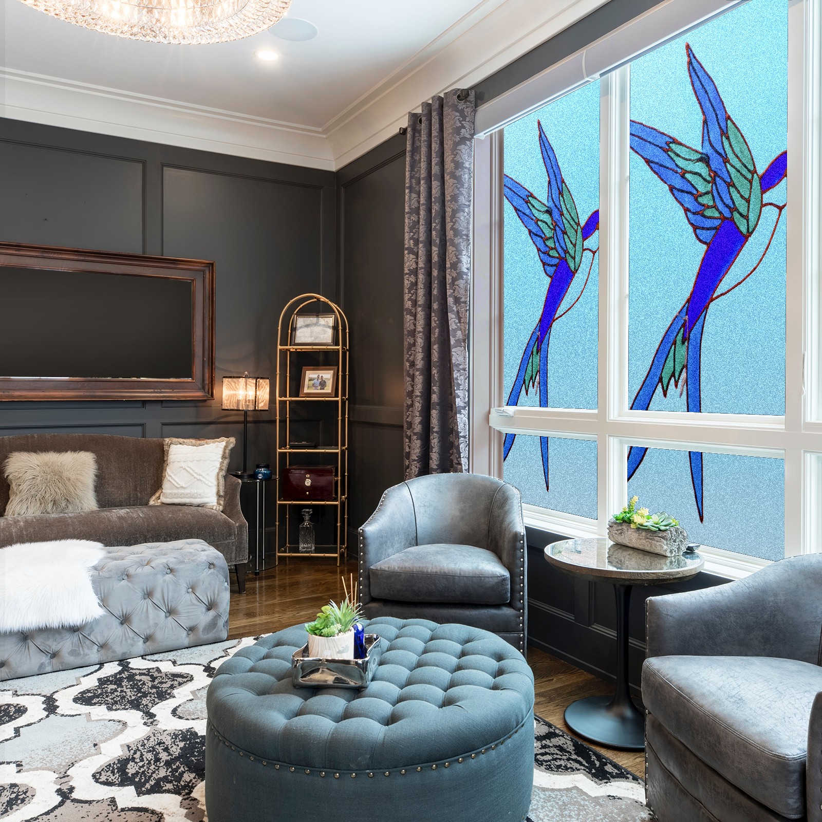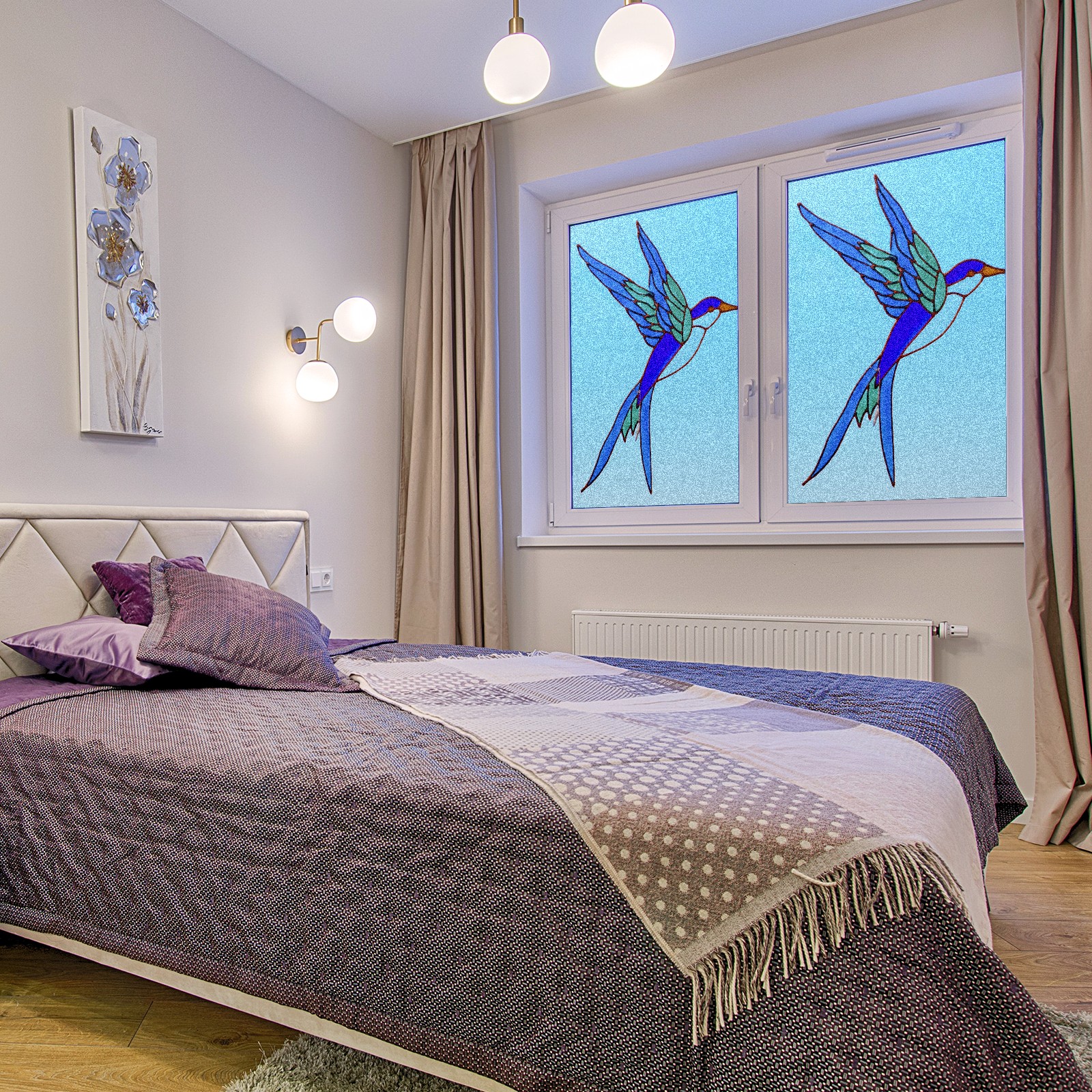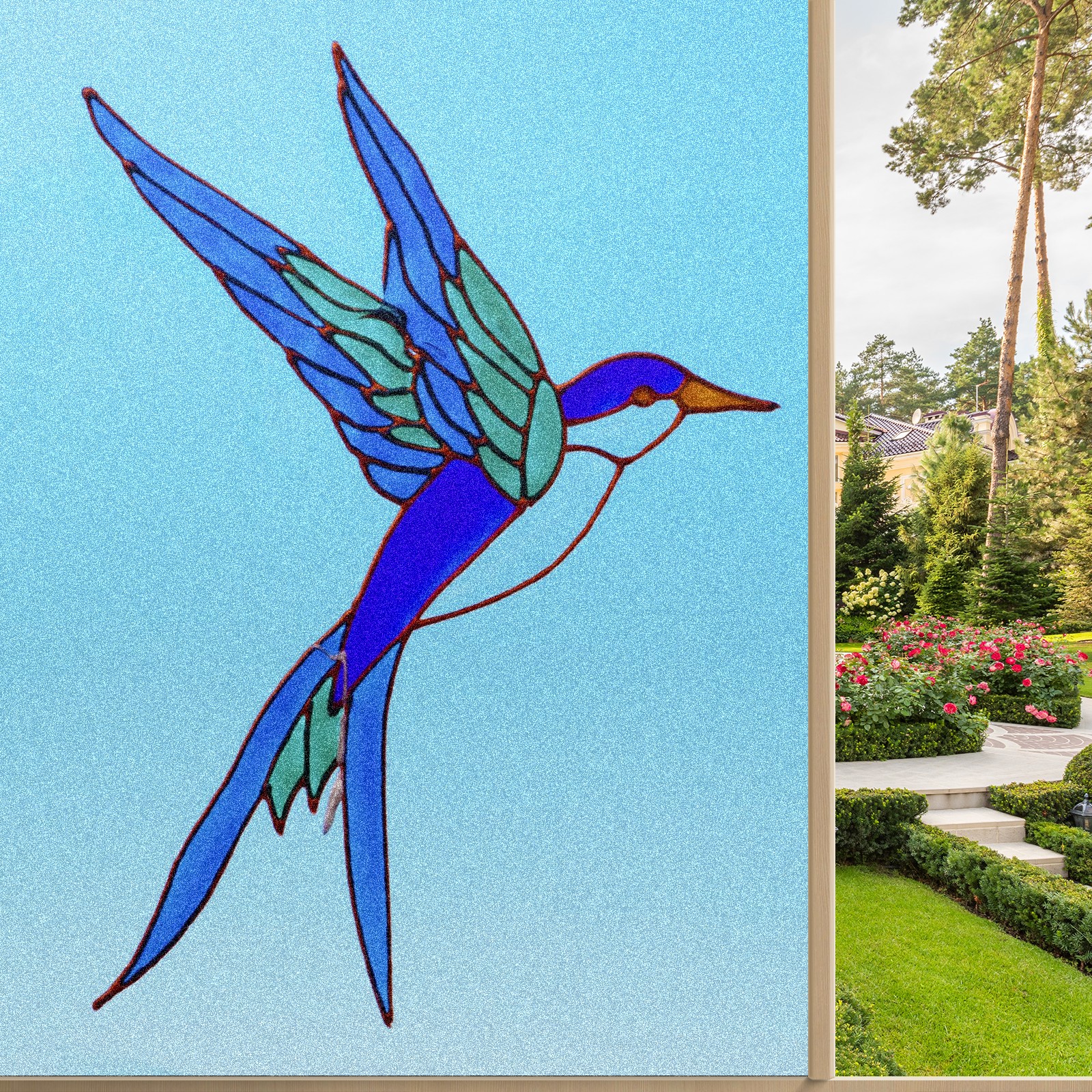 Static Cling Decorative Window Film Frosted Privacy Film Window Clings for Glass Windows No Glue Window Sticker for Bathroom Bedroom Office Stained Glass Bird