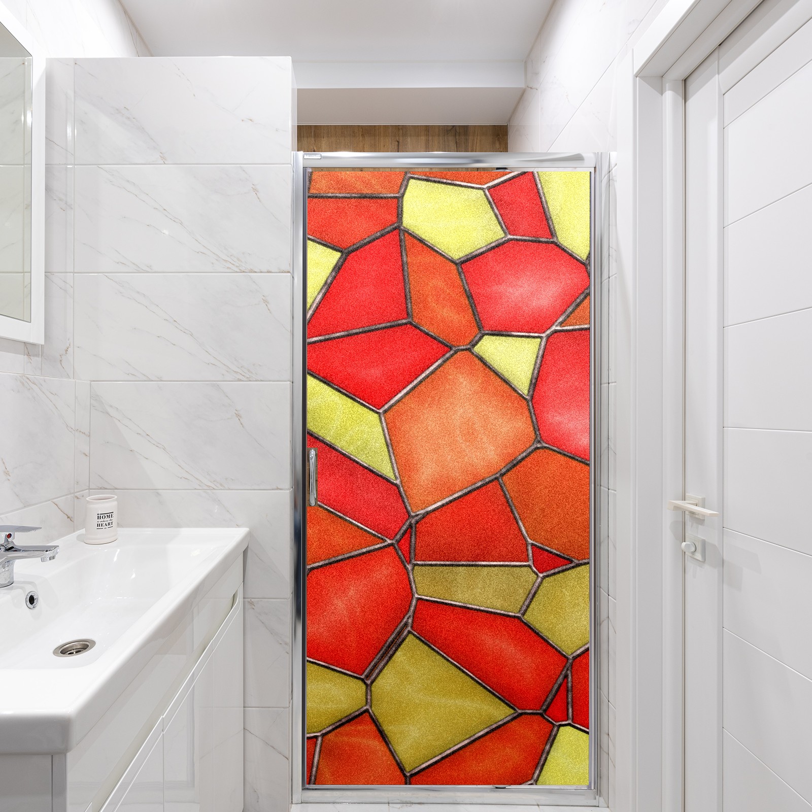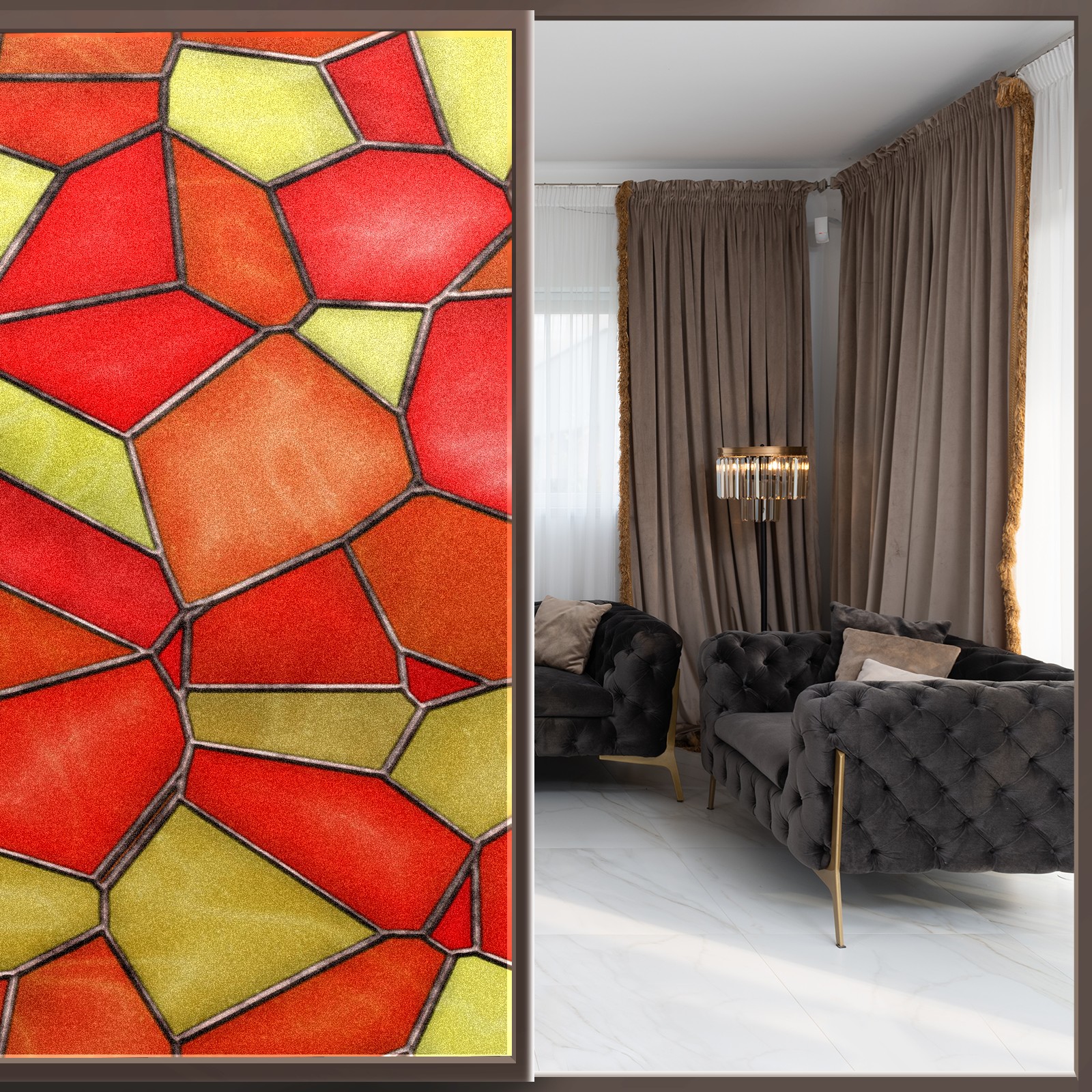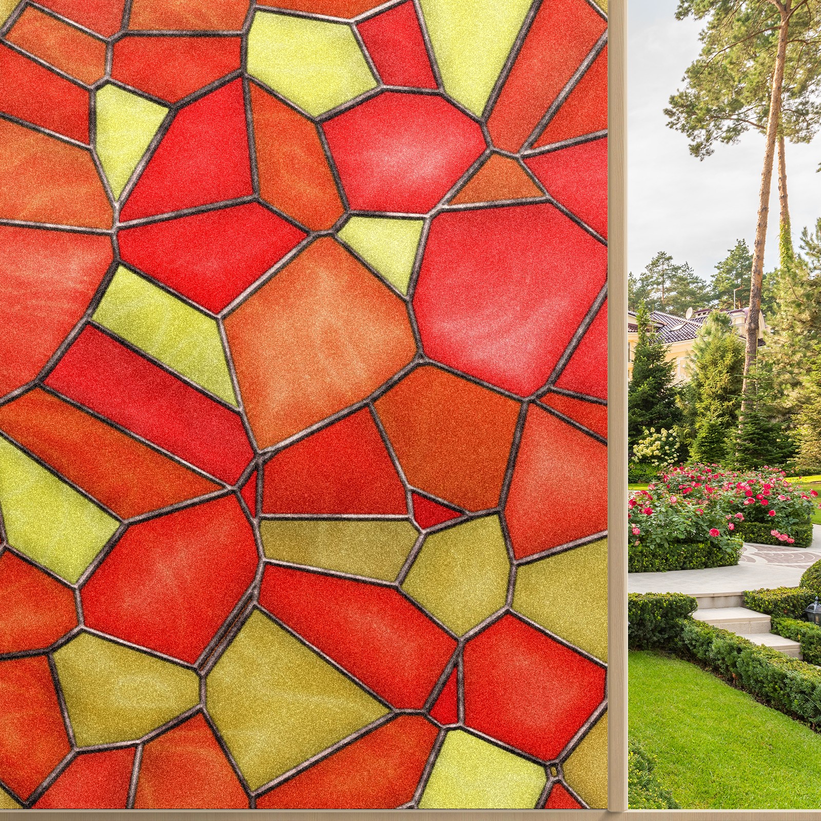 Static Cling Decorative Window Film Frosted Privacy Film Window Clings for Glass Windows No Glue Window Sticker for Bathroom Bedroom Office Red Orange Stained Glass