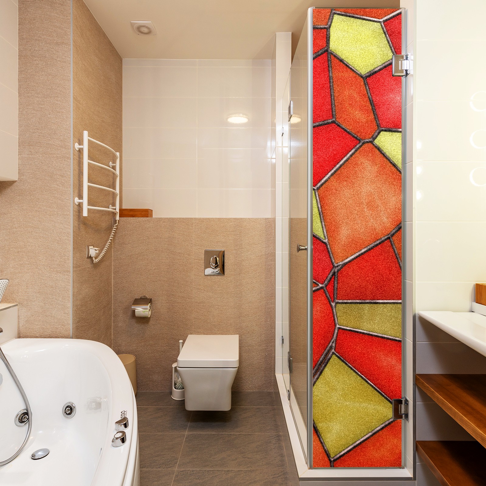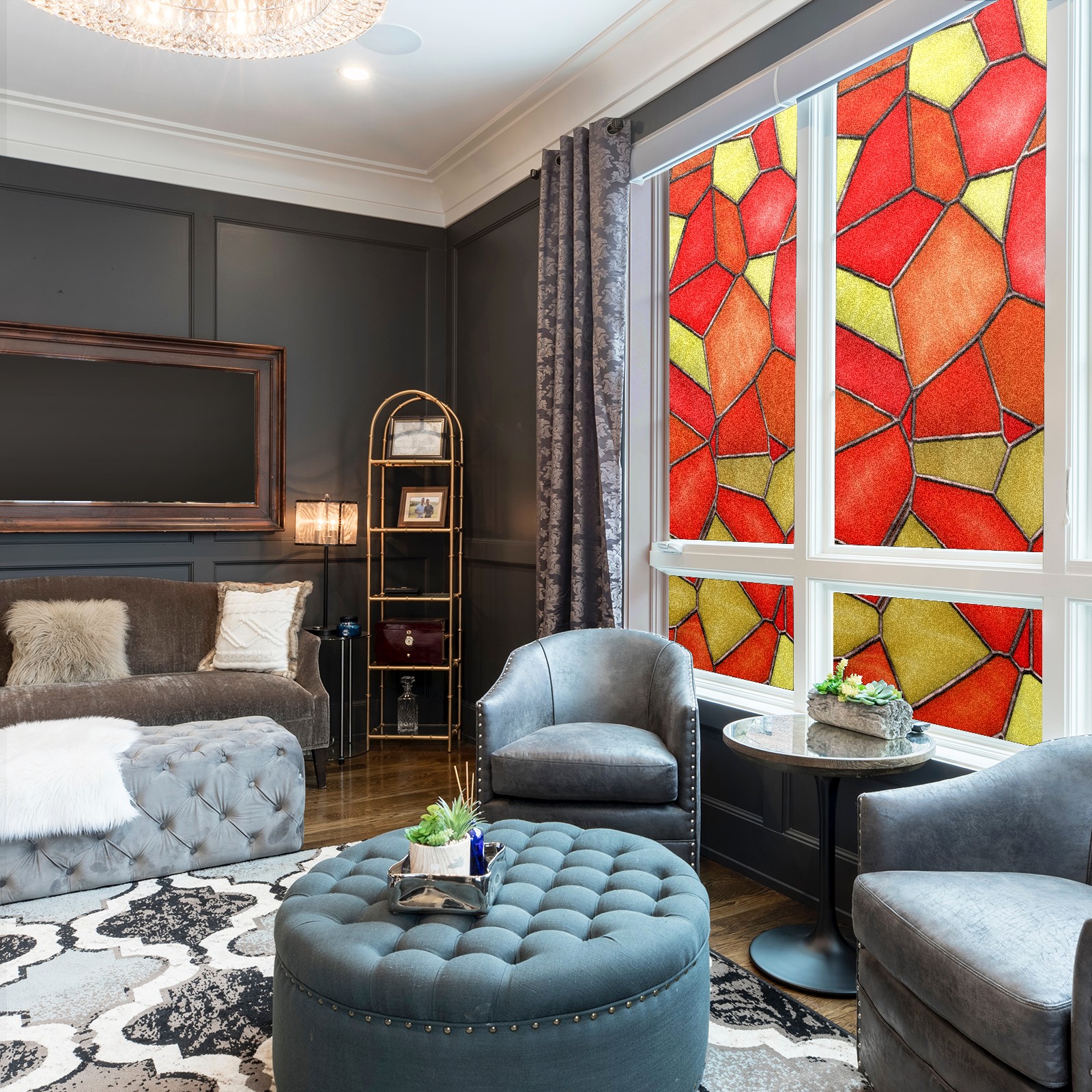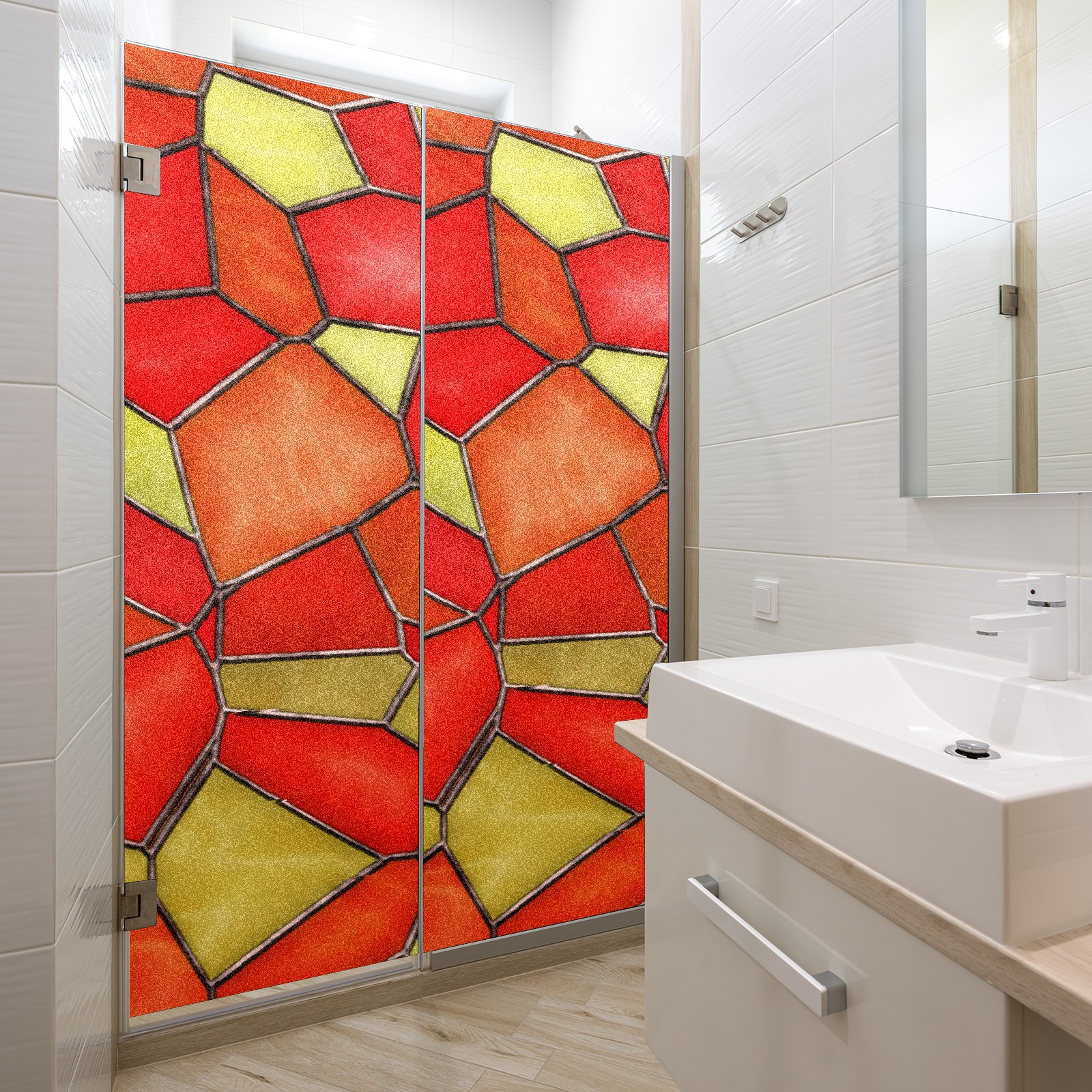 Static Cling Decorative Window Film Frosted Privacy Film Window Clings for Glass Windows No Glue Window Sticker for Bathroom Bedroom Office Red Orange Stained Glass