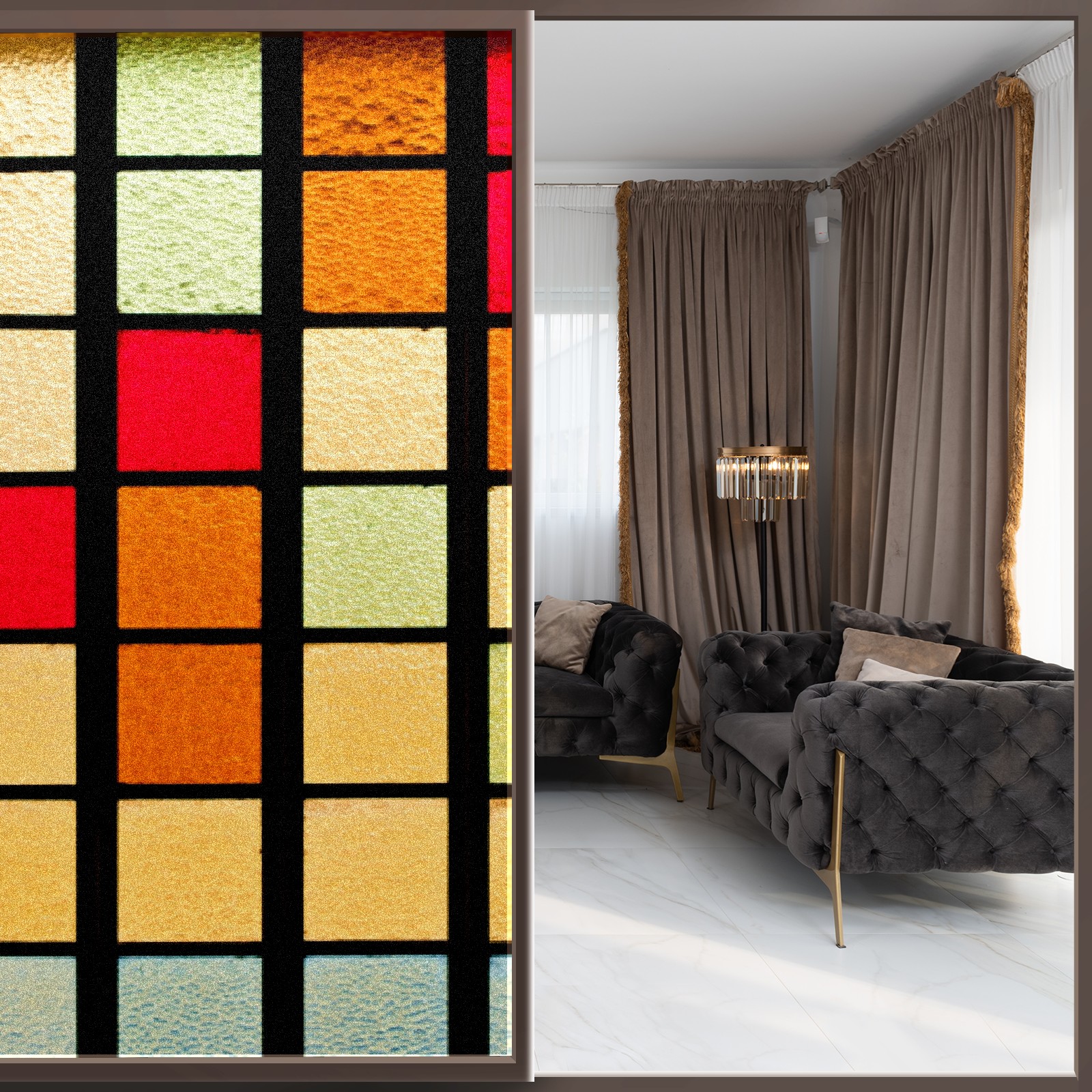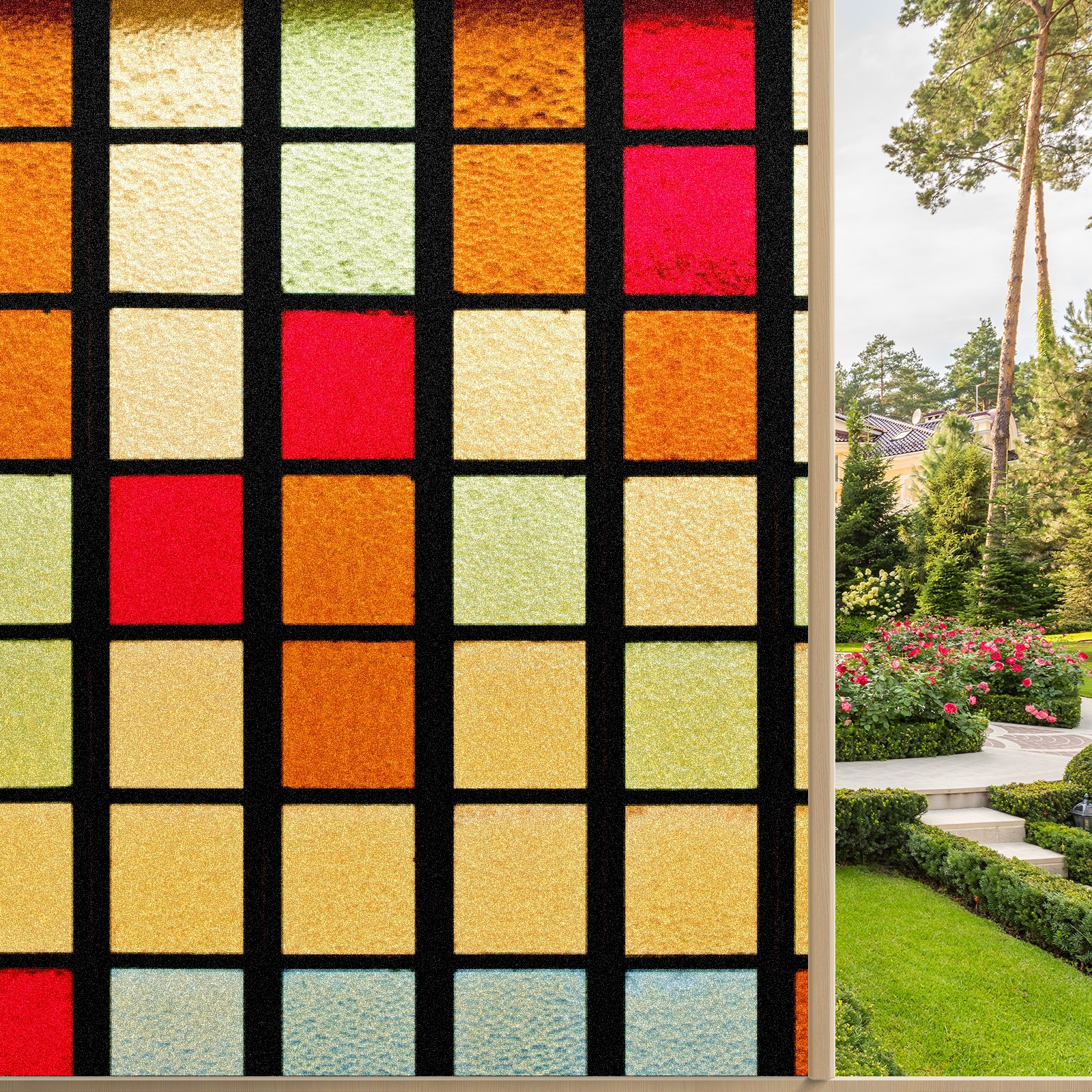 Static Cling Decorative Window Film Frosted Privacy Film Window Clings for Glass Windows No Glue Window Sticker for Bathroom Bedroom Office Abstract Stained Glass