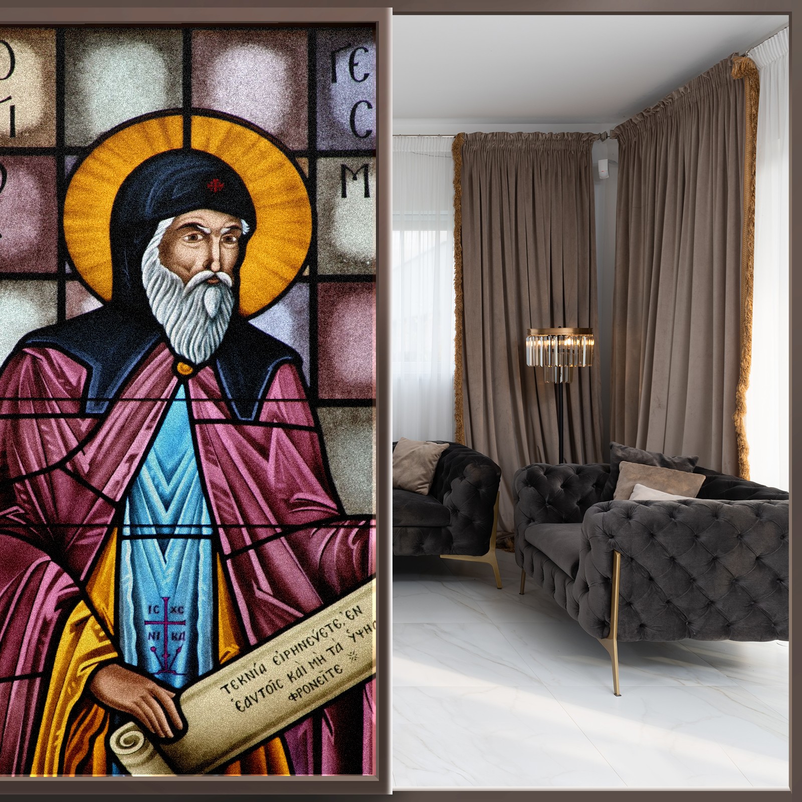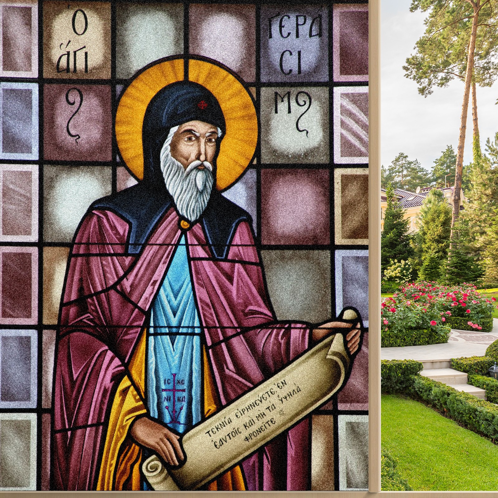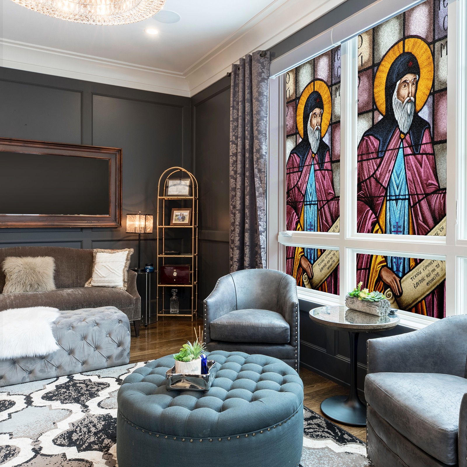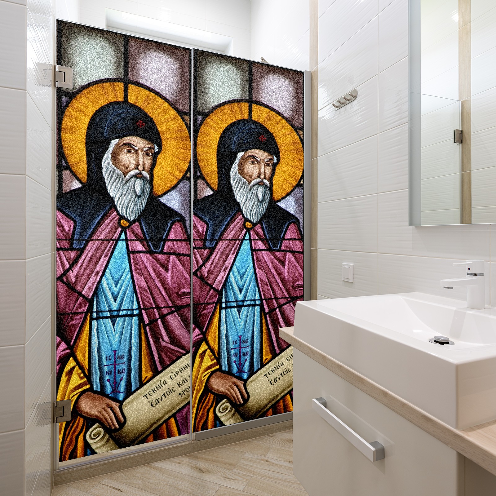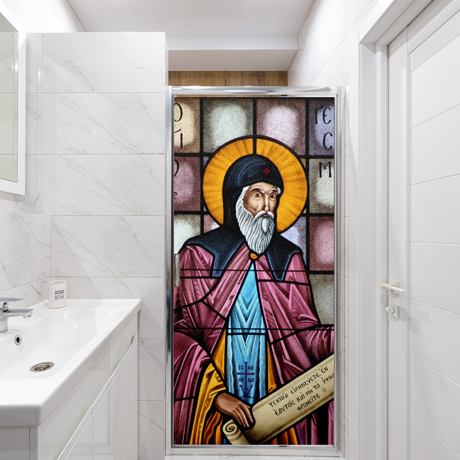 Static Cling Decorative Window Film Frosted Privacy Film Window Clings for Glass Windows No Glue Window Sticker for Bathroom Bedroom Office Stain Glass Window In A Greek Church
