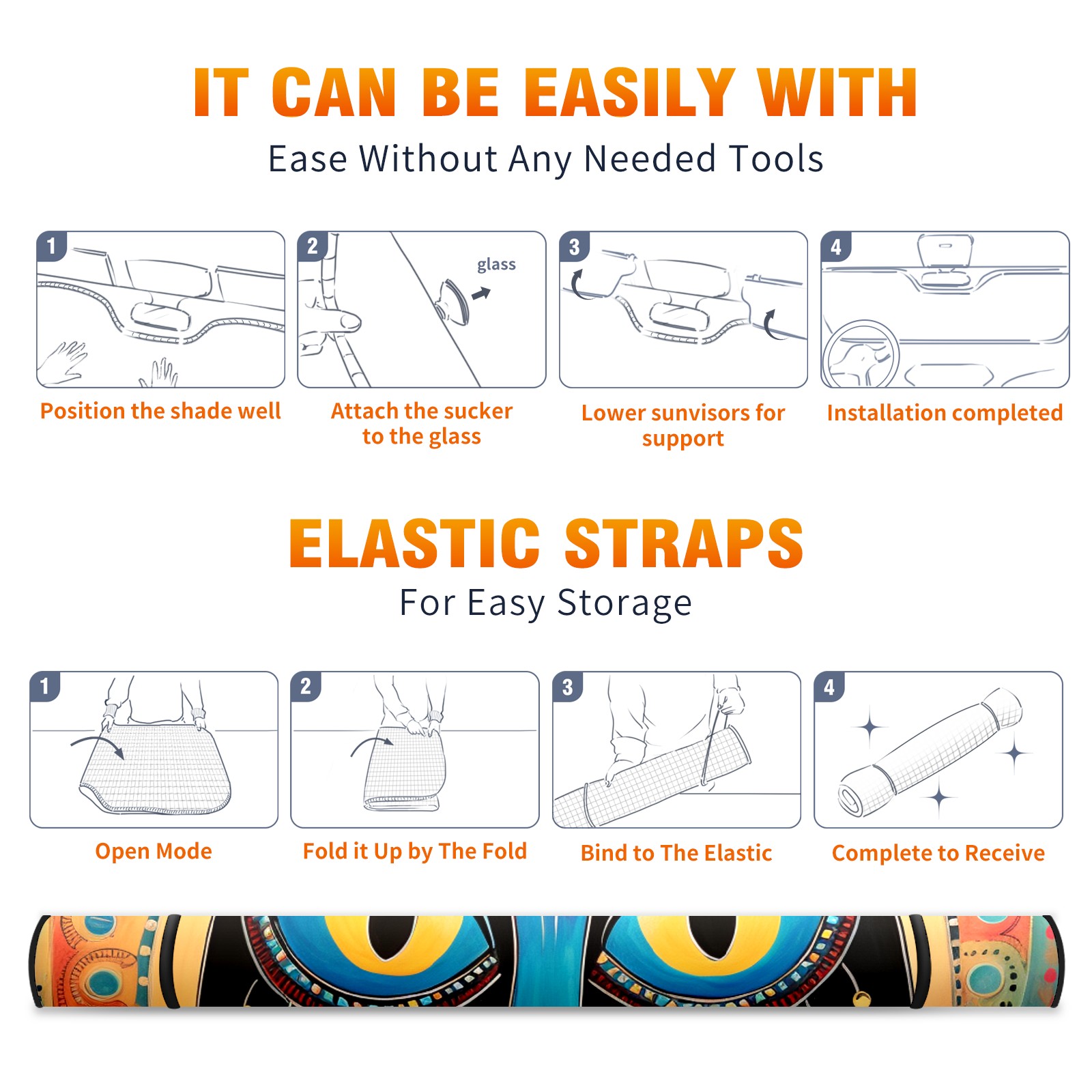 <b>ZXIVGOQFR Foldable Premium Car Windshield Sunshade is your great solution to reduce your car’s interior temperature dramatically! This is definitely a must-have item for your summer travel! </b> <br> ●<b>Size: 63"L x 33.5"W </b> <br></b> ●<b>Blocking Uv Rays & Heat Insulation<br></b> Our vehicle sunshade provides effective UV, sun, and summer heat protection .Maintains dashboards by preventing fading and cracking <br> ●<b>Easy-To-Store Folding Design Makes Storage Convenient <br></b> ZXIVGOQFR car sunshades come with removable suction cups and elastic bands that you can install easily and quickly, and the removable suction cups will not leave any marks on your windows when removed. Within seconds, windshield visor can be installed and removed. When not in use,the front windshield can be easily and effectively placed on the door pocket or the dashboard, which is beautiful and does not take up space in the car.<br> <br> <b>PUT UP A 'PROTECTIVE UMBRELLA' FOR YOUR BELOVED CAR!</b>