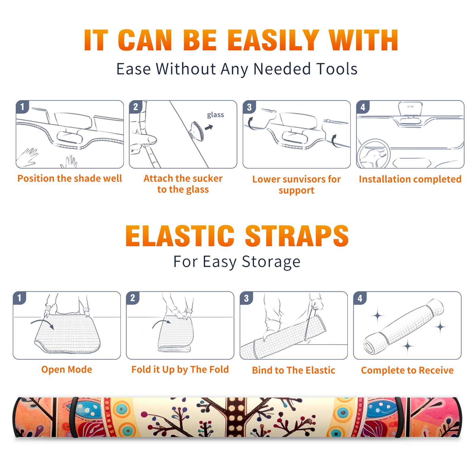 <b>ZXIVGOQFR Foldable Premium Car Windshield Sunshade is your great solution to reduce your car’s interior temperature dramatically! This is definitely a must-have item for your summer travel! </b> <br> ●<b>Size: 63"L x 33.5"W </b> <br></b> ●<b>Blocking Uv Rays & Heat Insulation<br></b> Our vehicle sunshade provides effective UV, sun, and summer heat protection .Maintains dashboards by preventing fading and cracking <br> ●<b>Easy-To-Store Folding Design Makes Storage Convenient <br></b> ZXIVGOQFR car sunshades come with removable suction cups and elastic bands that you can install easily and quickly, and the removable suction cups will not leave any marks on your windows when removed. Within seconds, windshield visor can be installed and removed. When not in use,the front windshield can be easily and effectively placed on the door pocket or the dashboard, which is beautiful and does not take up space in the car.<br> <br> <b>PUT UP A 'PROTECTIVE UMBRELLA' FOR YOUR BELOVED CAR!</b>