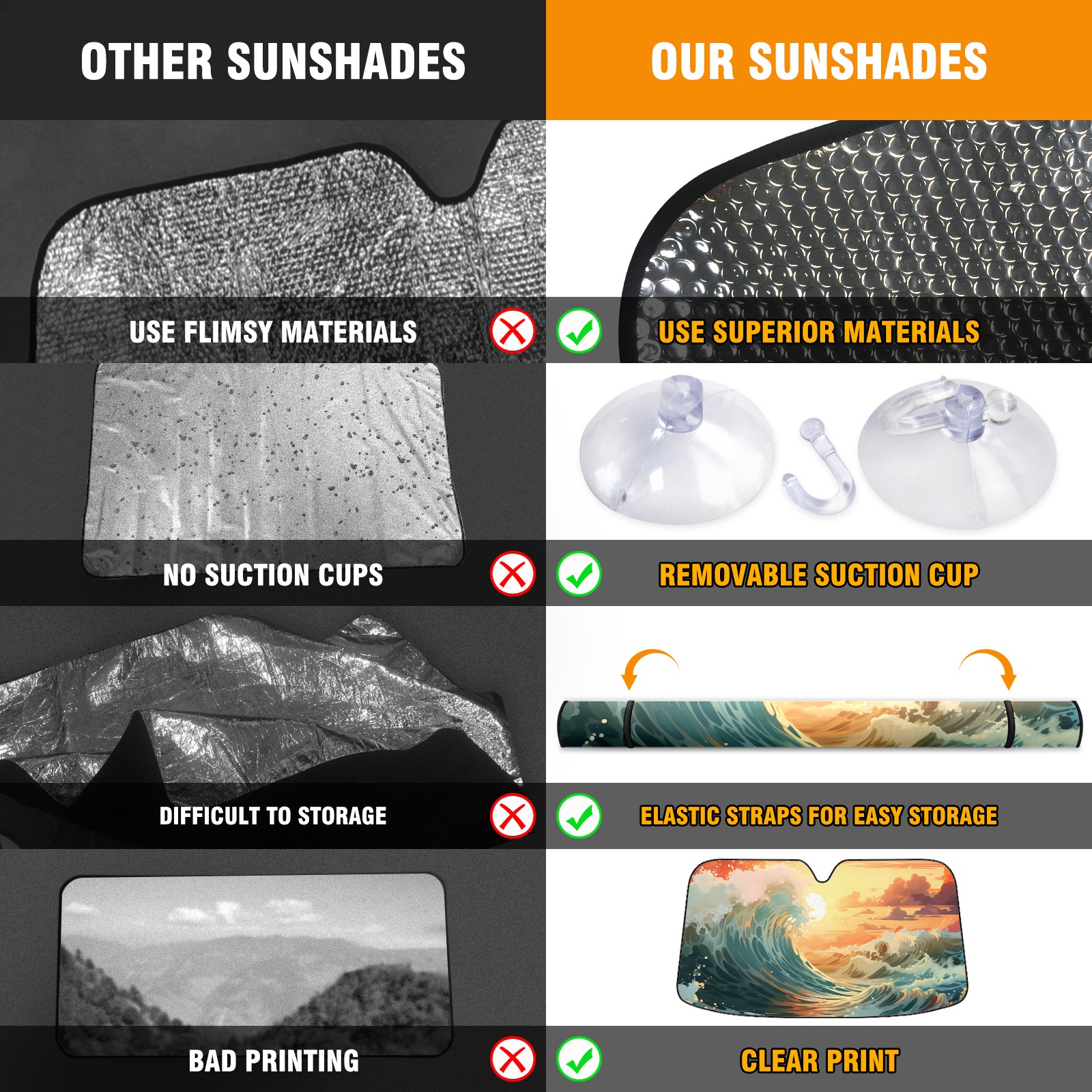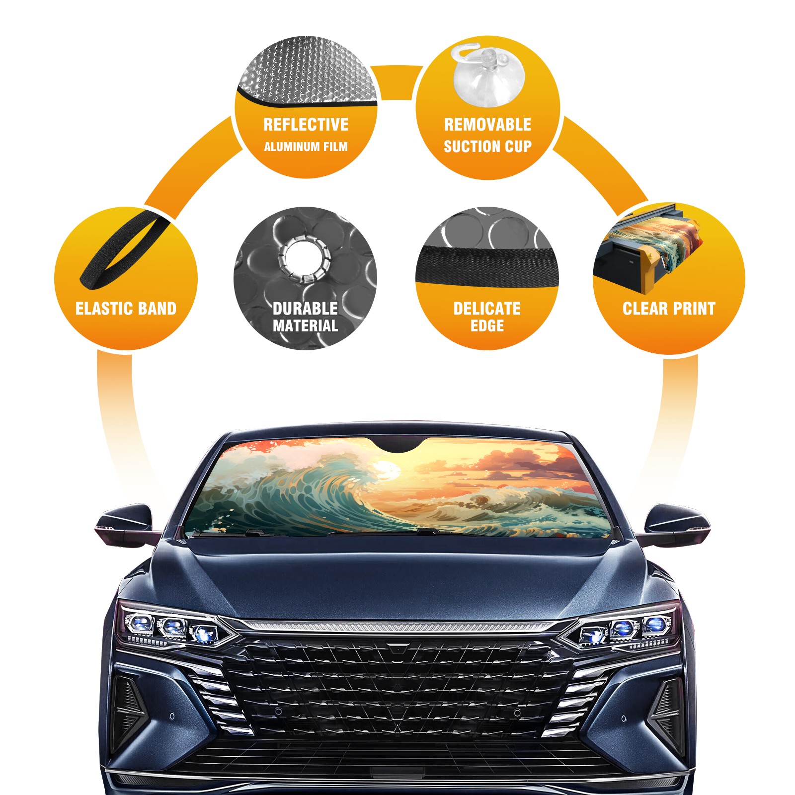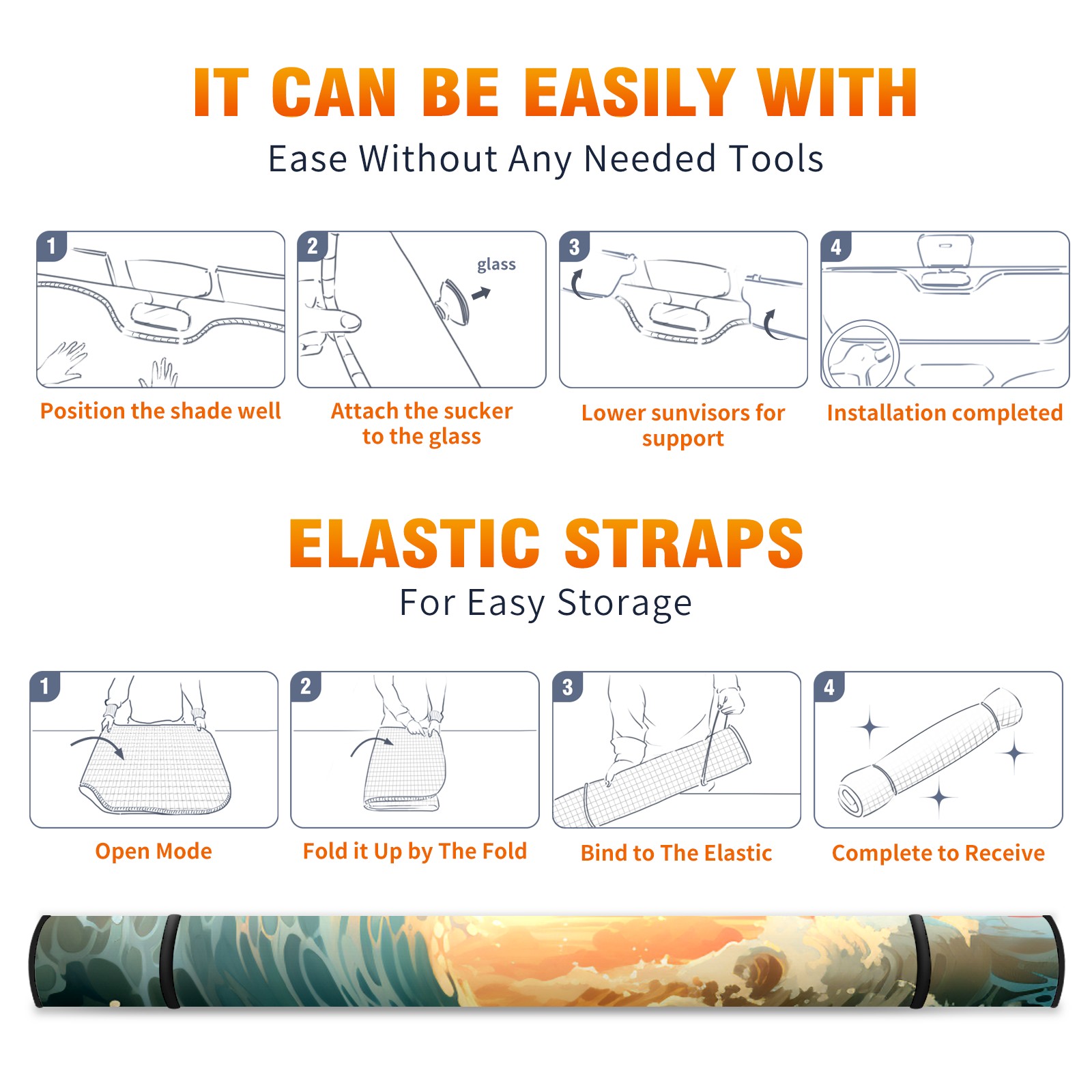 <b>ZXIVGOQFR Foldable Premium Car Windshield Sunshade is your great solution to reduce your car’s interior temperature dramatically! This is definitely a must-have item for your summer travel! </b> <br> ●<b>Size: 63"L x 33.5"W </b> <br></b> ●<b>Blocking Uv Rays & Heat Insulation<br></b> Our vehicle sunshade provides effective UV, sun, and summer heat protection .Maintains dashboards by preventing fading and cracking <br> ●<b>Easy-To-Store Folding Design Makes Storage Convenient <br></b> ZXIVGOQFR car sunshades come with removable suction cups and elastic bands that you can install easily and quickly, and the removable suction cups will not leave any marks on your windows when removed. Within seconds, windshield visor can be installed and removed. When not in use,the front windshield can be easily and effectively placed on the door pocket or the dashboard, which is beautiful and does not take up space in the car.<br> <br> <b>PUT UP A 'PROTECTIVE UMBRELLA' FOR YOUR BELOVED CAR!</b>