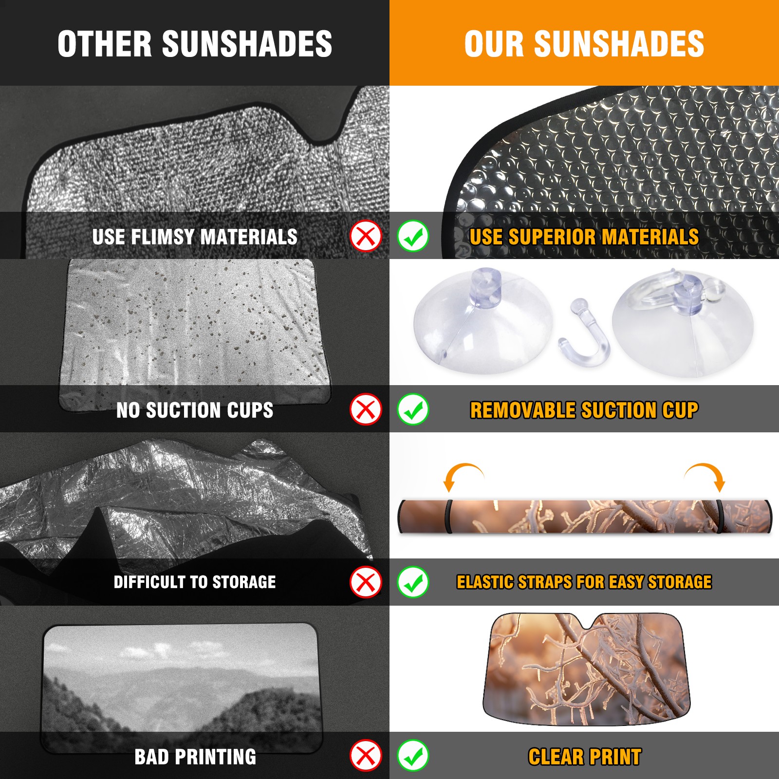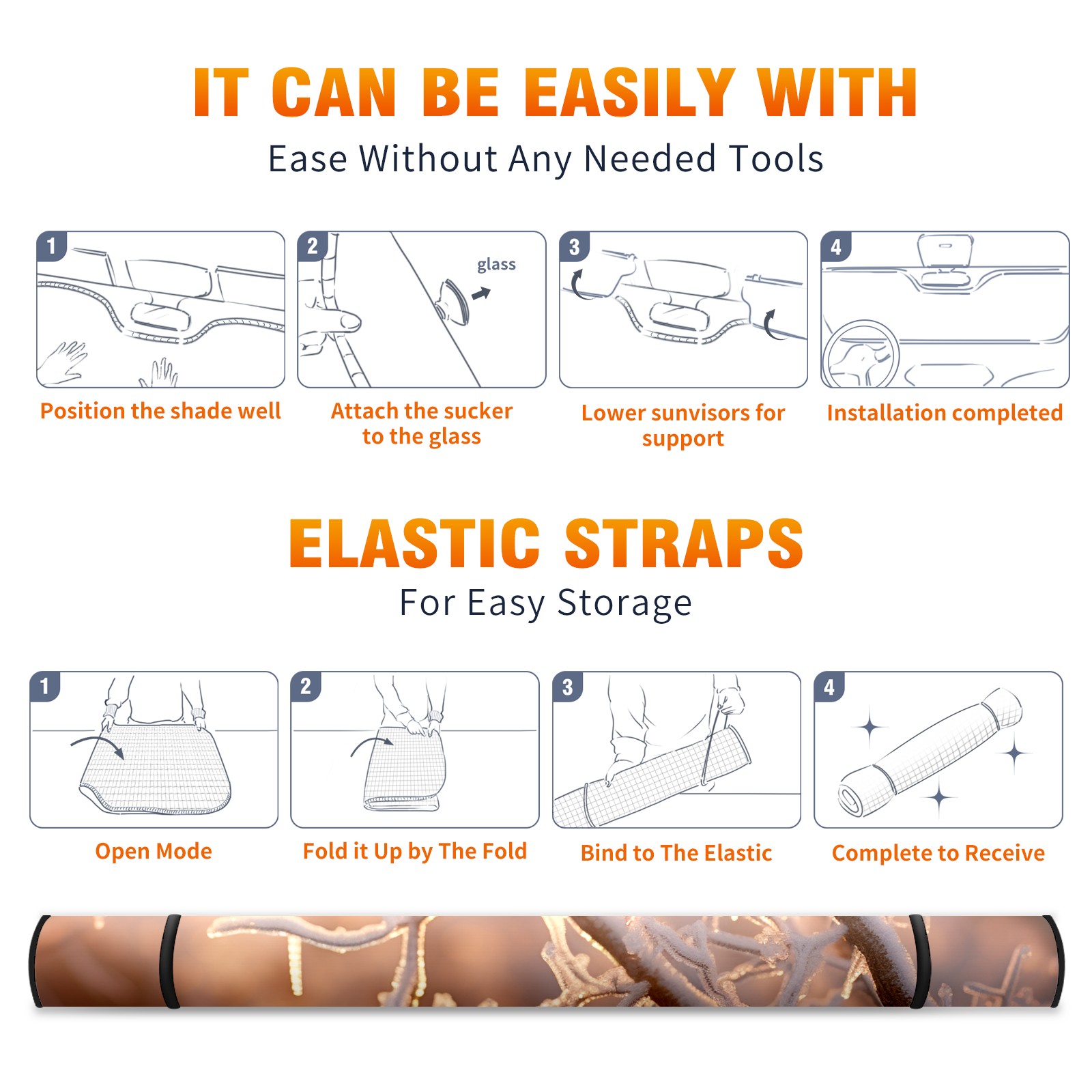 • <b>ZXIVGOQFR Foldable Premium Car Windshield Sunshade is your great solution to reduce your car’s interior temperature dramatically! This is definitely a must-have item for your summer travel! </b> <br> ●<b>Size: 63"L x 33.5"W </b> <br></b> ●<b>Blocking Uv Rays & Heat Insulation<br></b> Our vehicle sunshade provides effective UV, sun, and summer heat protection .Maintains dashboards by preventing fading and cracking <br> ●<b>Easy-To-Store Folding Design Makes Storage Convenient <br></b> ZXIVGOQFR car sunshades come with removable suction cups and elastic bands that you can install easily and quickly, and the removable suction cups will not leave any marks on your windows when removed. Within seconds, windshield visor can be installed and removed. When not in use,the front windshield can be easily and effectively placed on the door pocket or the dashboard, which is beautiful and does not take up space in the car.<br> <br> <b>PUT UP A 'PROTECTIVE UMBRELLA' FOR YOUR BELOVED CAR!</b>