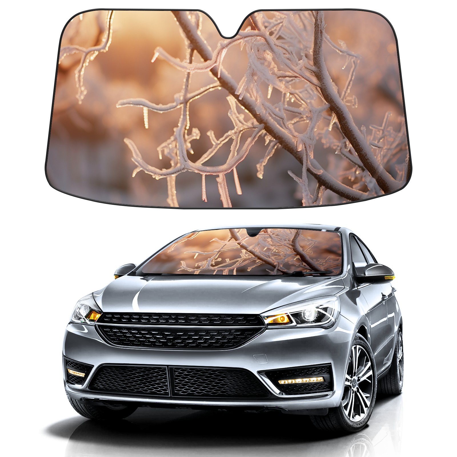 <b>ZXIVGOQFR Foldable Premium Car Windshield Sunshade is your great solution to reduce your car’s interior temperature dramatically! This is definitely a must-have item for your summer travel! </b> <br> ●<b>Size: 63"L x 33.5"W </b> <br></b> ●<b>Blocking Uv Rays & Heat Insulation<br></b> Our vehicle sunshade provides effective UV, sun, and summer heat protection .Maintains dashboards by preventing fading and cracking <br> ●<b>Easy-To-Store Folding Design Makes Storage Convenient <br></b> ZXIVGOQFR car sunshades come with removable suction cups and elastic bands that you can install easily and quickly, and the removable suction cups will not leave any marks on your windows when removed. Within seconds, windshield visor can be installed and removed. When not in use,the front windshield can be easily and effectively placed on the door pocket or the dashboard, which is beautiful and does not take up space in the car.<br> <br> <b>PUT UP A 'PROTECTIVE UMBRELLA' FOR YOUR BELOVED CAR!</b>