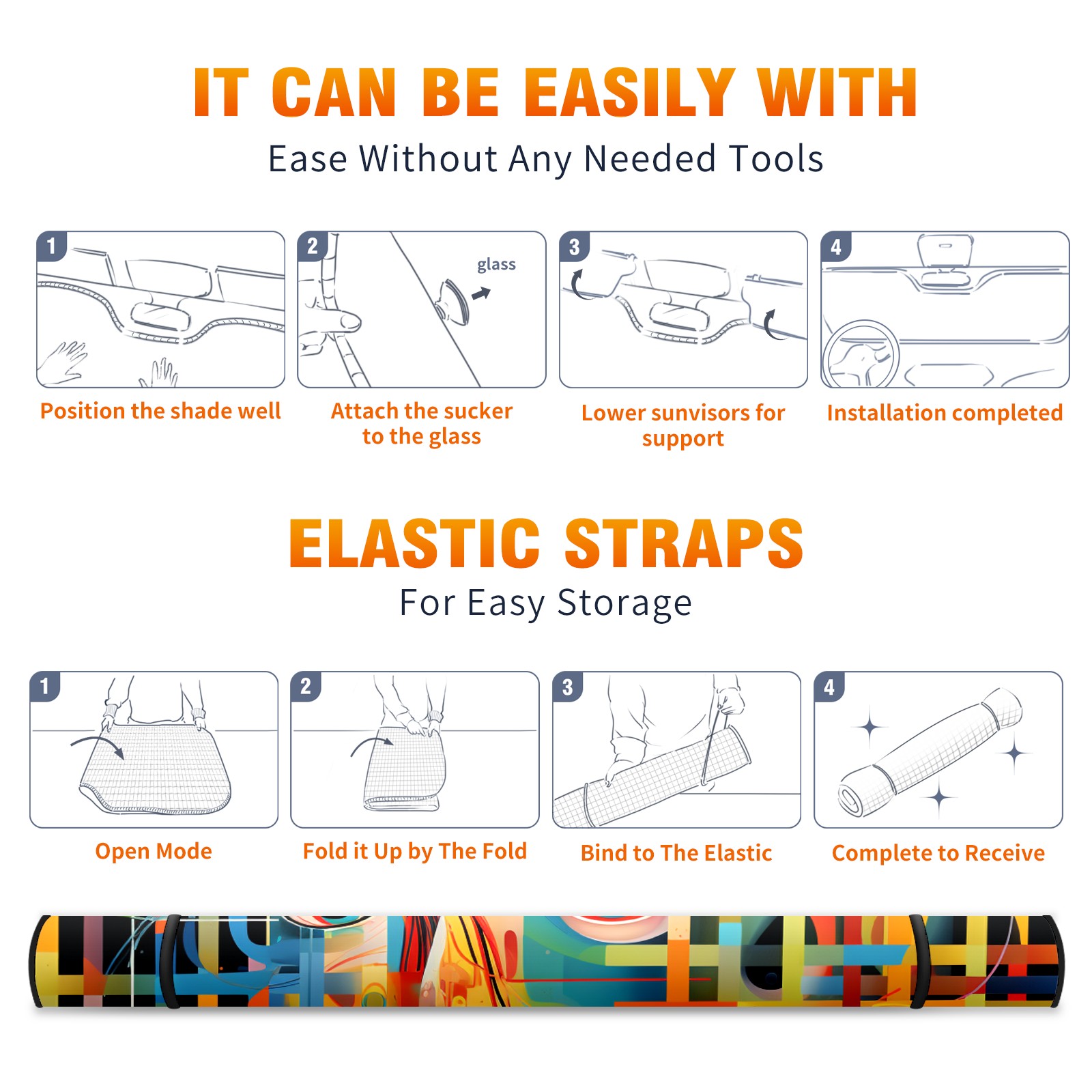 <b>ZXIVGOQFR Foldable Premium Car Windshield Sunshade is your great solution to reduce your car’s interior temperature dramatically! This is definitely a must-have item for your summer travel! </b> <br> ●<b>Size: 63"L x 33.5"W </b> <br></b> ●<b>Blocking Uv Rays & Heat Insulation<br></b> Our vehicle sunshade provides effective UV, sun, and summer heat protection .Maintains dashboards by preventing fading and cracking <br> ●<b>Easy-To-Store Folding Design Makes Storage Convenient <br></b> ZXIVGOQFR car sunshades come with removable suction cups and elastic bands that you can install easily and quickly, and the removable suction cups will not leave any marks on your windows when removed. Within seconds, windshield visor can be installed and removed. When not in use,the front windshield can be easily and effectively placed on the door pocket or the dashboard, which is beautiful and does not take up space in the car.<br> <br> <b>PUT UP A 'PROTECTIVE UMBRELLA' FOR YOUR BELOVED CAR!</b>