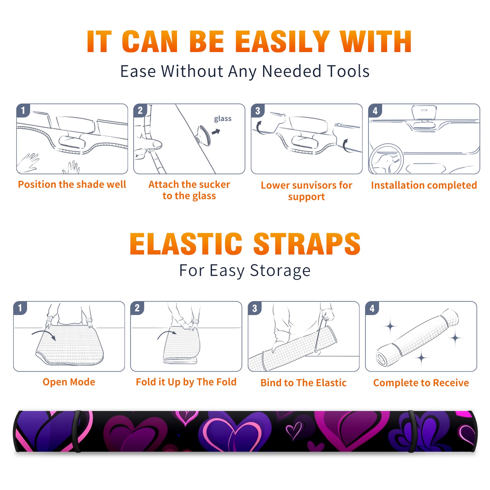 <b>ZXIVGOQFR Foldable Premium Car Windshield Sunshade is your great solution to reduce your car’s interior temperature dramatically! This is definitely a must-have item for your summer travel! </b> <br> ●<b>Size: 63"L x 33.5"W </b> <br></b> ●<b>Blocking Uv Rays & Heat Insulation<br></b> Our vehicle sunshade provides effective UV, sun, and summer heat protection .Maintains dashboards by preventing fading and cracking <br> ●<b>Easy-To-Store Folding Design Makes Storage Convenient <br></b> ZXIVGOQFR car sunshades come with removable suction cups and elastic bands that you can install easily and quickly, and the removable suction cups will not leave any marks on your windows when removed. Within seconds, windshield visor can be installed and removed. When not in use,the front windshield can be easily and effectively placed on the door pocket or the dashboard, which is beautiful and does not take up space in the car.<br> <br> <b>PUT UP A 'PROTECTIVE UMBRELLA' FOR YOUR BELOVED CAR!</b>