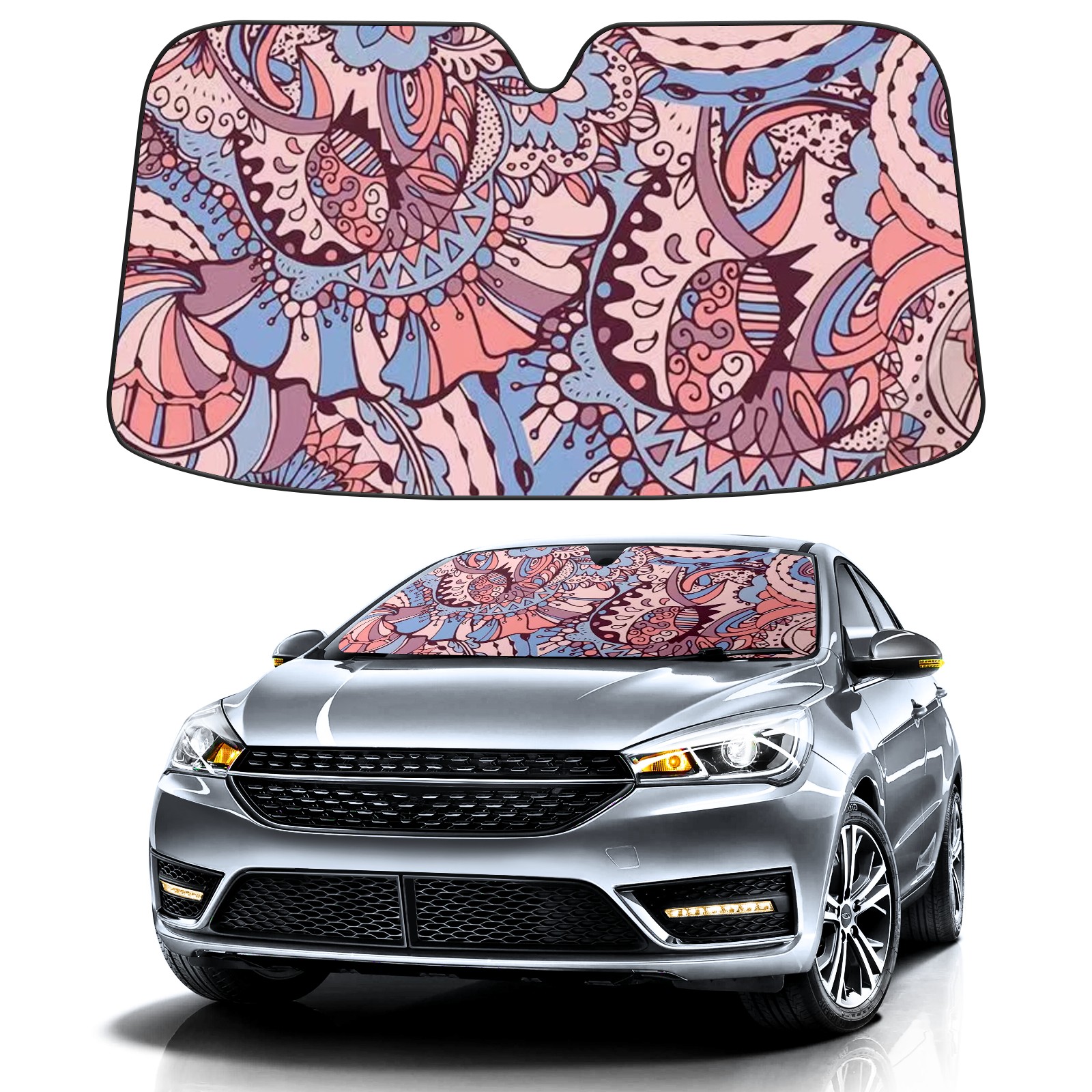 Car Windshield Sun Shade for Front Window Printing Foldable Vehicle Windshield Car Sun Visor Covers Automotive Window Protector Car Privacy Sun Blocker