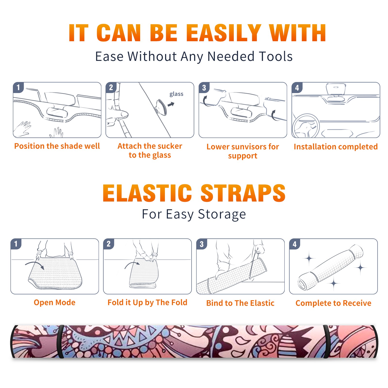 • <b>ZXIVGOQFR Foldable Premium Car Windshield Sunshade is your great solution to reduce your car’s interior temperature dramatically! This is definitely a must-have item for your summer travel! </b> <br> ●<b>Size: 63"L x 33.5"W </b> <br></b> ●<b>Blocking Uv Rays & Heat Insulation<br></b> Our vehicle sunshade provides effective UV, sun, and summer heat protection .Maintains dashboards by preventing fading and cracking <br> ●<b>Easy-To-Store Folding Design Makes Storage Convenient <br></b> ZXIVGOQFR car sunshades come with removable suction cups and elastic bands that you can install easily and quickly, and the removable suction cups will not leave any marks on your windows when removed. Within seconds, windshield visor can be installed and removed. When not in use,the front windshield can be easily and effectively placed on the door pocket or the dashboard, which is beautiful and does not take up space in the car.<br> <br> <b>PUT UP A 'PROTECTIVE UMBRELLA' FOR YOUR BELOVED CAR!</b>