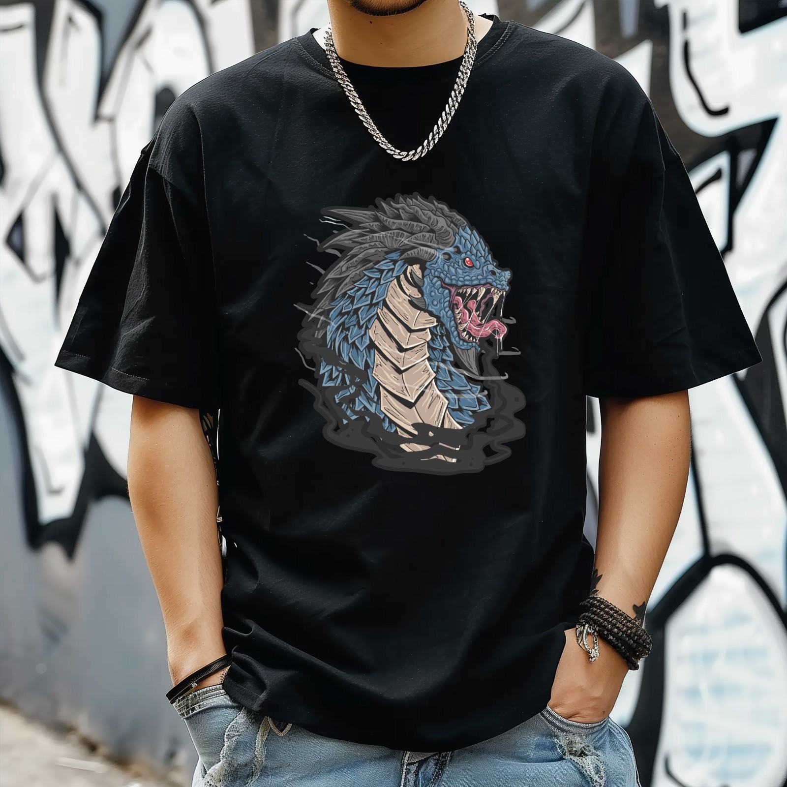 Dragon T-Shirt for Man Tops Short Sleeves Shirt Crew Neck Shirt XS
