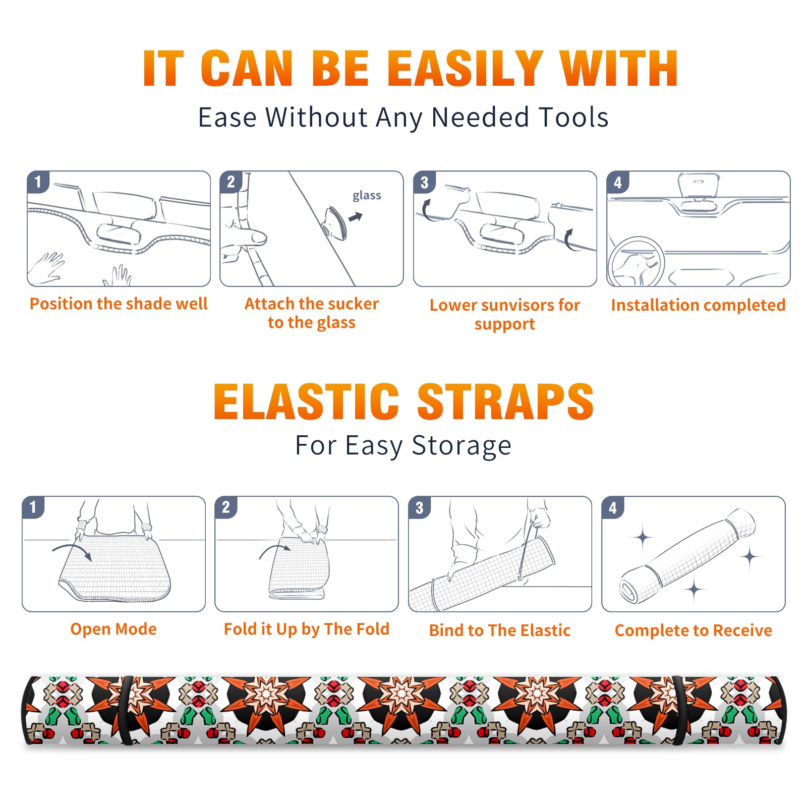 <b>ZXIVGOQFR Foldable Premium Car Windshield Sunshade is your great solution to reduce your car’s interior temperature dramatically! This is definitely a must-have item for your summer travel! </b> <br> ●<b>Size: 63"L x 33.5"W </b> <br></b> ●<b>Blocking Uv Rays & Heat Insulation<br></b> Our vehicle sunshade provides effective UV, sun, and summer heat protection .Maintains dashboards by preventing fading and cracking <br> ●<b>Easy-To-Store Folding Design Makes Storage Convenient <br></b> ZXIVGOQFR car sunshades come with removable suction cups and elastic bands that you can install easily and quickly, and the removable suction cups will not leave any marks on your windows when removed. Within seconds, windshield visor can be installed and removed. When not in use,the front windshield can be easily and effectively placed on the door pocket or the dashboard, which is beautiful and does not take up space in the car.<br> <br> <b>PUT UP A 'PROTECTIVE UMBRELLA' FOR YOUR BELOVED CAR!</b>