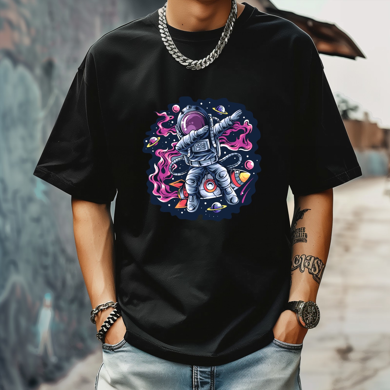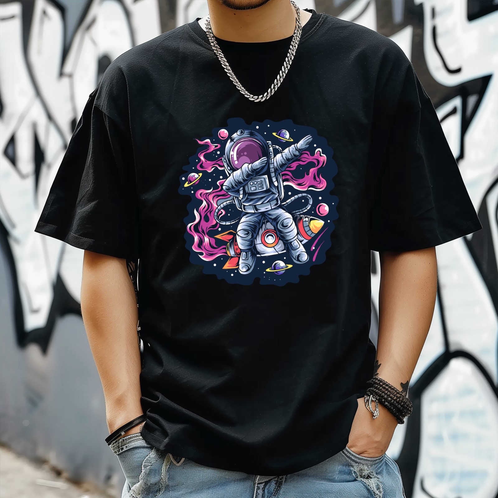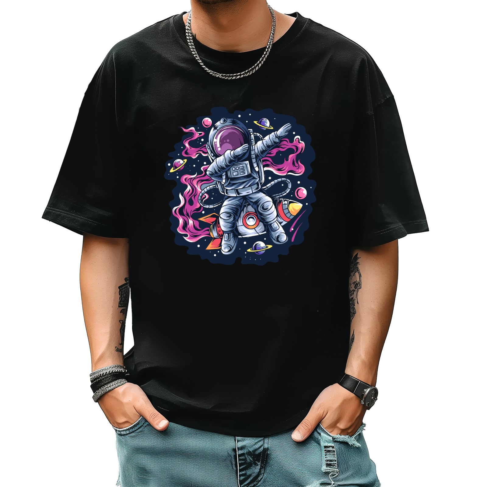Astronaut (2) T-Shirt for Man Tops Short Sleeves Shirt Crew Neck Shirt XS