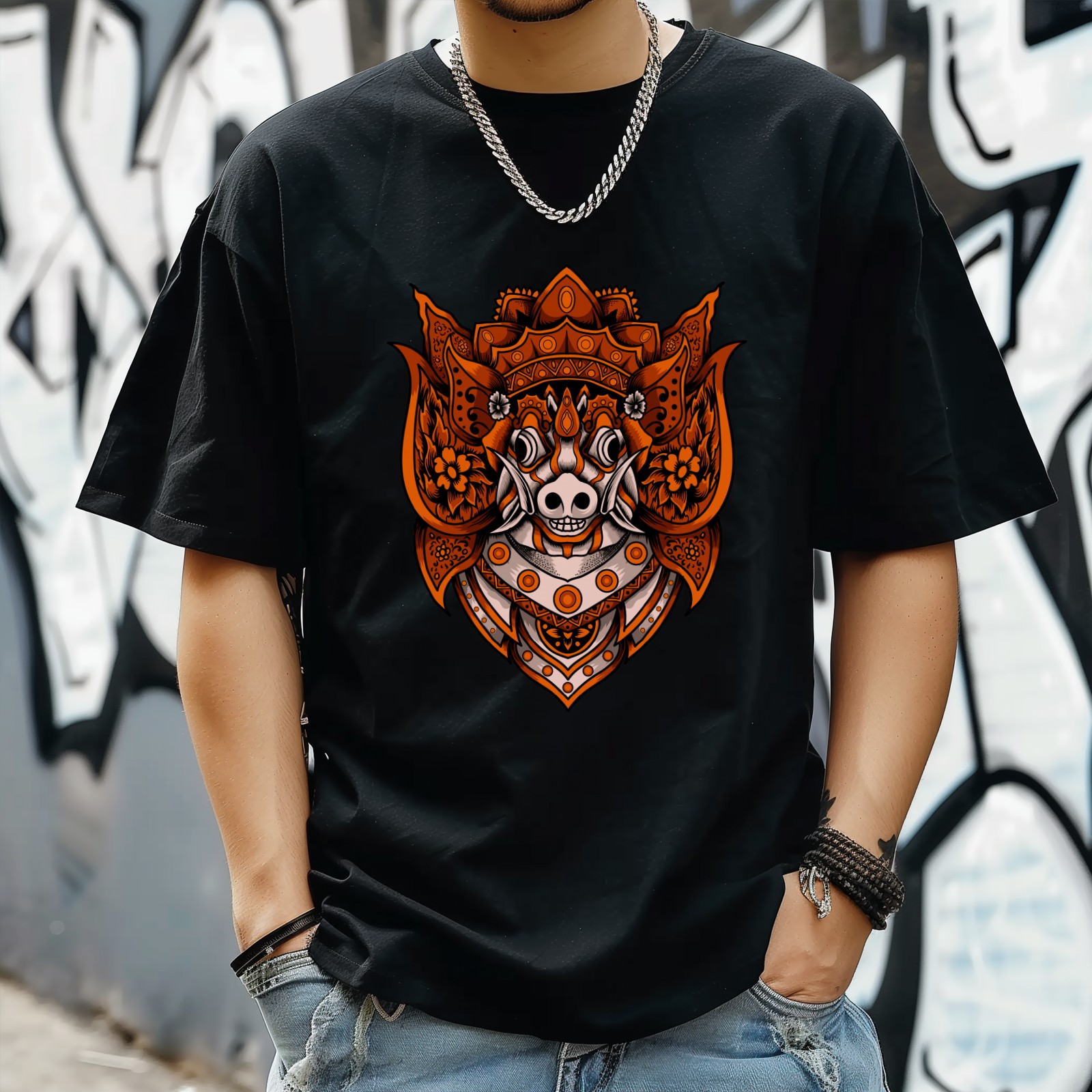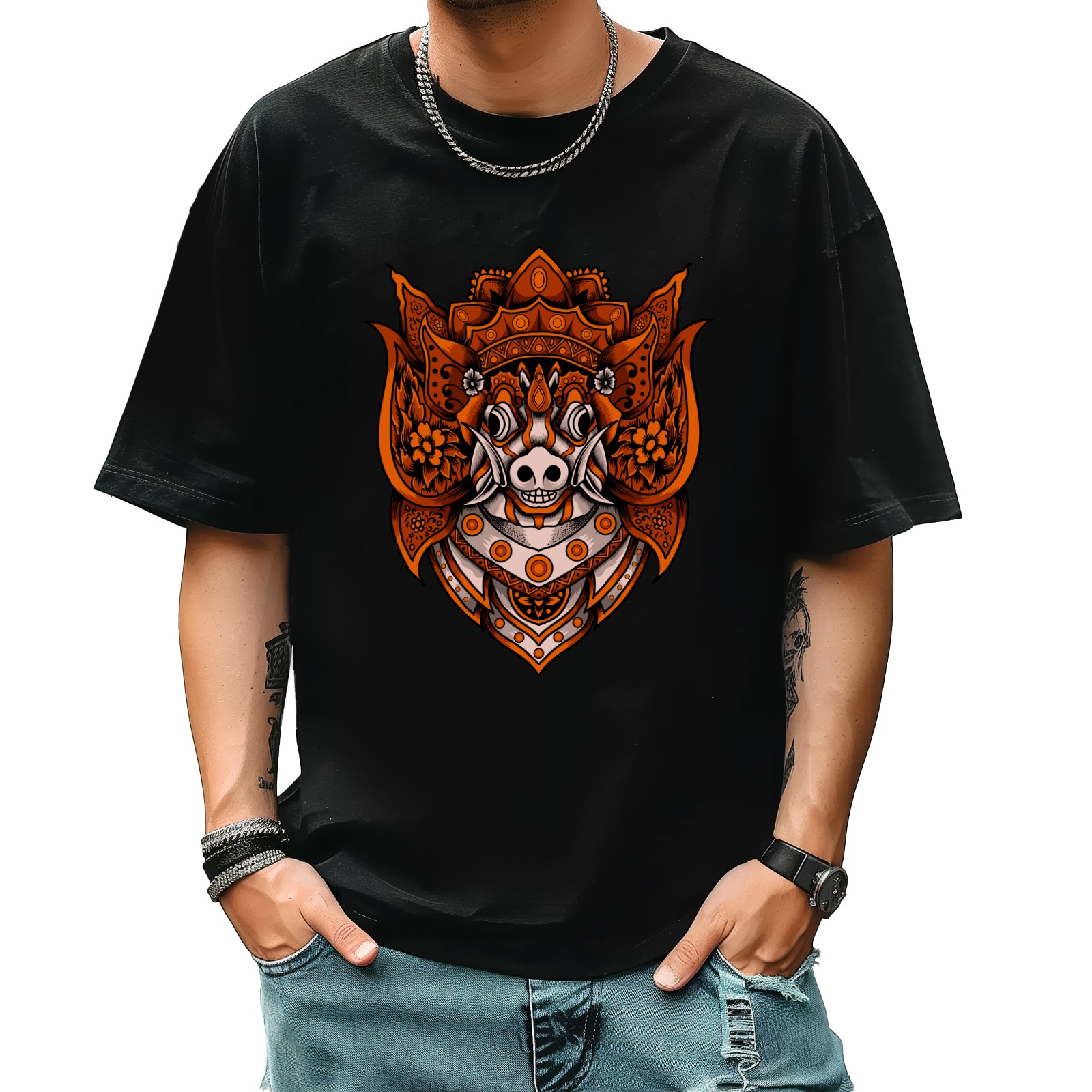 Ornameta (45) T-Shirt for Man Tops Short Sleeves Shirt Crew Neck Shirt XS