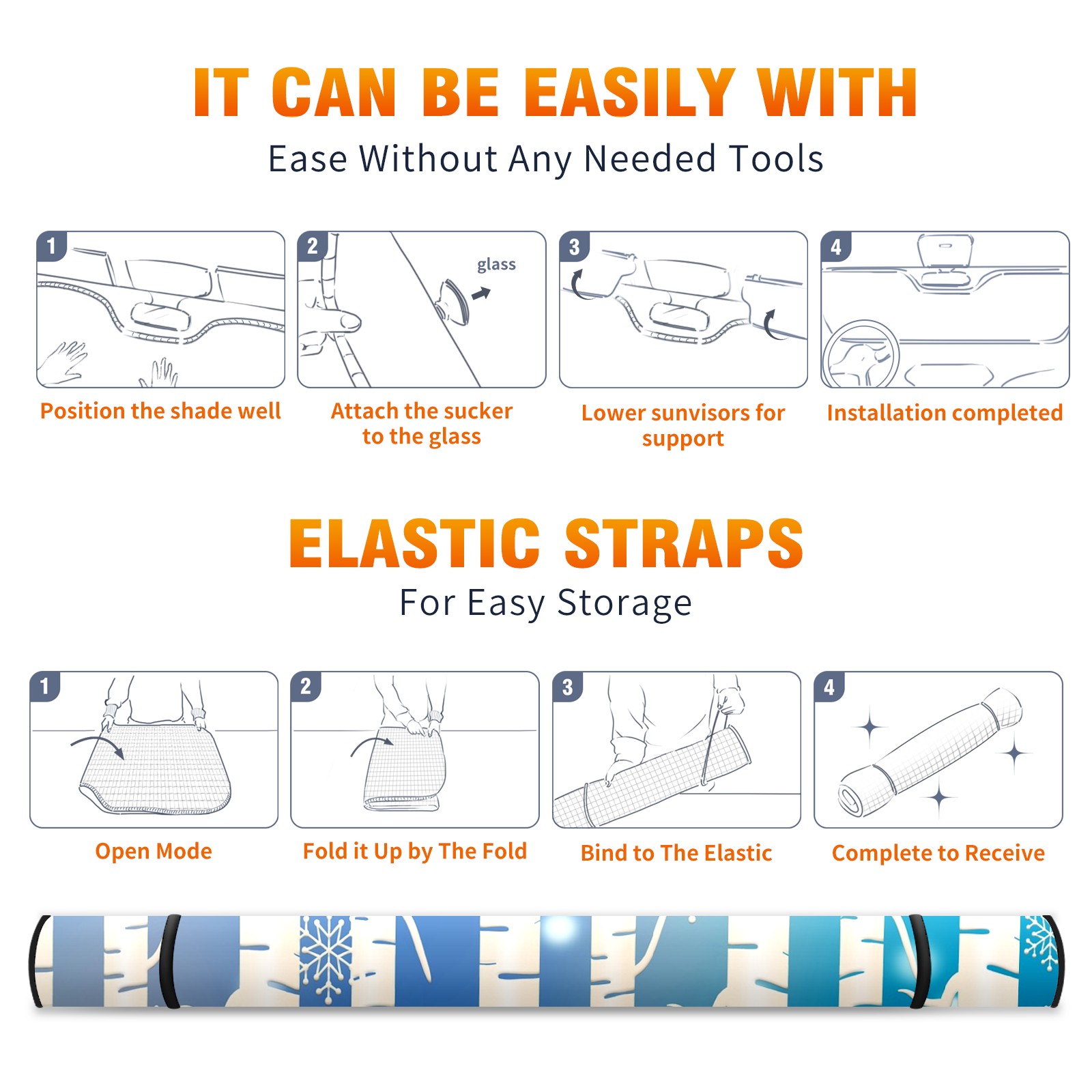 <b>ZXIVGOQFR Foldable Premium Car Windshield Sunshade is your great solution to reduce your car’s interior temperature dramatically! This is definitely a must-have item for your summer travel! </b> <br> ●<b>Size: 63"L x 33.5"W </b> <br></b> ●<b>Blocking Uv Rays & Heat Insulation<br></b> Our vehicle sunshade provides effective UV, sun, and summer heat protection .Maintains dashboards by preventing fading and cracking <br> ●<b>Easy-To-Store Folding Design Makes Storage Convenient <br></b> ZXIVGOQFR car sunshades come with removable suction cups and elastic bands that you can install easily and quickly, and the removable suction cups will not leave any marks on your windows when removed. Within seconds, windshield visor can be installed and removed. When not in use,the front windshield can be easily and effectively placed on the door pocket or the dashboard, which is beautiful and does not take up space in the car.<br> <br> <b>PUT UP A 'PROTECTIVE UMBRELLA' FOR YOUR BELOVED CAR!</b>