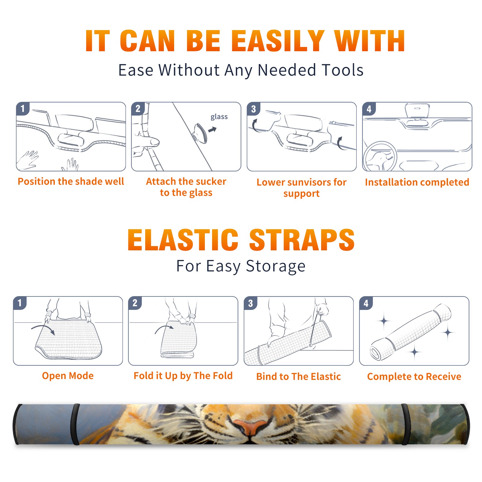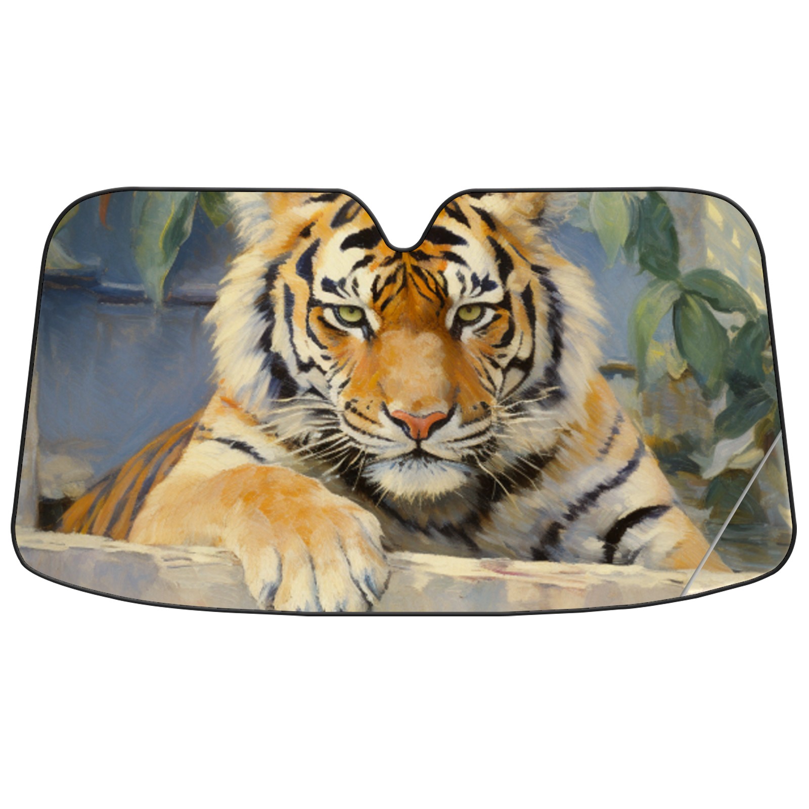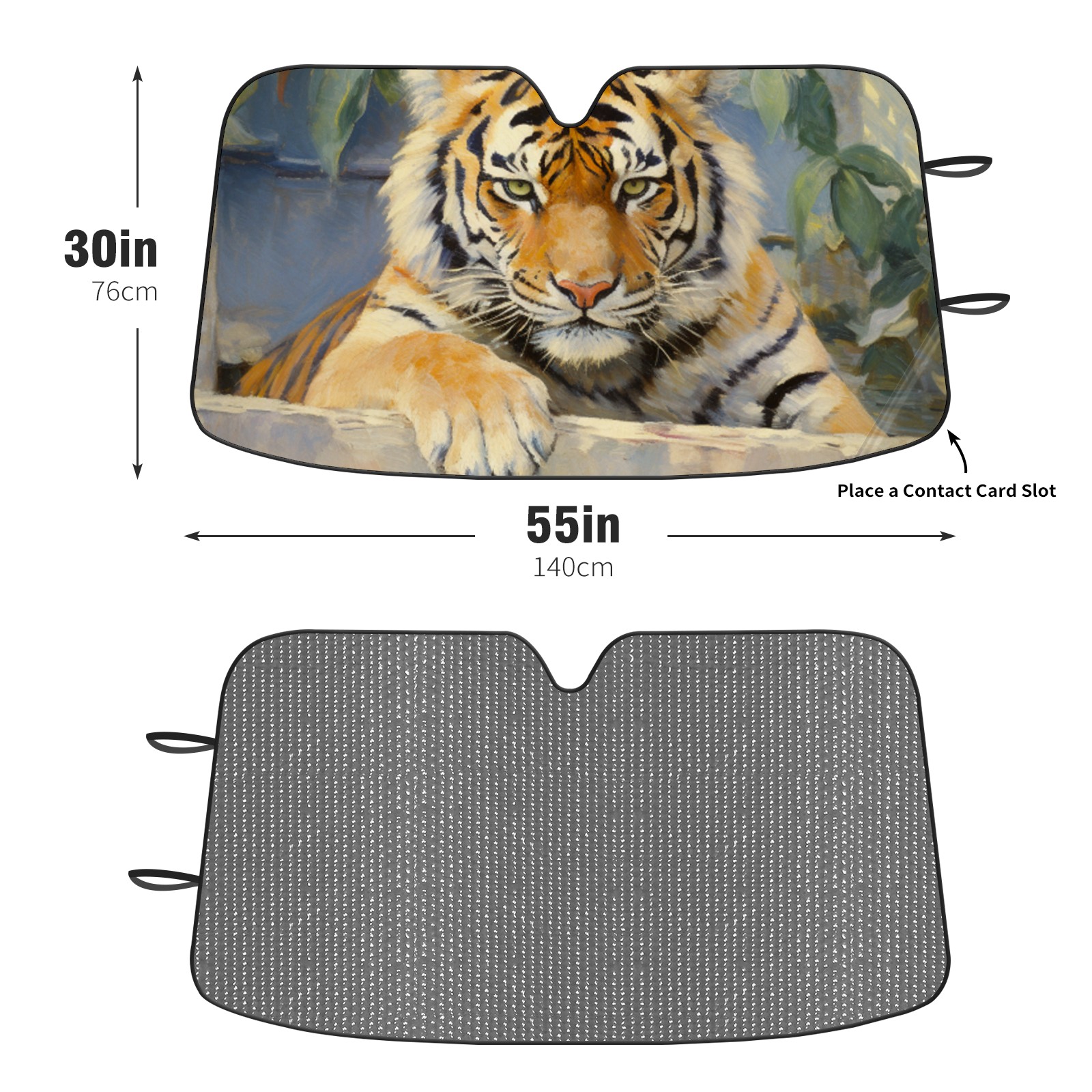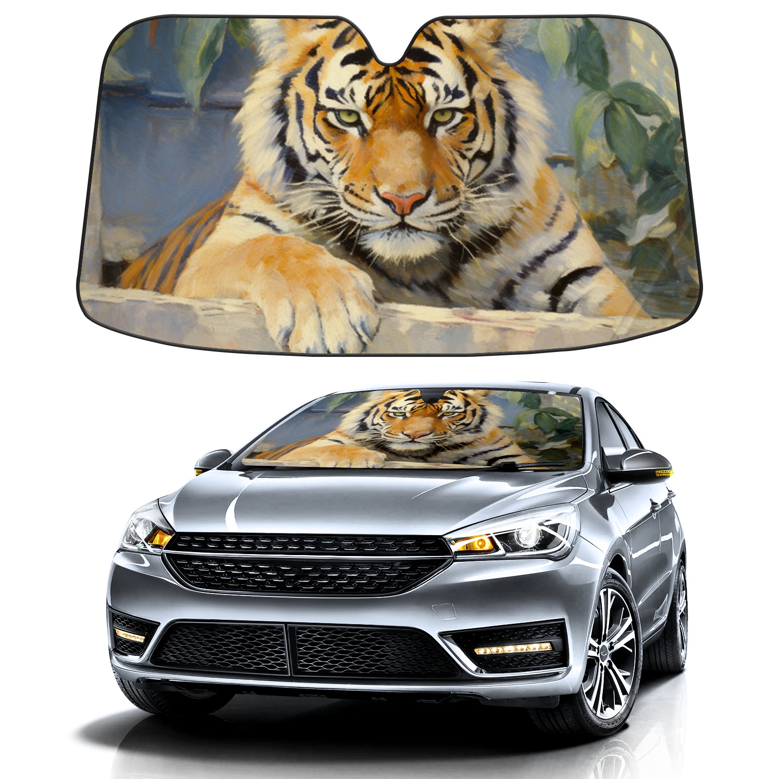 Car Windshield Sun Shade for Front Window Tiger Foldable Vehicle Windshield Car Sun Visor Covers Automotive Window Protector Car Privacy Sun Blocker