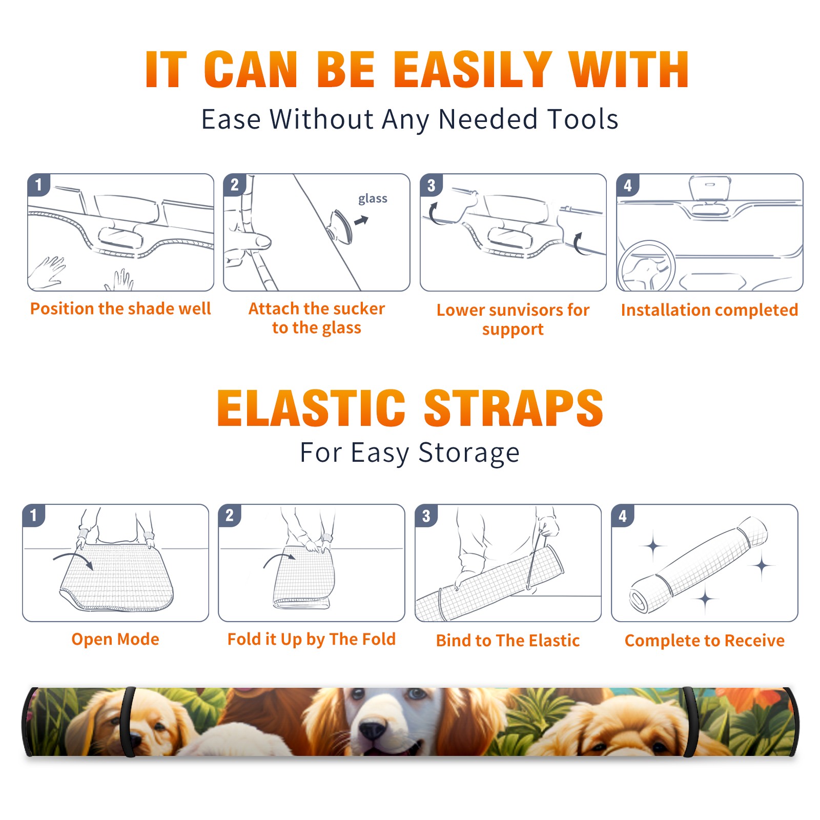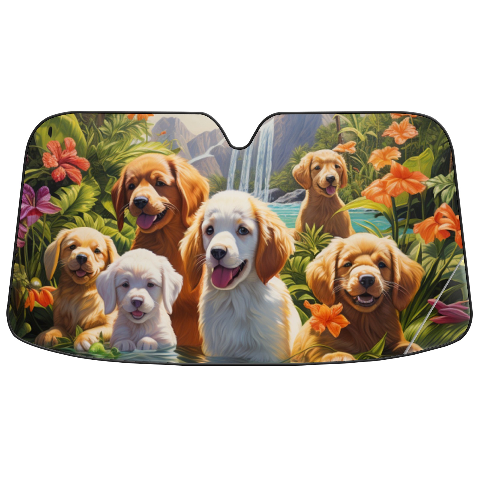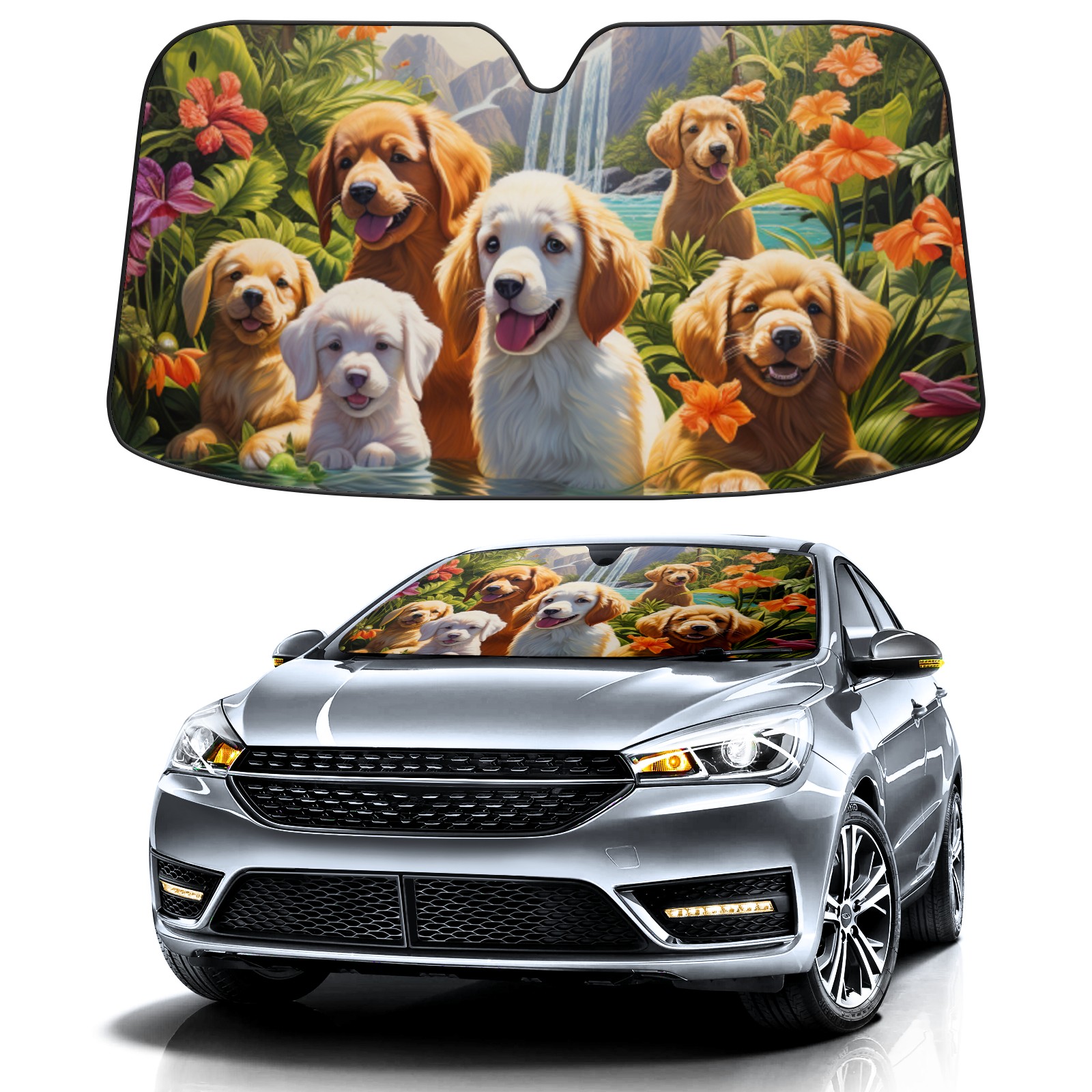 Car Windshield Sun Shade for Front Window Cute Dogs Foldable Vehicle Windshield Car Sun Visor Covers Automotive Window Protector Car Privacy Sun Blocker