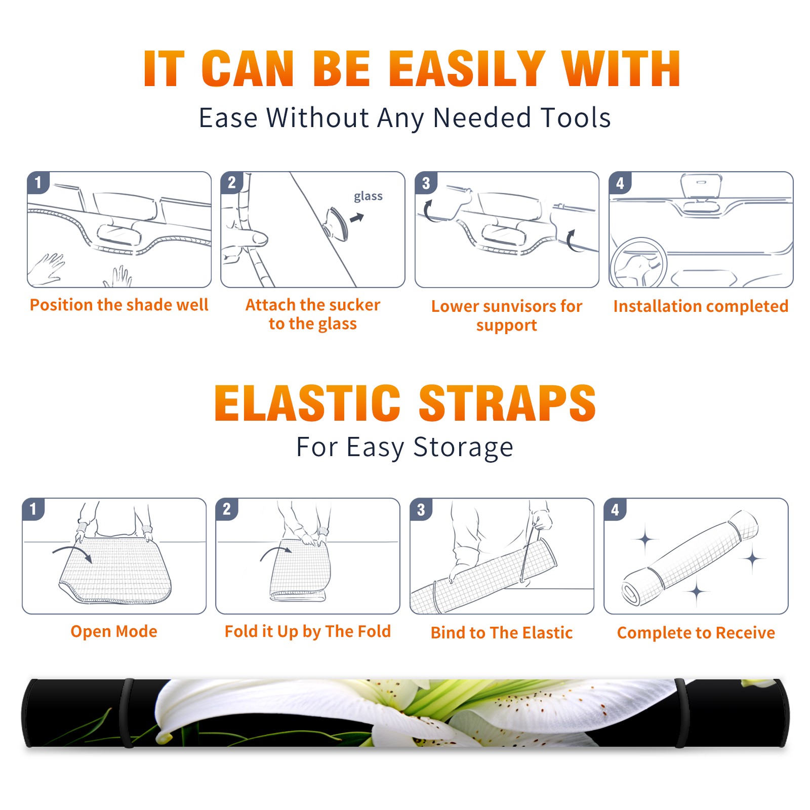 Car Windshield Sun Shade for Front Window Lily Foldable Vehicle Windshield Car Sun Visor Covers Automotive Window Protector Car Privacy Sun Blocker