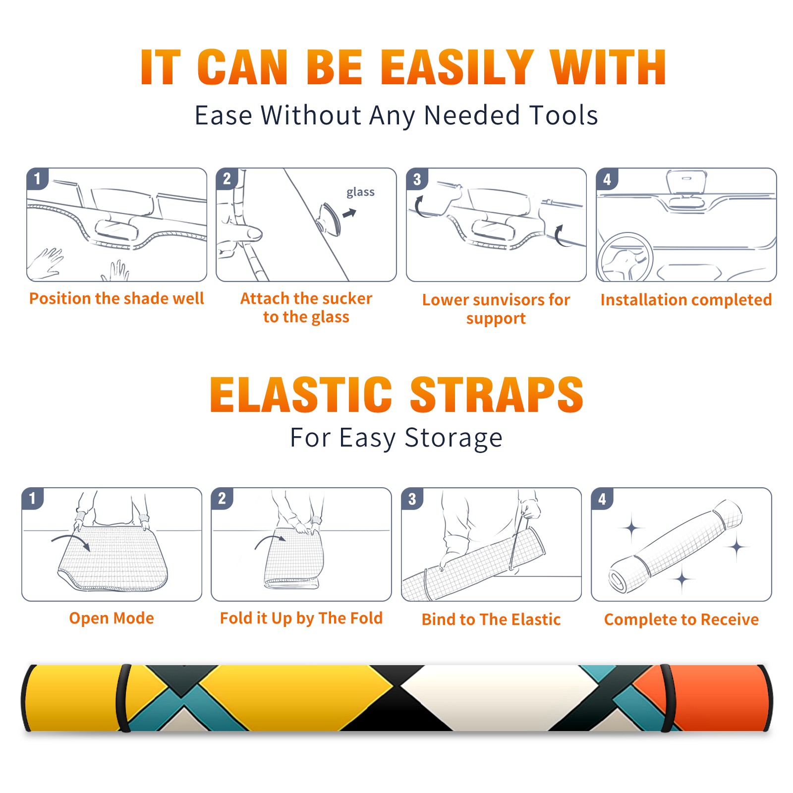 <b>ZXIVGOQFR Foldable Premium Car Windshield Sunshade is your great solution to reduce your car’s interior temperature dramatically! This is definitely a must-have item for your summer travel! </b> <br> ●<b>Size: 63"L x 33.5"W </b> <br></b> ●<b>Blocking Uv Rays & Heat Insulation<br></b> Our vehicle sunshade provides effective UV, sun, and summer heat protection .Maintains dashboards by preventing fading and cracking <br> ●<b>Easy-To-Store Folding Design Makes Storage Convenient <br></b> ZXIVGOQFR car sunshades come with removable suction cups and elastic bands that you can install easily and quickly, and the removable suction cups will not leave any marks on your windows when removed. Within seconds, windshield visor can be installed and removed. When not in use,the front windshield can be easily and effectively placed on the door pocket or the dashboard, which is beautiful and does not take up space in the car.<br> <br> <b>PUT UP A 'PROTECTIVE UMBRELLA' FOR YOUR BELOVED CAR!</b>