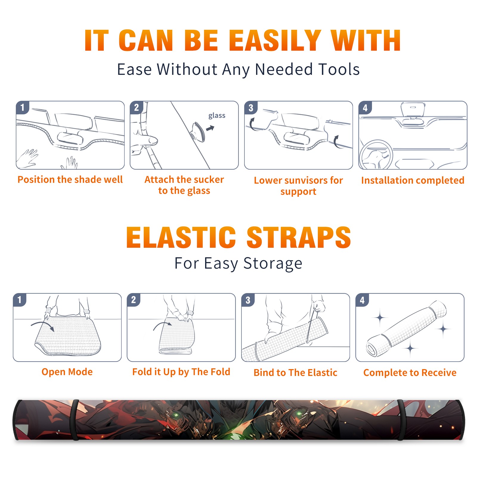<b>ZXIVGOQFR Foldable Premium Car Windshield Sunshade is your great solution to reduce your car’s interior temperature dramatically! This is definitely a must-have item for your summer travel! </b> <br> ●<b>Size: 63"L x 33.5"W </b> <br></b> ●<b>Blocking Uv Rays & Heat Insulation<br></b> Our vehicle sunshade provides effective UV, sun, and summer heat protection .Maintains dashboards by preventing fading and cracking <br> ●<b>Easy-To-Store Folding Design Makes Storage Convenient <br></b> ZXIVGOQFR car sunshades come with removable suction cups and elastic bands that you can install easily and quickly, and the removable suction cups will not leave any marks on your windows when removed. Within seconds, windshield visor can be installed and removed. When not in use,the front windshield can be easily and effectively placed on the door pocket or the dashboard, which is beautiful and does not take up space in the car.<br> <br> <b>PUT UP A 'PROTECTIVE UMBRELLA' FOR YOUR BELOVED CAR!</b>