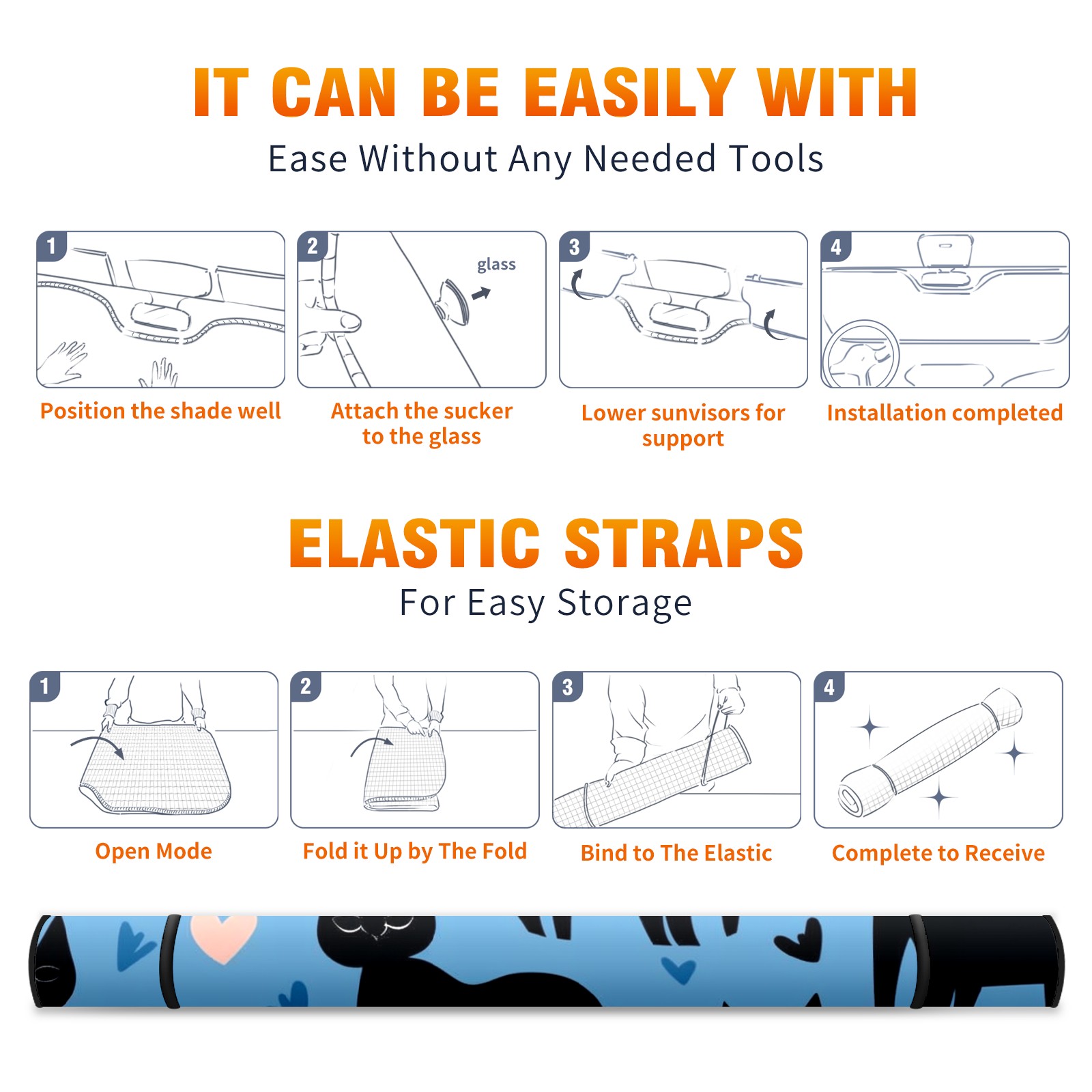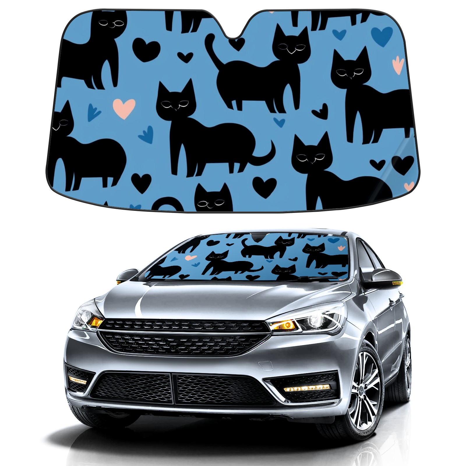Car Windshield Sun Shade for Front Window Black Cats (2) Foldable Vehicle Windshield Car Sun Visor Covers Automotive Window Protector Car Privacy Sun Blocker
