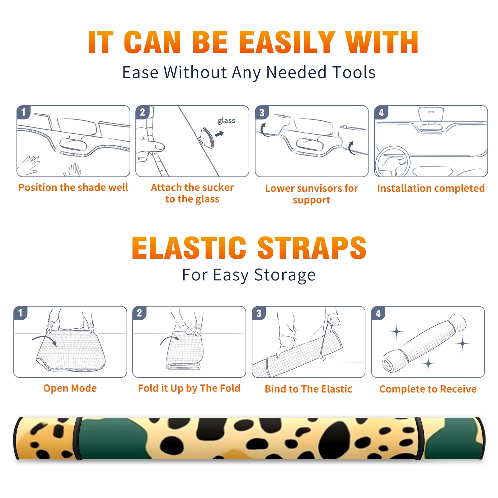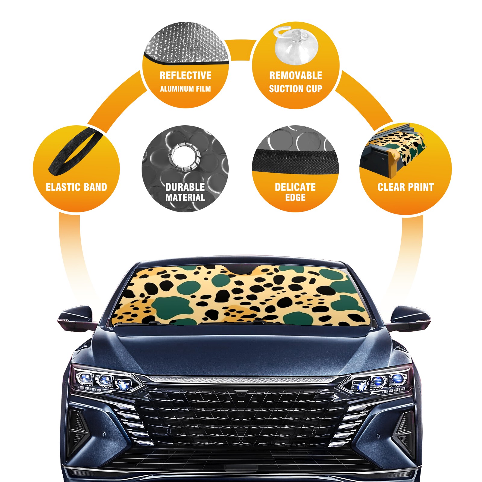 Car Windshield Sun Shade for Front Window Leopard Pattern (7) Foldable Vehicle Windshield Car Sun Visor Covers Automotive Window Protector Car Privacy Sun Blocker