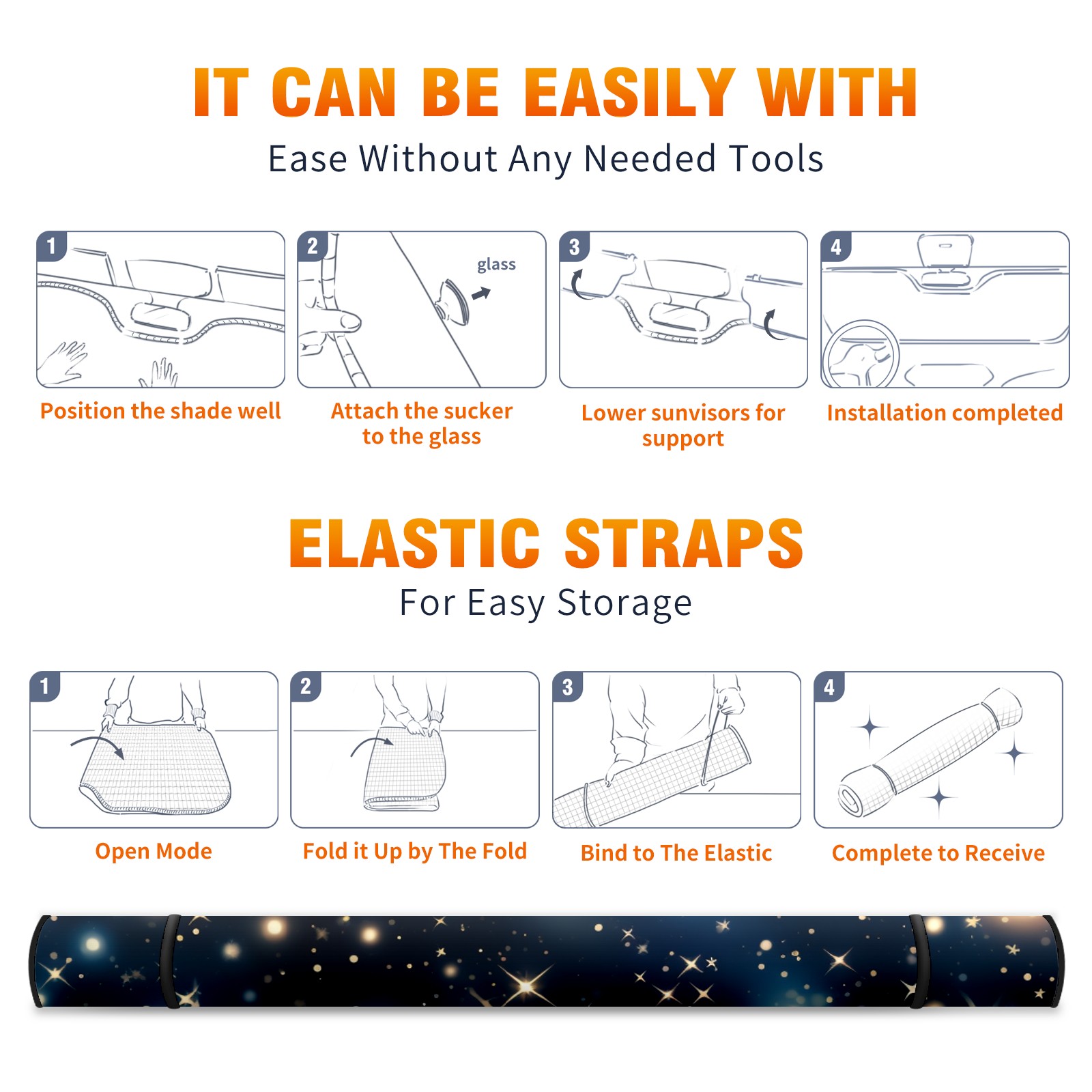 Car Windshield Sun Shade for Front Window Starry 1 Foldable Vehicle Windshield Car Sun Visor Covers Automotive Window Protector Car Privacy Sun Blocker