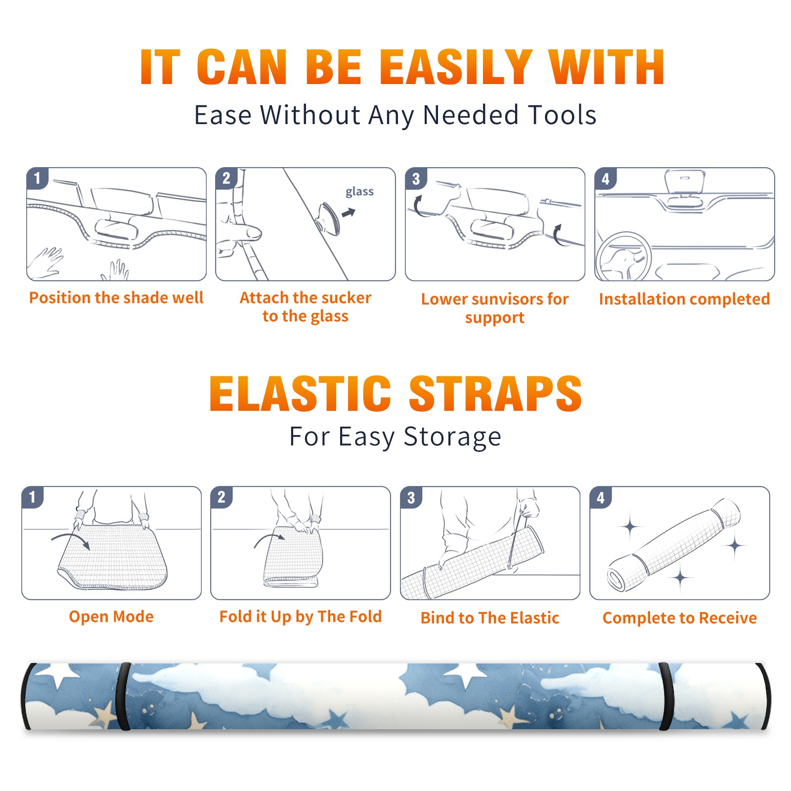 <b>ZXIVGOQFR Foldable Premium Car Windshield Sunshade is your great solution to reduce your car’s interior temperature dramatically! This is definitely a must-have item for your summer travel! </b> <br> ●<b>Size: 63"L x 33.5"W </b> <br></b> ●<b>Blocking Uv Rays & Heat Insulation<br></b> Our vehicle sunshade provides effective UV, sun, and summer heat protection .Maintains dashboards by preventing fading and cracking <br> ●<b>Easy-To-Store Folding Design Makes Storage Convenient <br></b> ZXIVGOQFR car sunshades come with removable suction cups and elastic bands that you can install easily and quickly, and the removable suction cups will not leave any marks on your windows when removed. Within seconds, windshield visor can be installed and removed. When not in use,the front windshield can be easily and effectively placed on the door pocket or the dashboard, which is beautiful and does not take up space in the car.<br> <br> <b>PUT UP A 'PROTECTIVE UMBRELLA' FOR YOUR BELOVED CAR!</b>