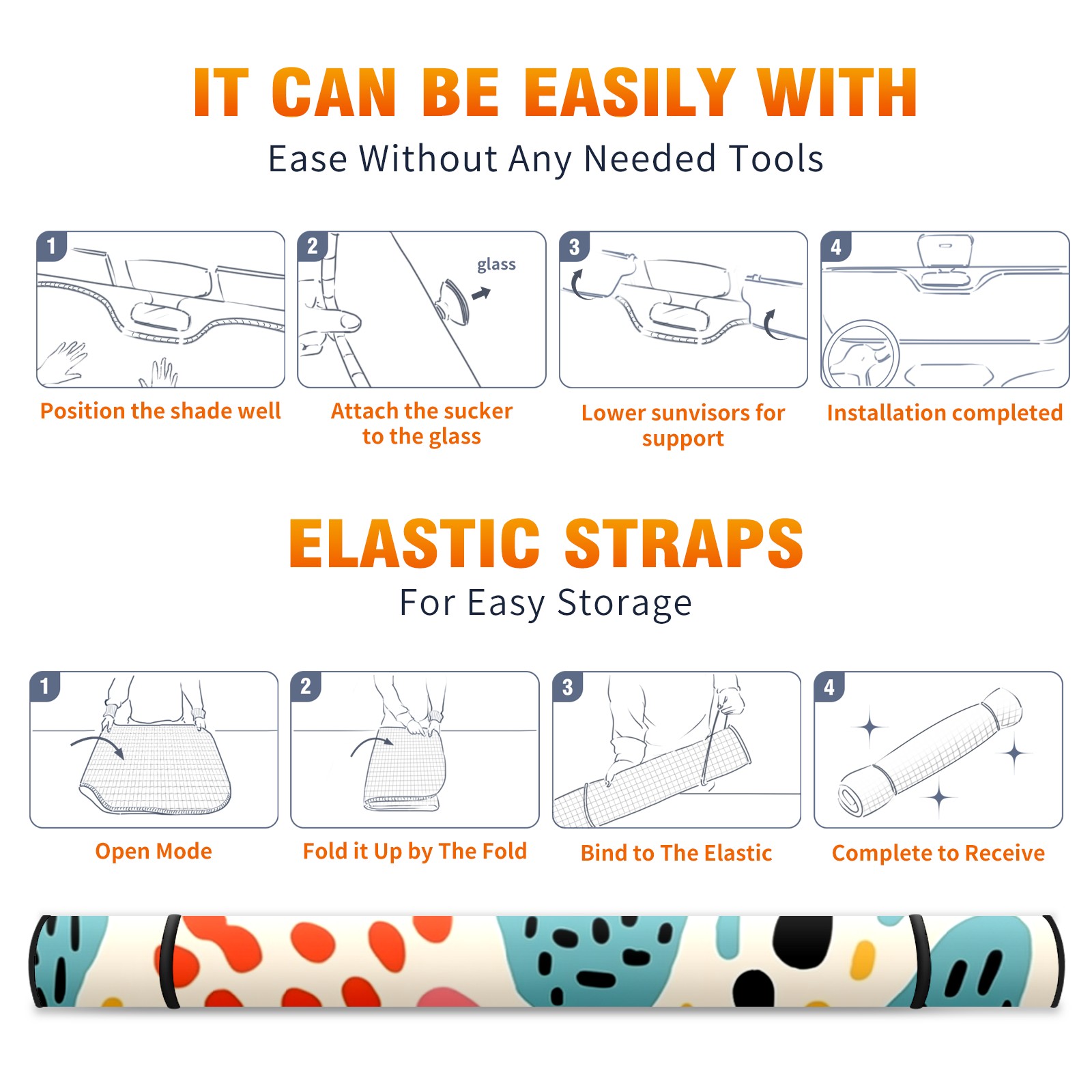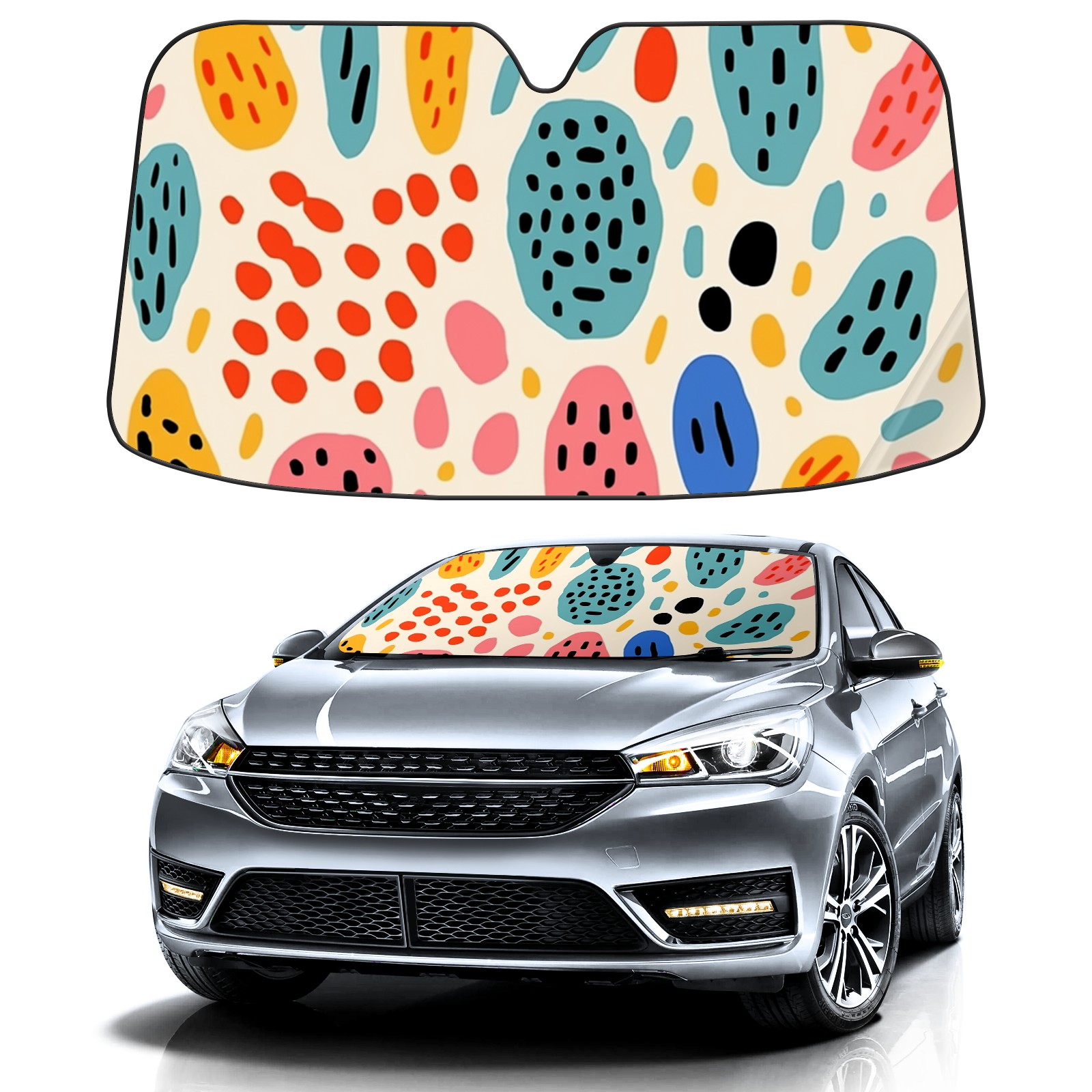 Car Windshield Sun Shade for Front Window Cute Illustration (4) Foldable Vehicle Windshield Car Sun Visor Covers Automotive Window Protector Car Privacy Sun Blocker