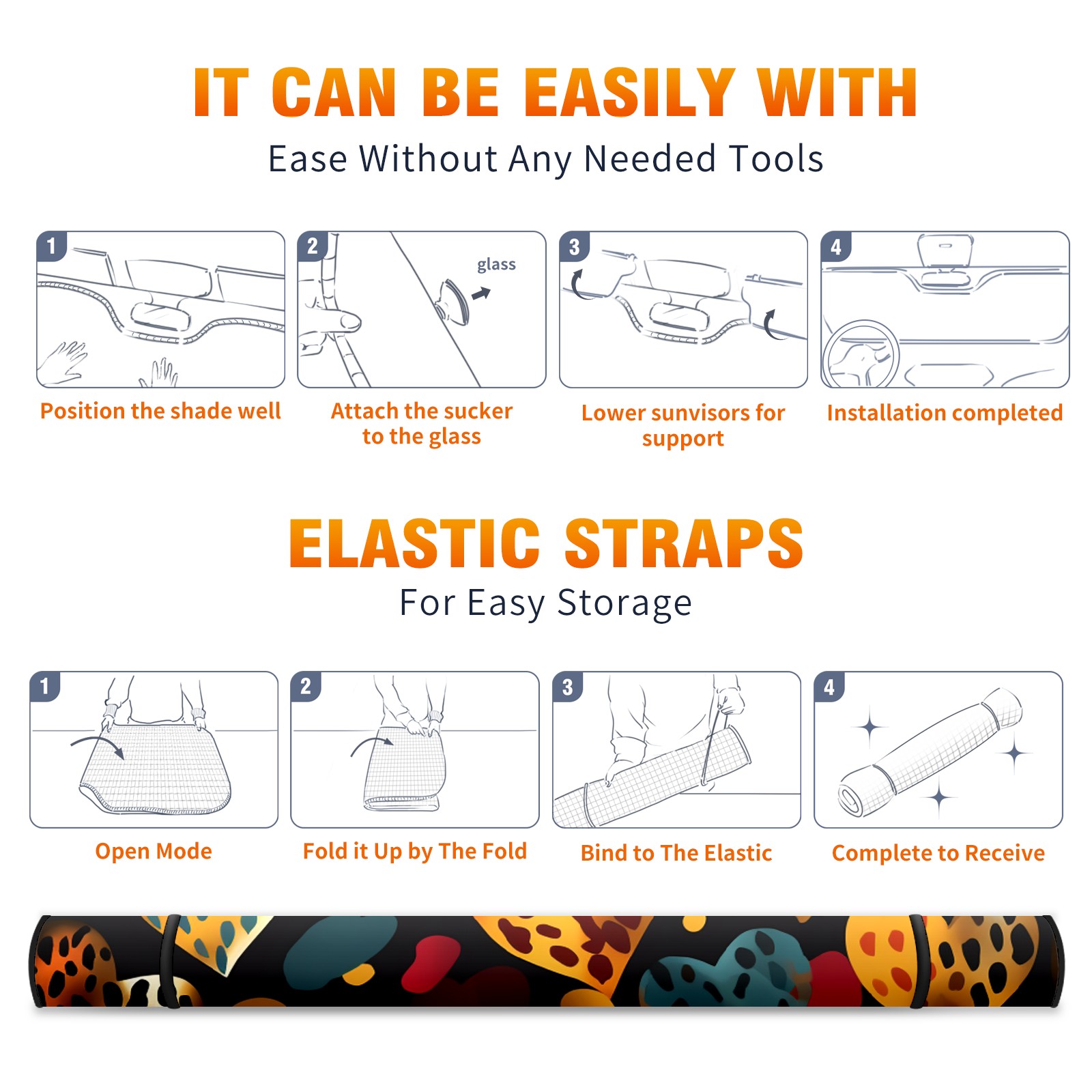 • <b>ZXIVGOQFR Foldable Premium Car Windshield Sunshade is your great solution to reduce your car’s interior temperature dramatically! This is definitely a must-have item for your summer travel! </b> <br> ●<b>Size: 63"L x 33.5"W </b> <br></b> ●<b>Blocking Uv Rays & Heat Insulation<br></b> Our vehicle sunshade provides effective UV, sun, and summer heat protection .Maintains dashboards by preventing fading and cracking <br> ●<b>Easy-To-Store Folding Design Makes Storage Convenient <br></b> ZXIVGOQFR car sunshades come with removable suction cups and elastic bands that you can install easily and quickly, and the removable suction cups will not leave any marks on your windows when removed. Within seconds, windshield visor can be installed and removed. When not in use,the front windshield can be easily and effectively placed on the door pocket or the dashboard, which is beautiful and does not take up space in the car.<br> <br> <b>PUT UP A 'PROTECTIVE UMBRELLA' FOR YOUR BELOVED CAR!</b>