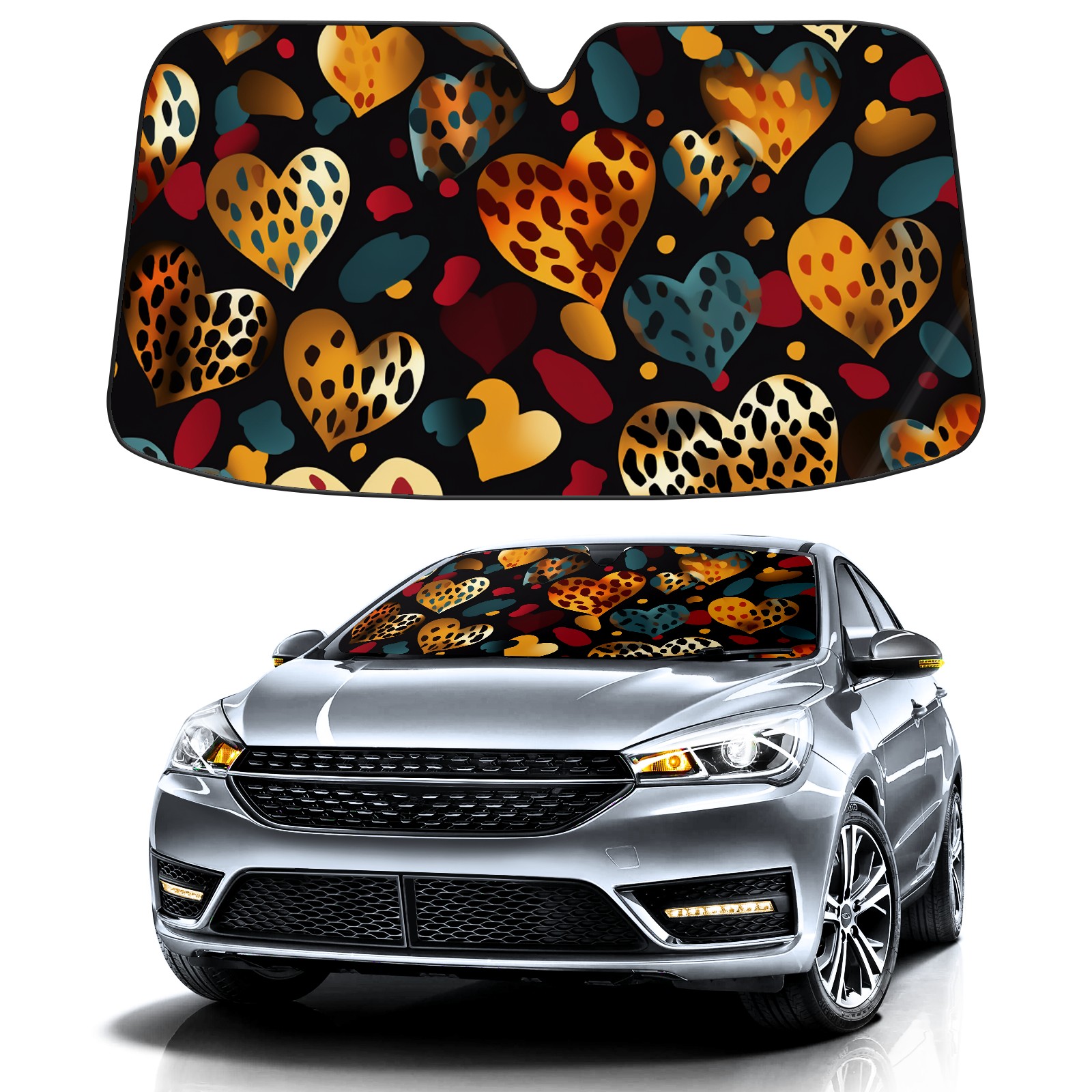 Car Windshield Sun Shade for Front Window Heart Flowers Cheetah Print (3) Foldable Vehicle Windshield Car Sun Visor Covers Automotive Window Protector Car Privacy Sun Blocker