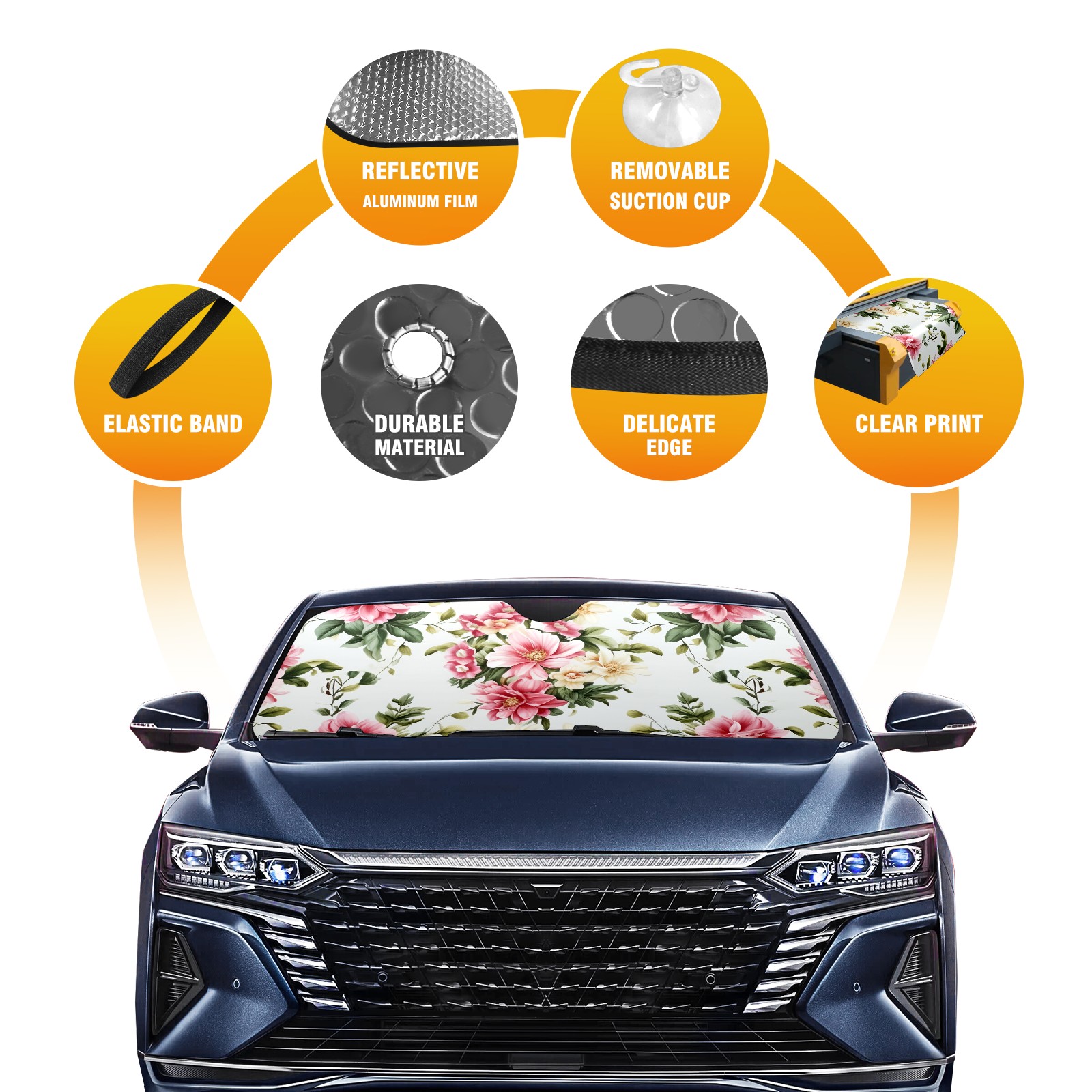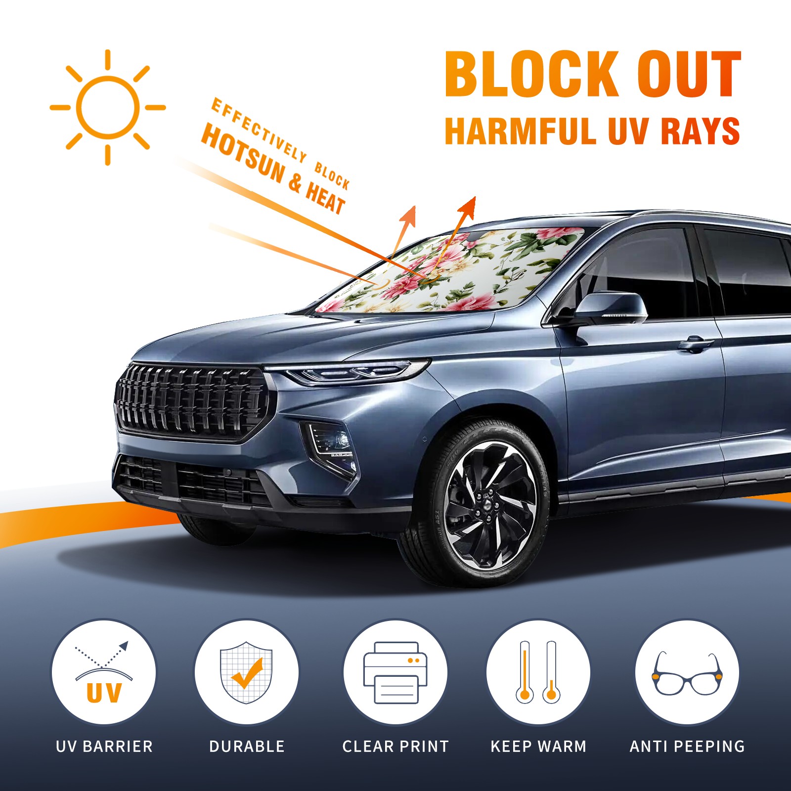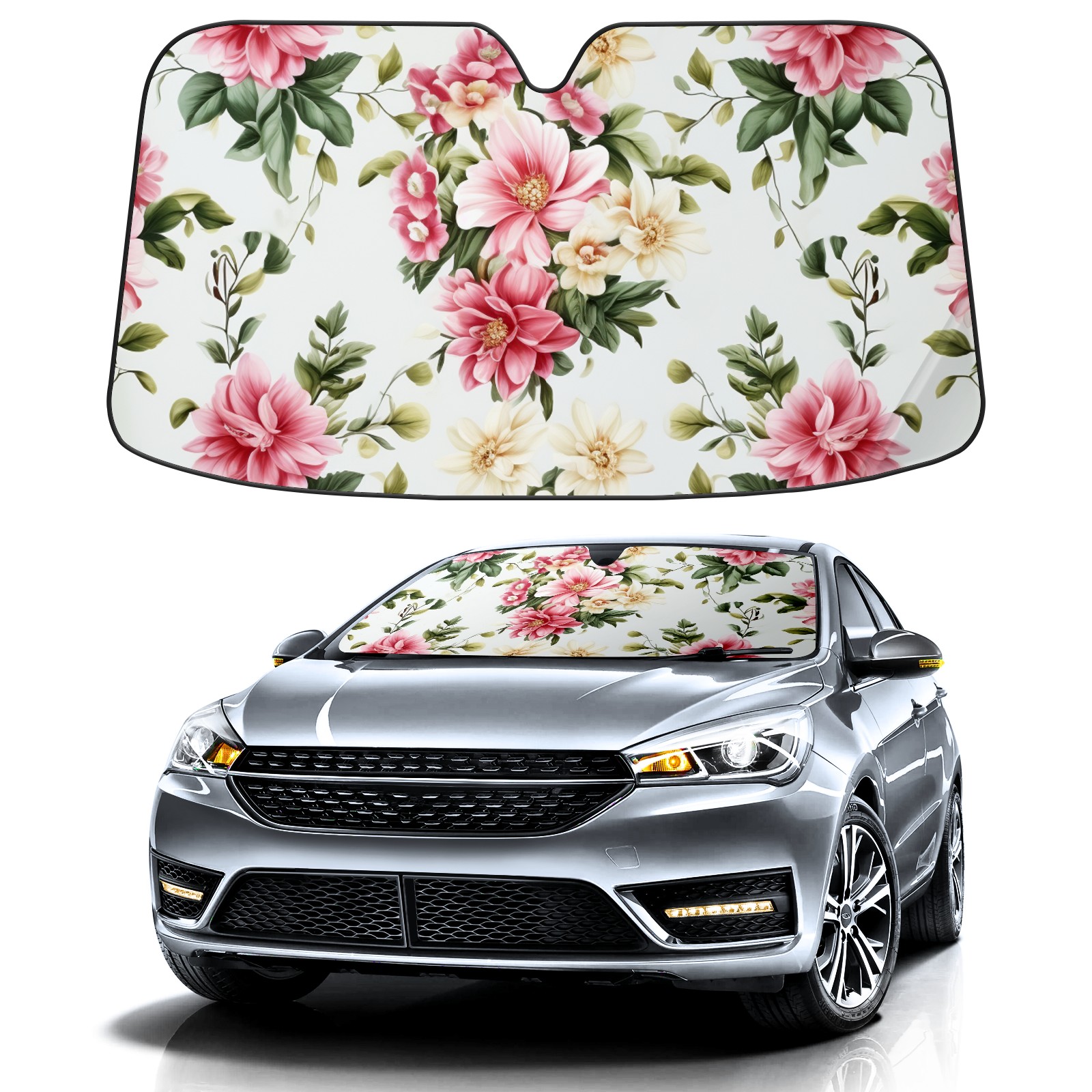 Car Windshield Sun Shade for Front Window Beautiful Flowers Foldable Vehicle Windshield Car Sun Visor Covers Automotive Window Protector Car Privacy Sun Blocker